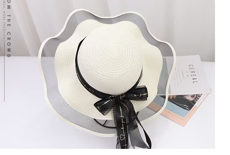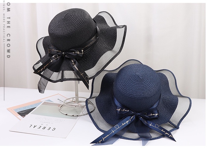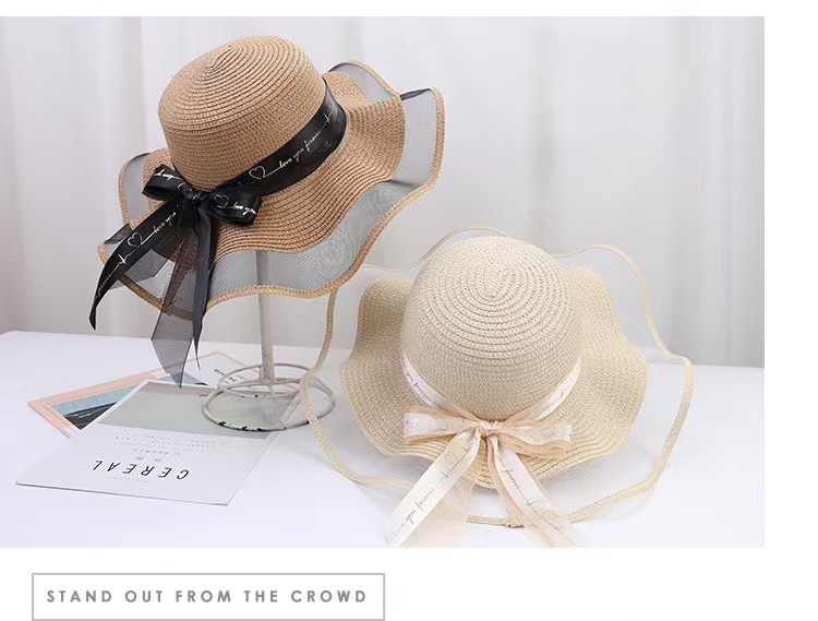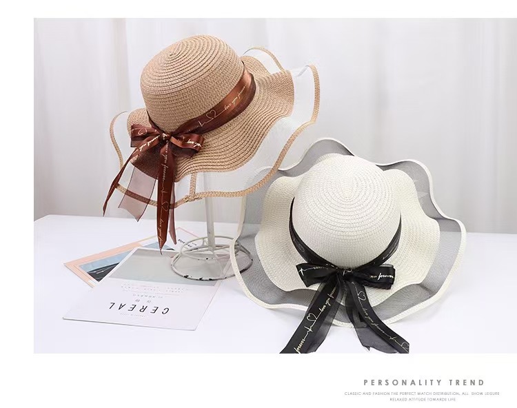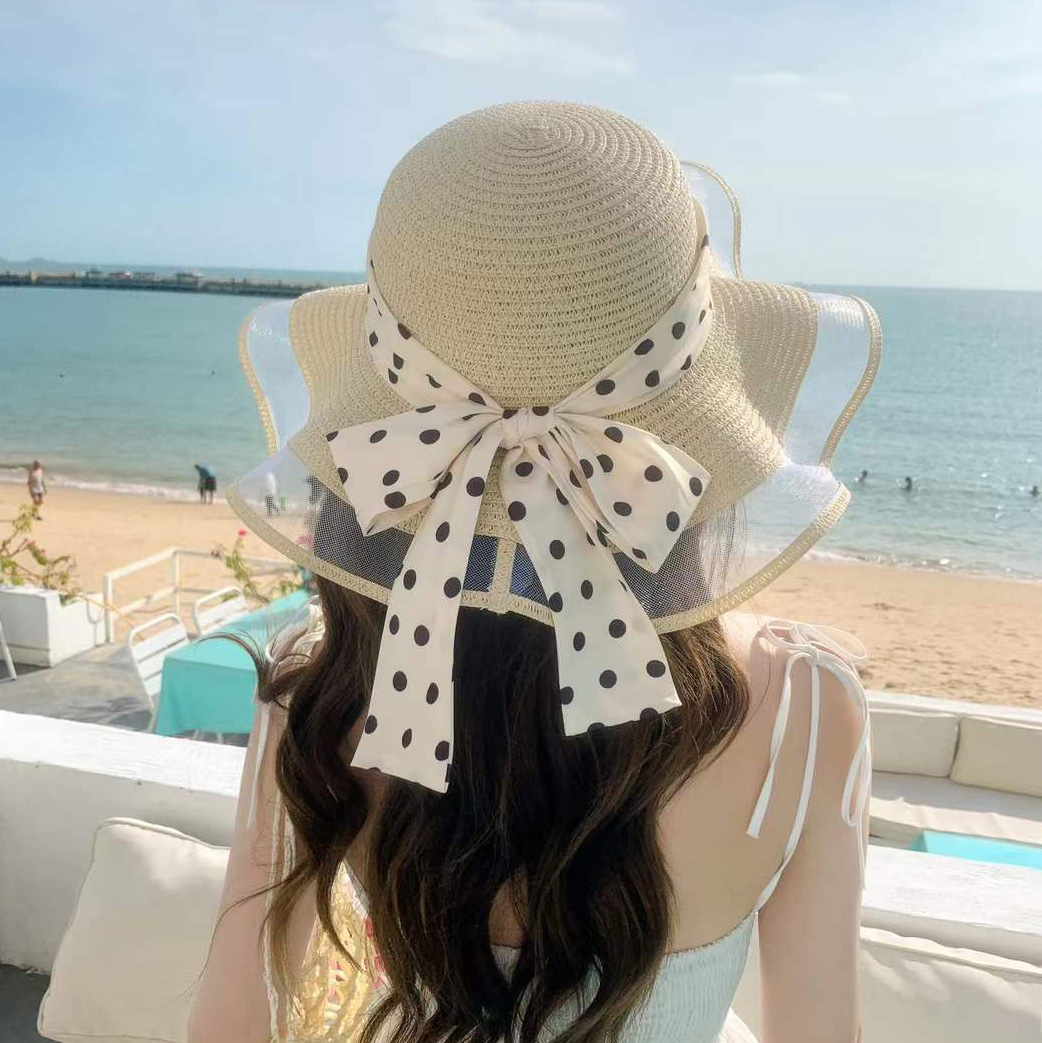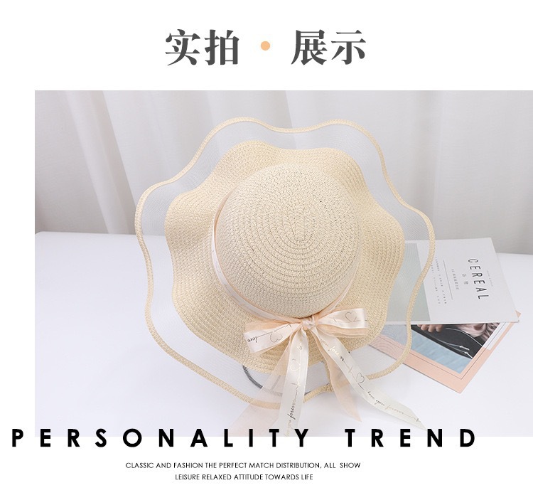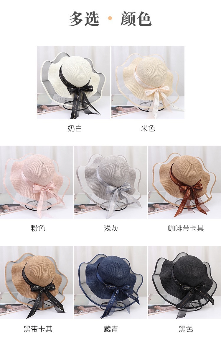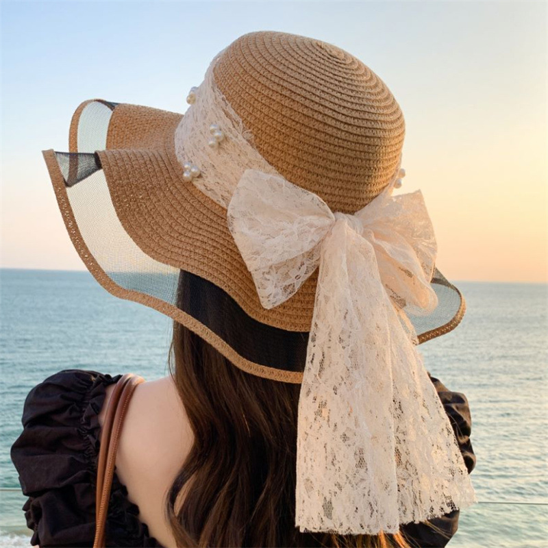 여름 야외 큰 챙 태양 모자 활 리본 비치 모자 도매 태양 보호 패션 통기성 태양 밀짚 모자 여성을위한스토어 가기