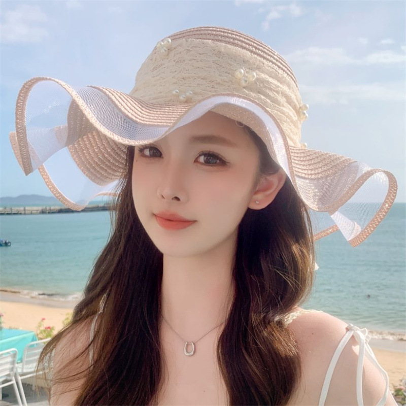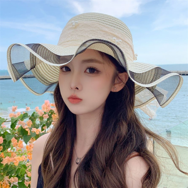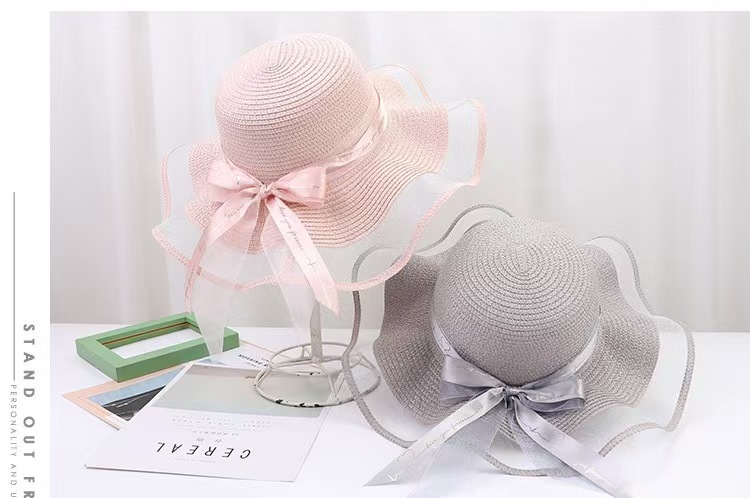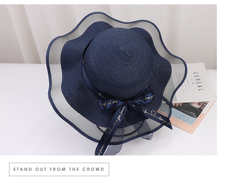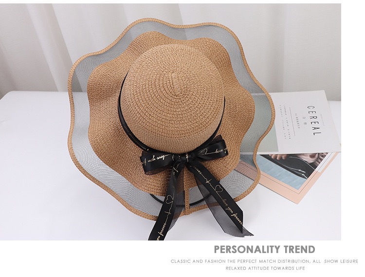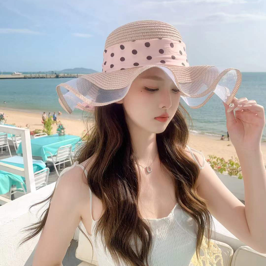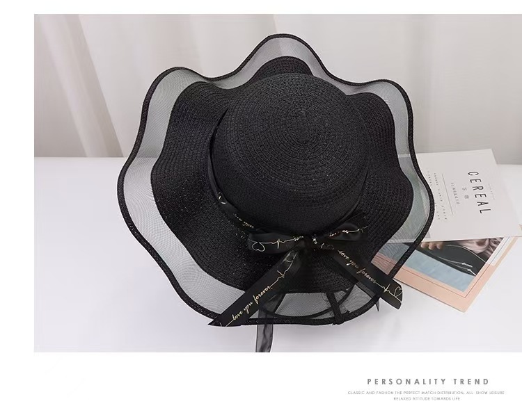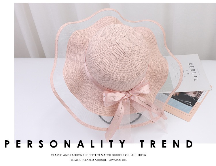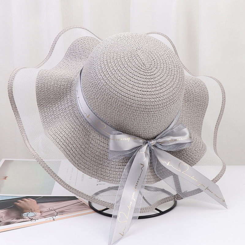 여름 야외 큰 챙 태양 모자 활 리본 비치 모자 도매 태양 보호 패션 통기성 태양 밀짚 모자 여성을위한스토어 가기