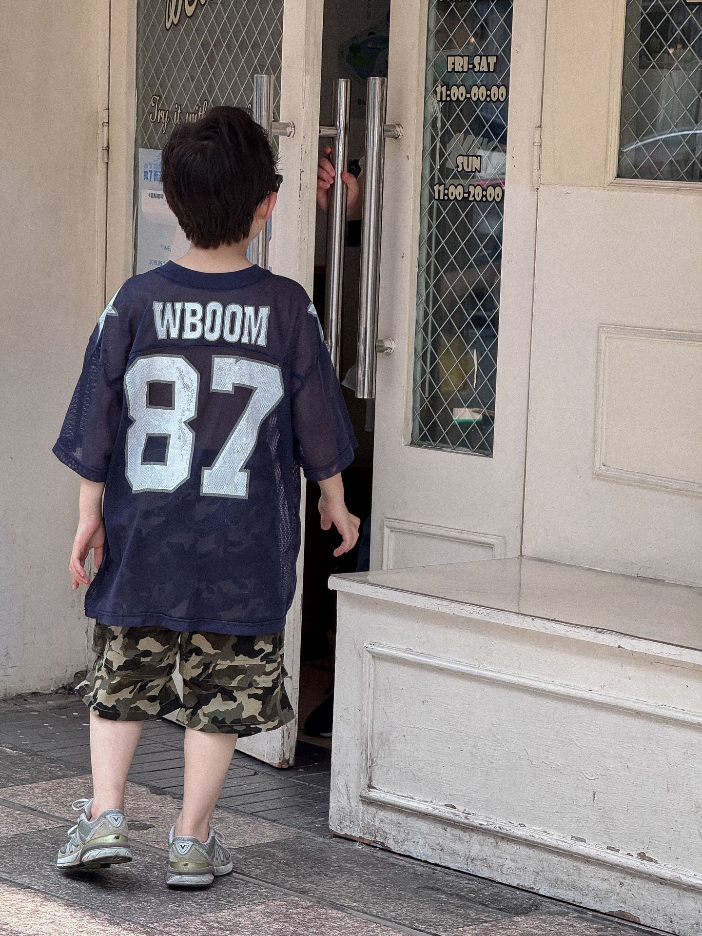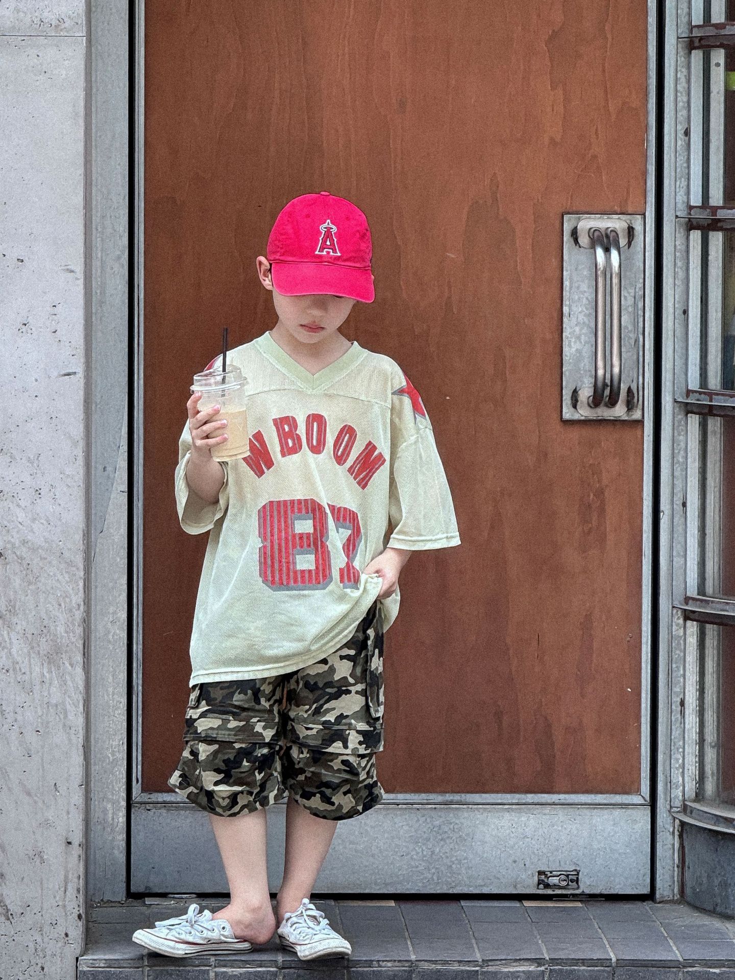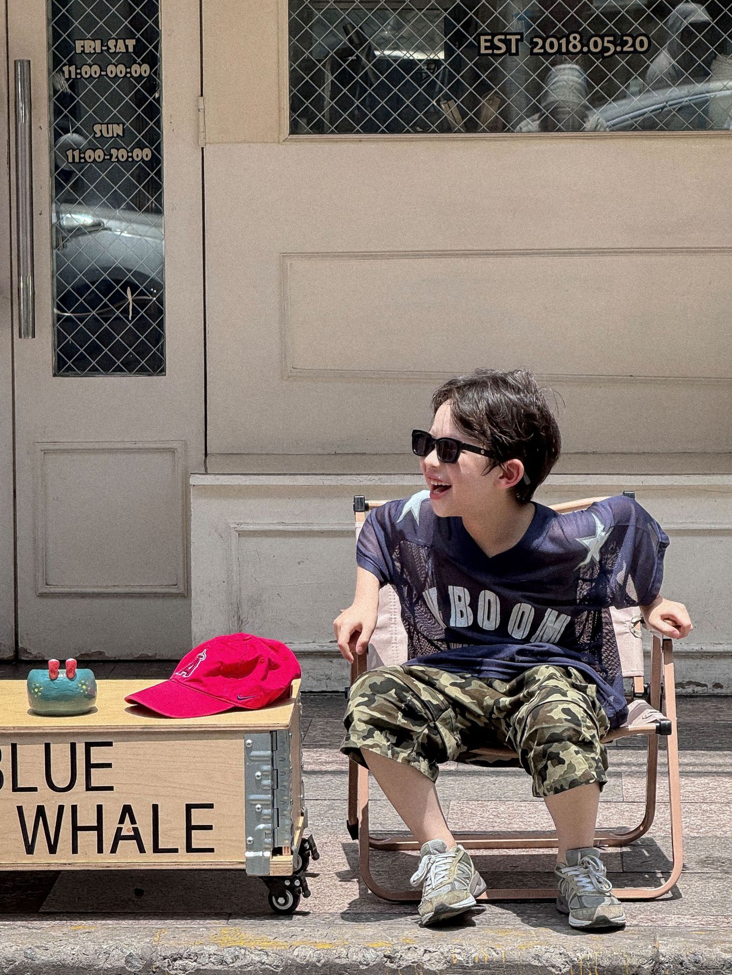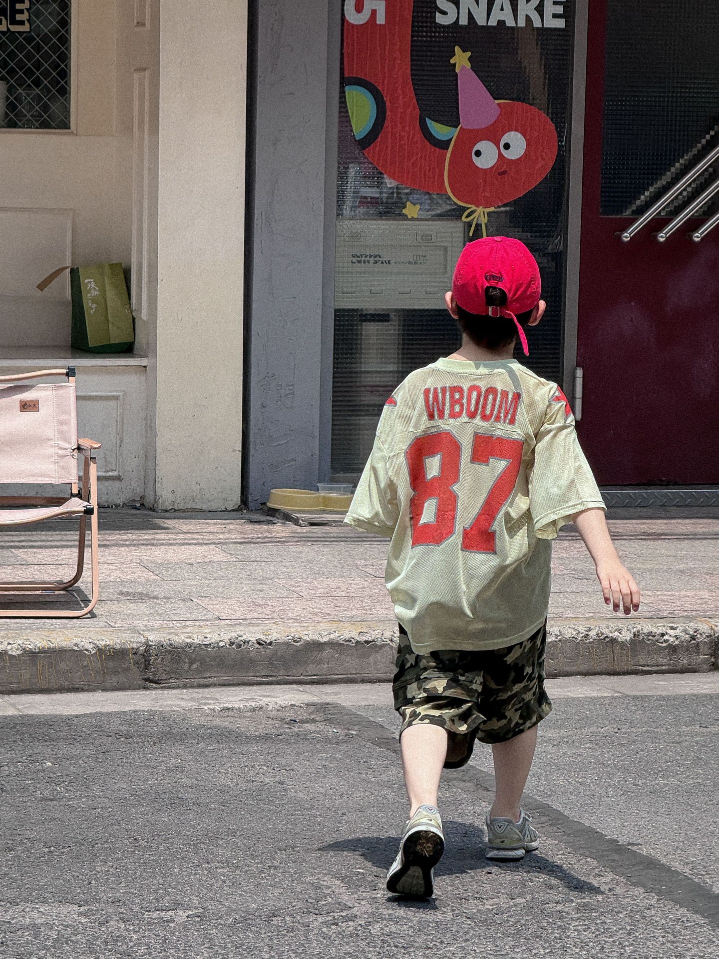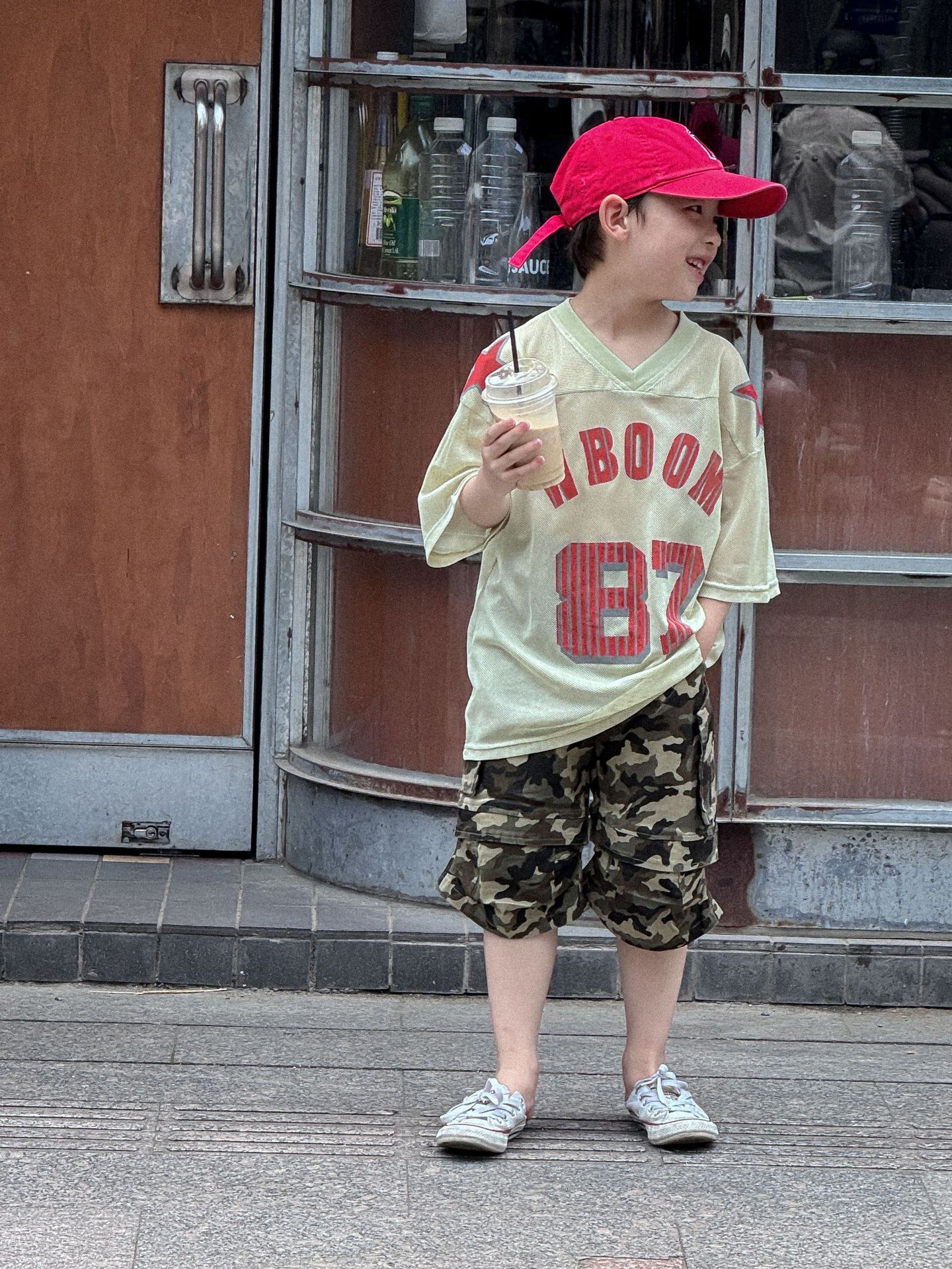 Lan Yu 25 여름 한국 아동복 중소 어린이 소년 편지 인쇄 스포츠 저지 할로우 V-넥 메쉬 짧은 소매