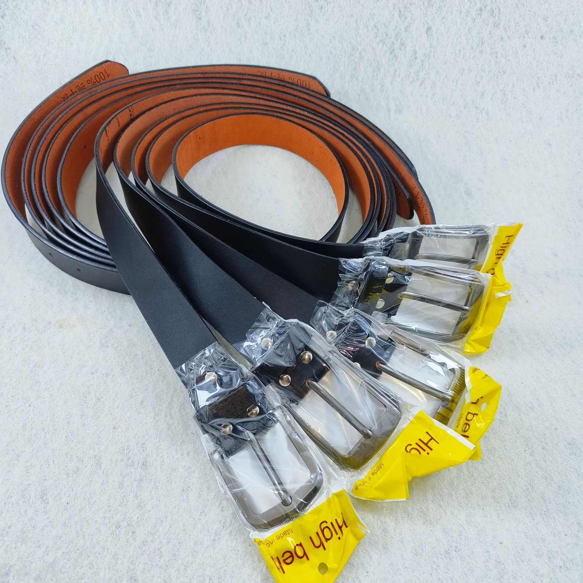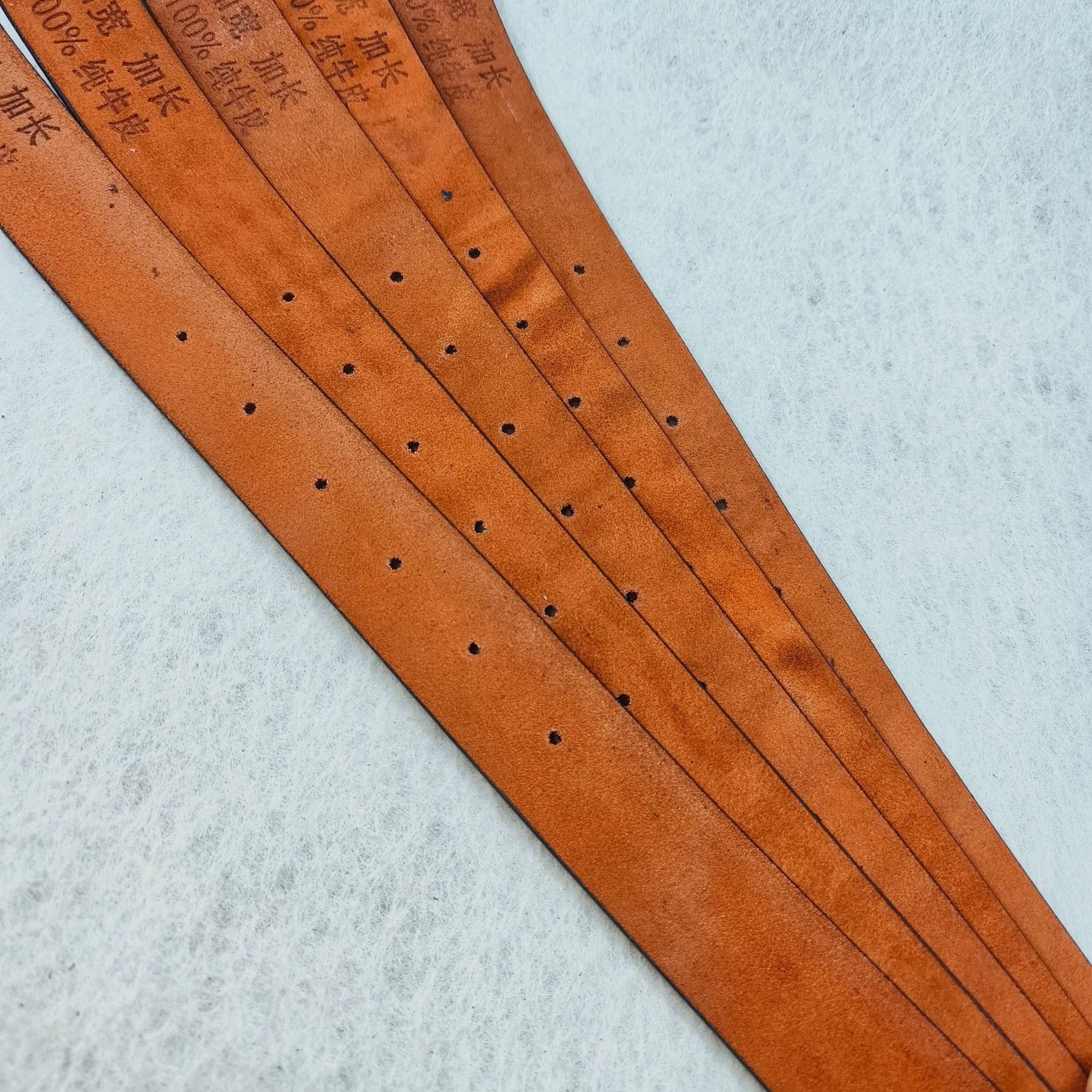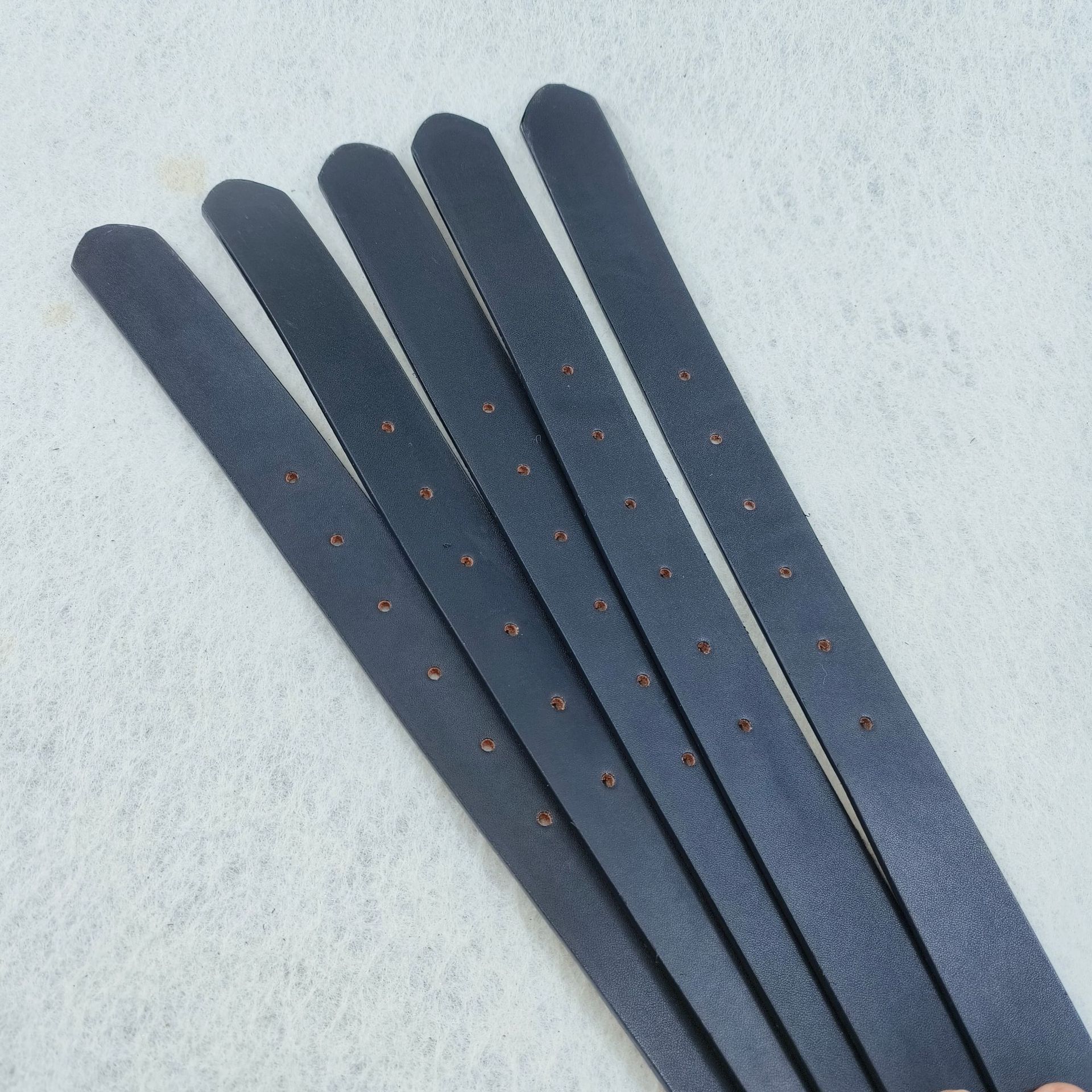 注意事项:本产品是整张牛皮切割手工制作,表面喷漆制作里部有污渍属于正常现象,由于牛皮不规格所以长度是不固定的,每包10条长度是搭配好的。