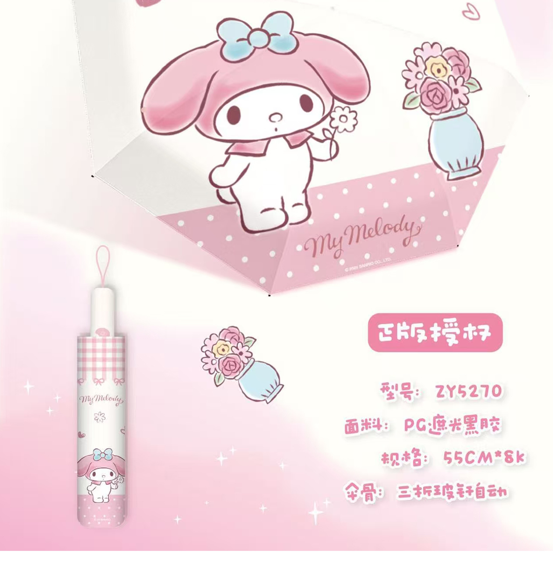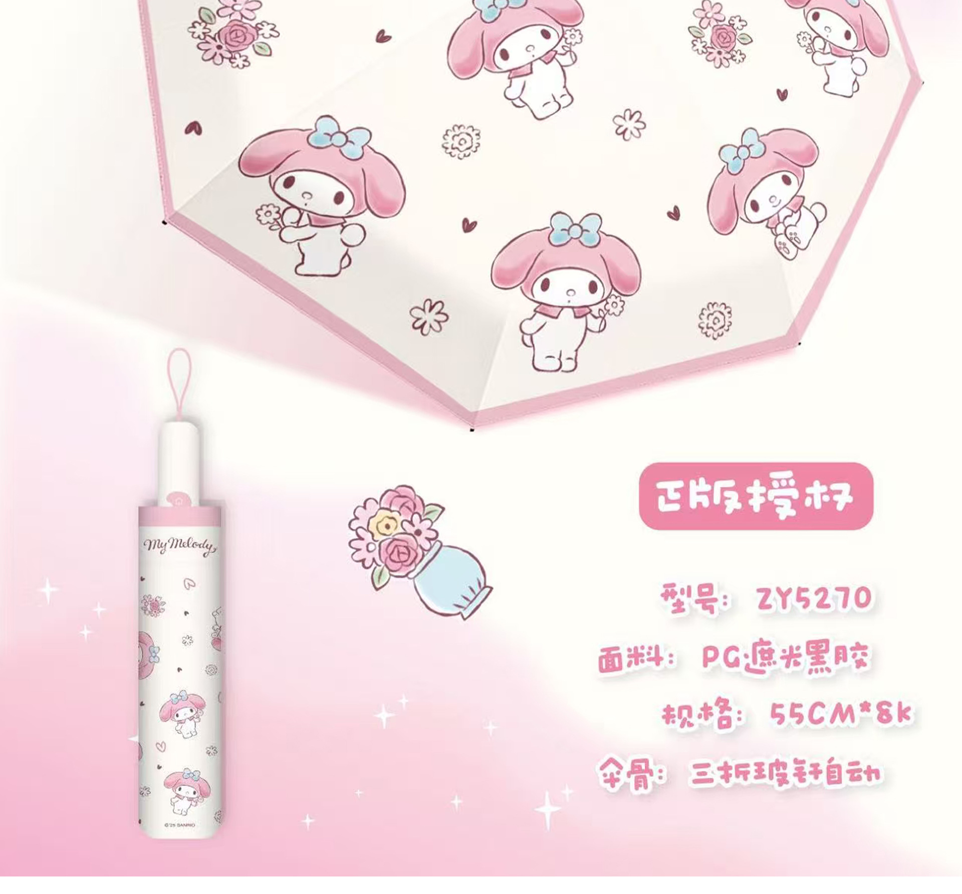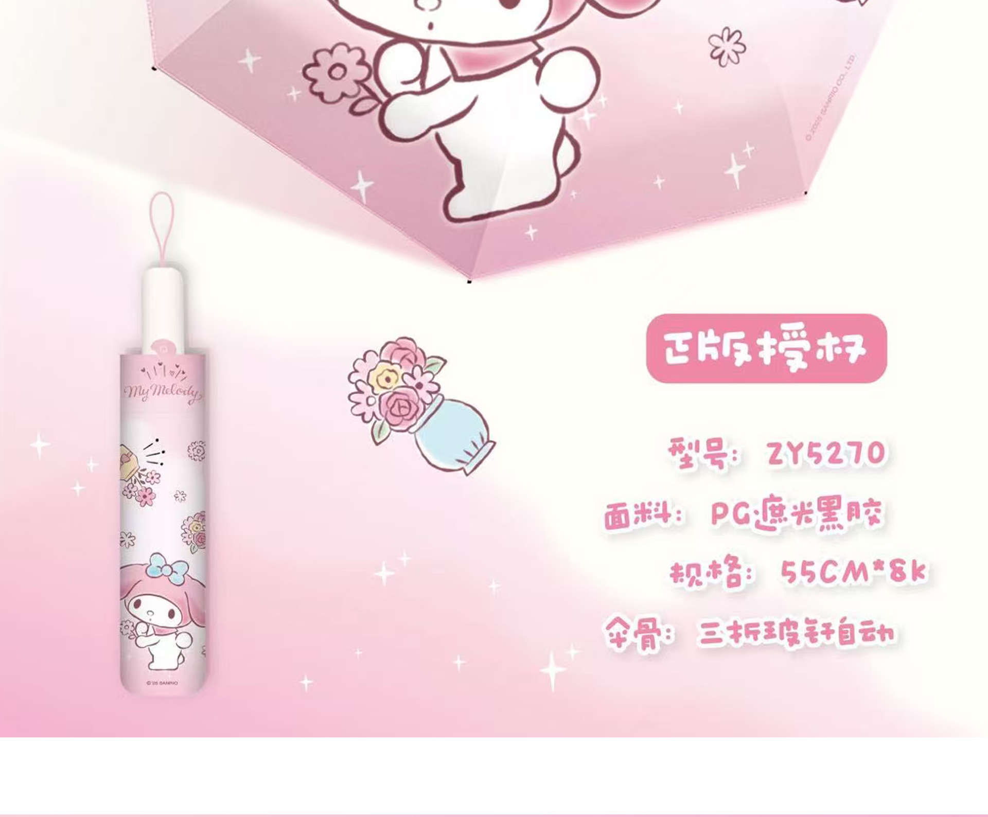 Sanrio 정품 공인 멜로디 시리즈 70% off 자동 비 또는 빛 우산 휴대용 자외선 차단 파라솔스토어 가기