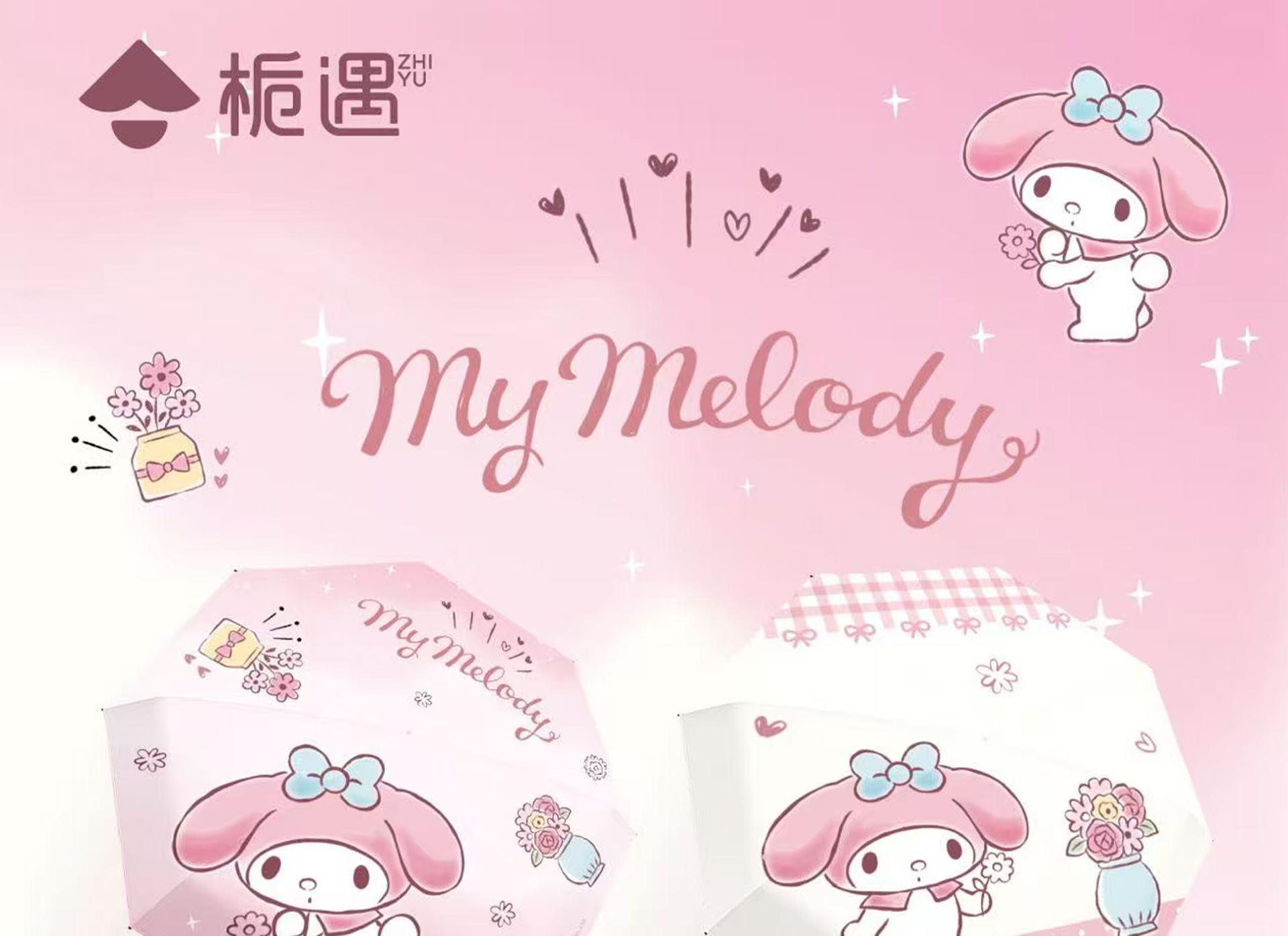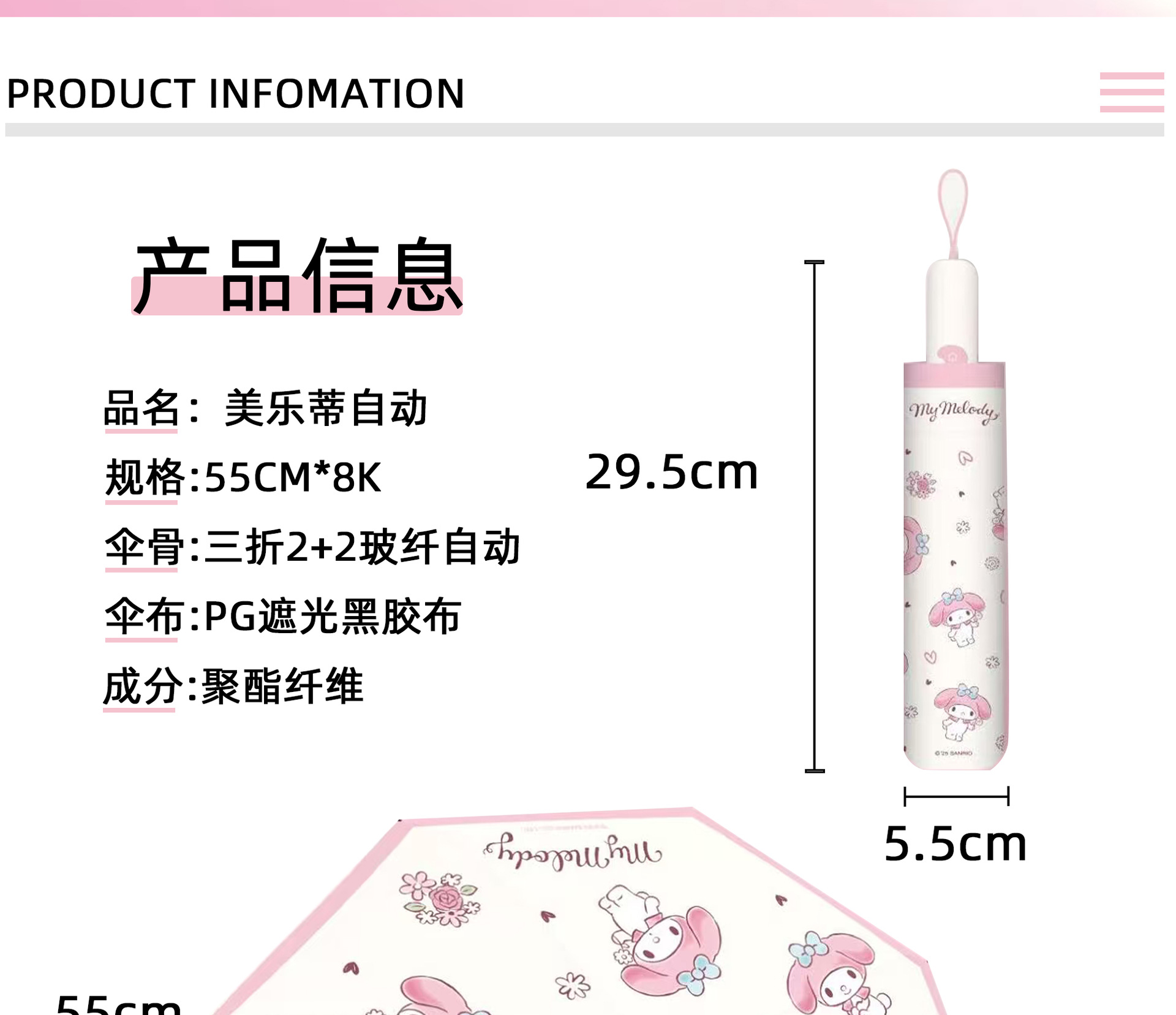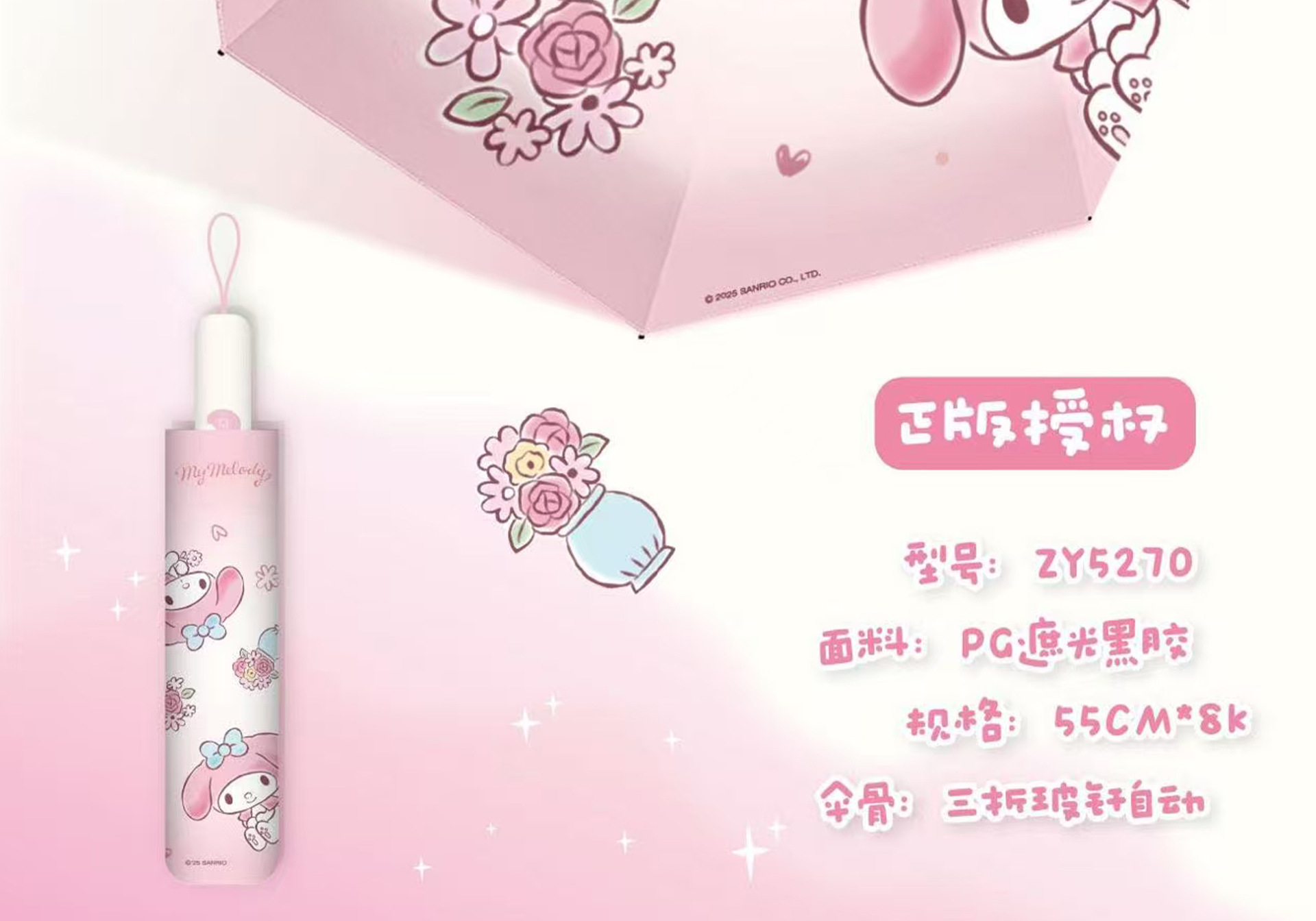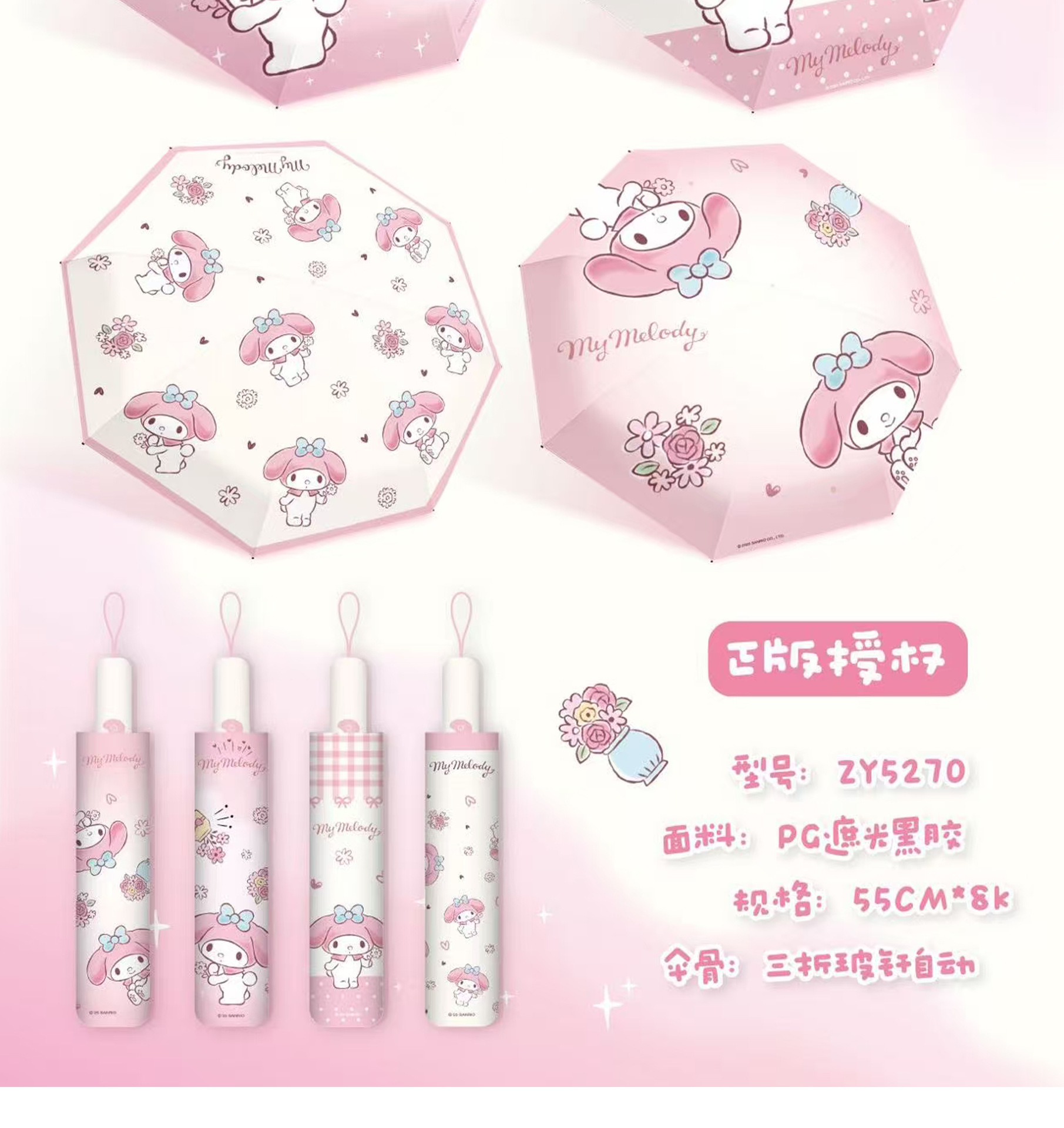Sanrio 정품 공인 멜로디 시리즈 70% off 자동 비 또는 빛 우산 휴대용 자외선 차단 파라솔스토어 가기