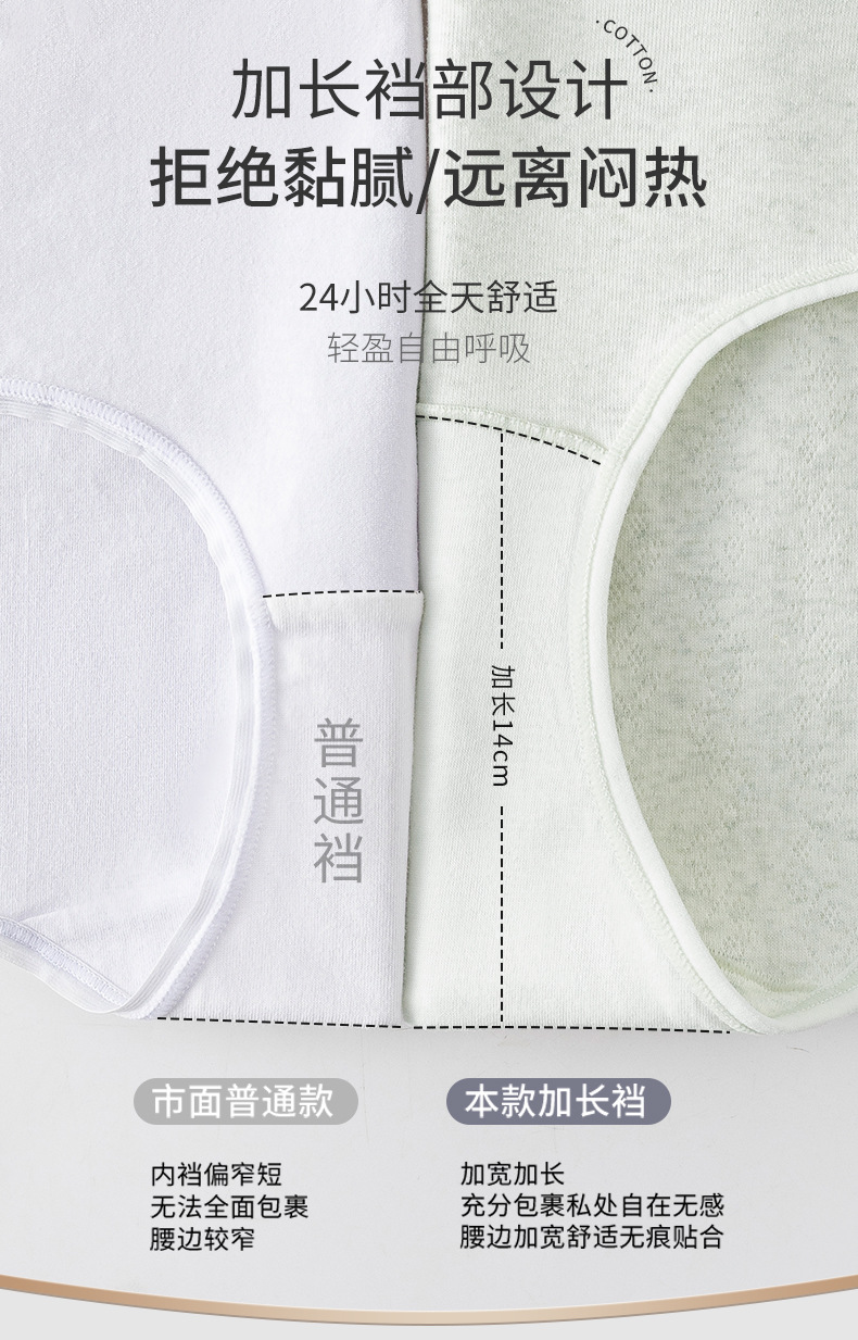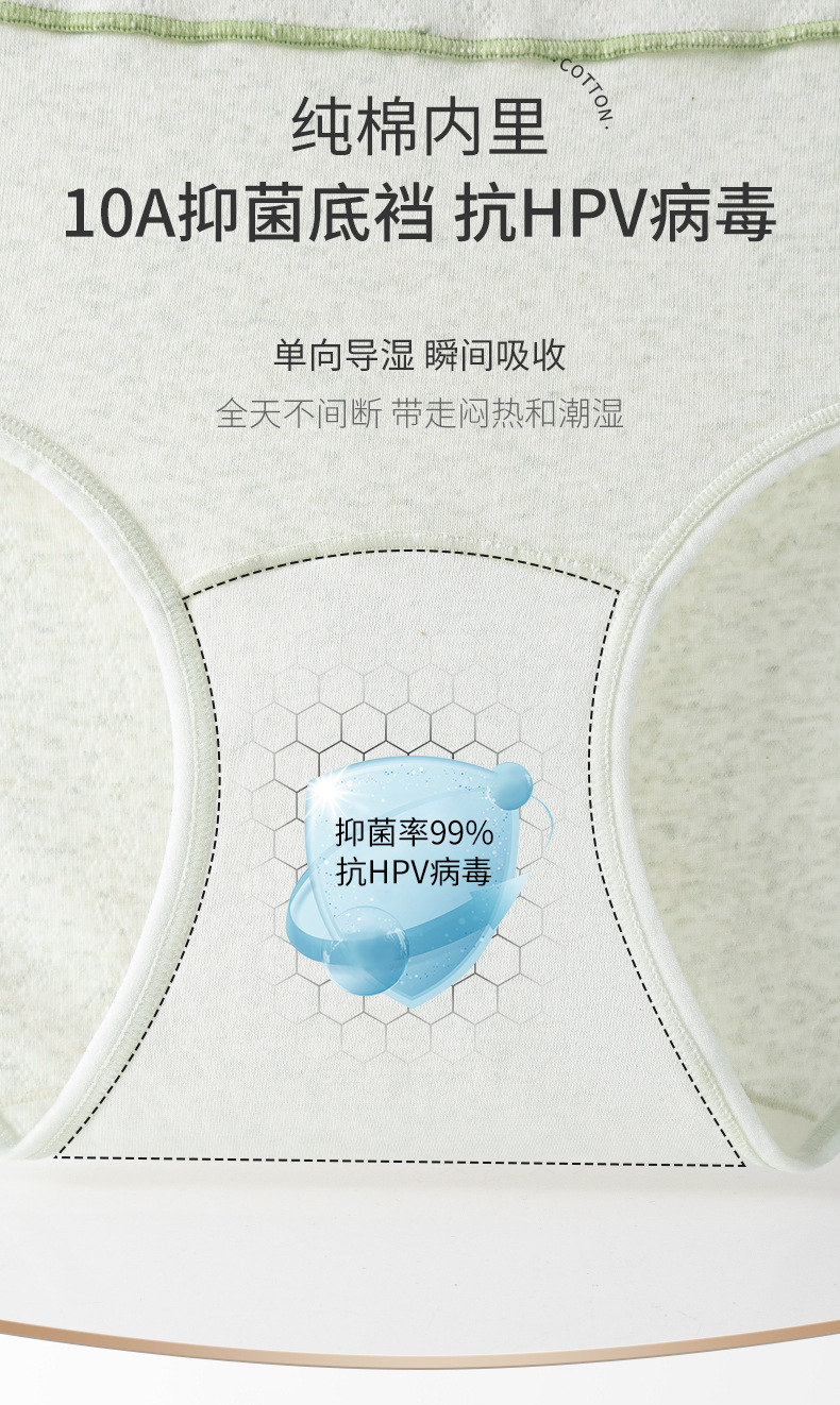 여성용 순면 미드 웨이스트 10A 항균 바이러스 속옷, 길어진 가랑이 부드럽고 통기성이 뛰어나며 흔적이 없는 여성용 삼각 반바지