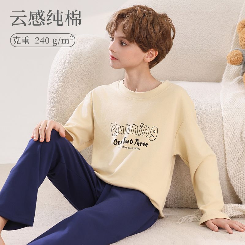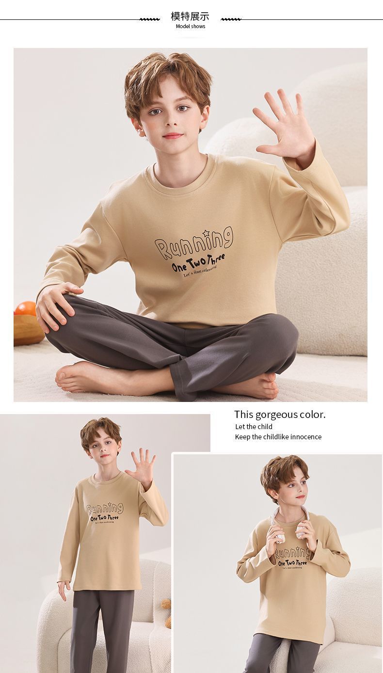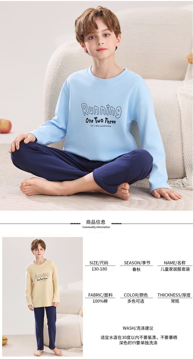 소년 잠옷 순면 봄, 가을 스타일 중대형 소년 긴팔 에어컨 의류 어린이 가을 캐주얼 홈웨어 세트