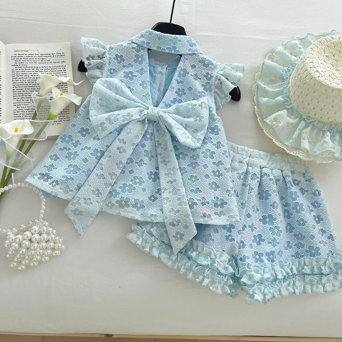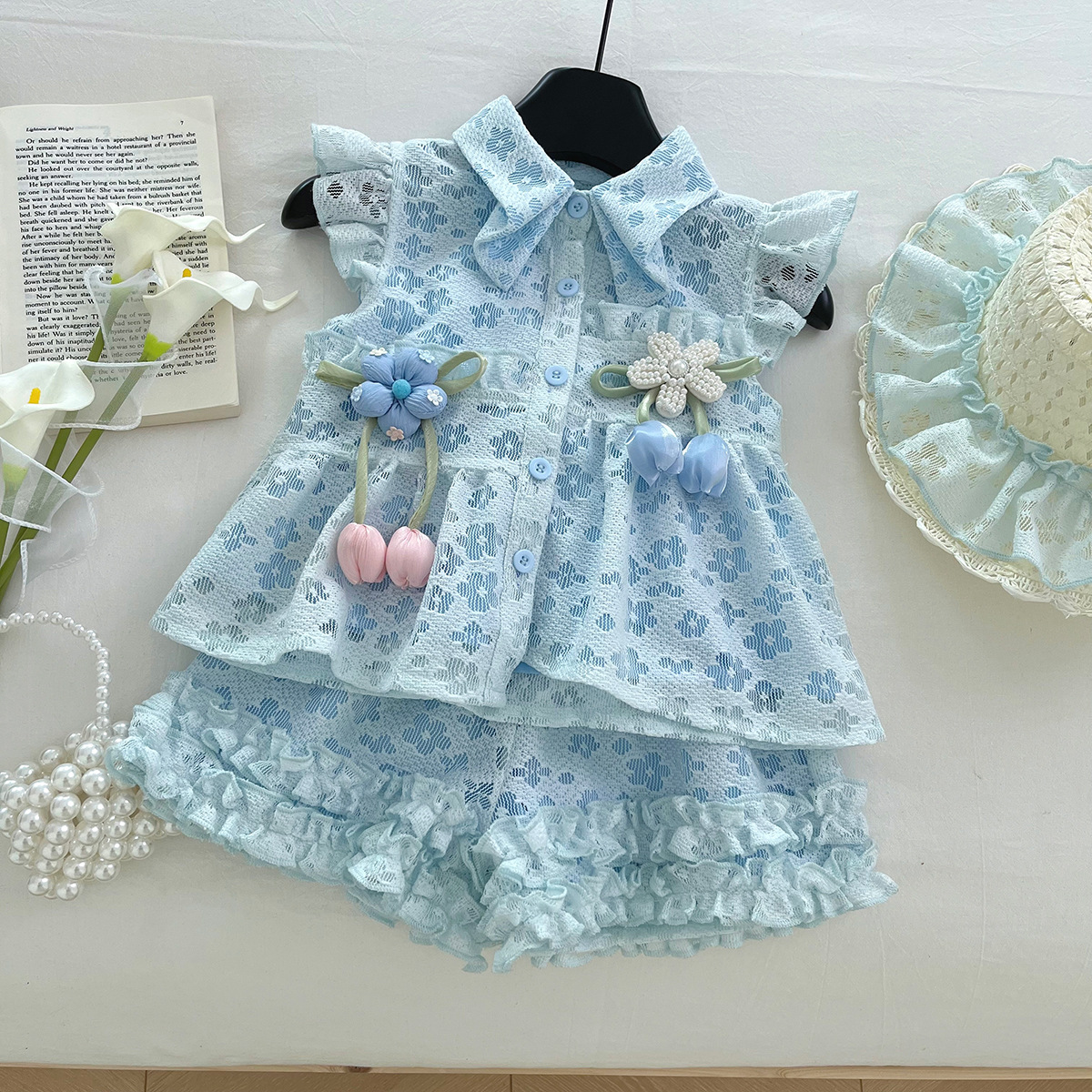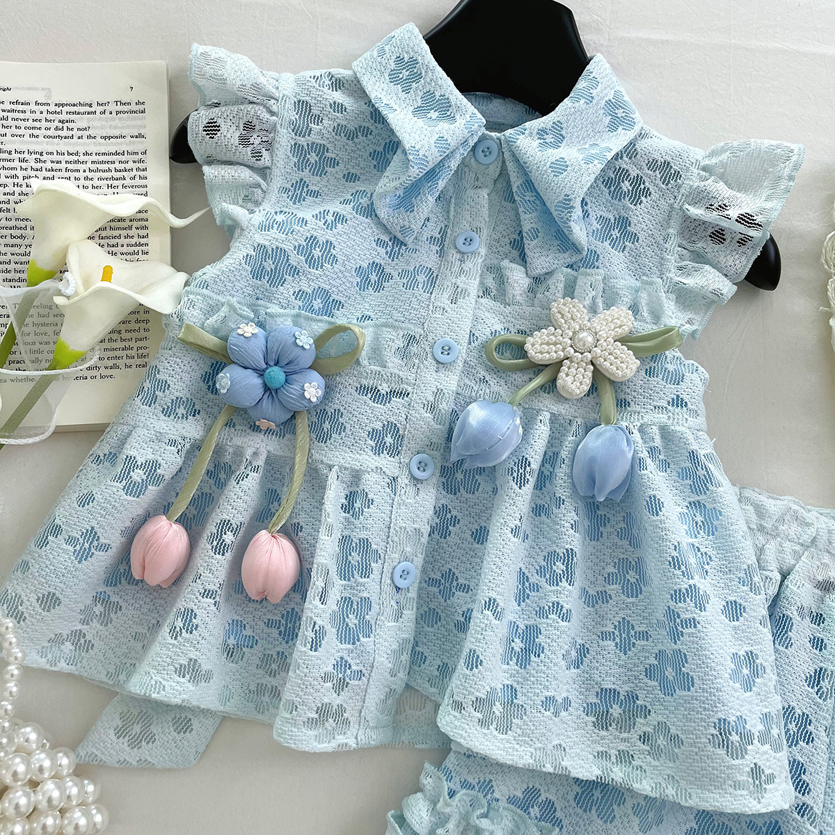 신제품 아동복 한국식 여아 패션 꽃조끼 상의 꽃봉오리 반바지 상큼한 투피스 세트 모자 포함스토어 가기