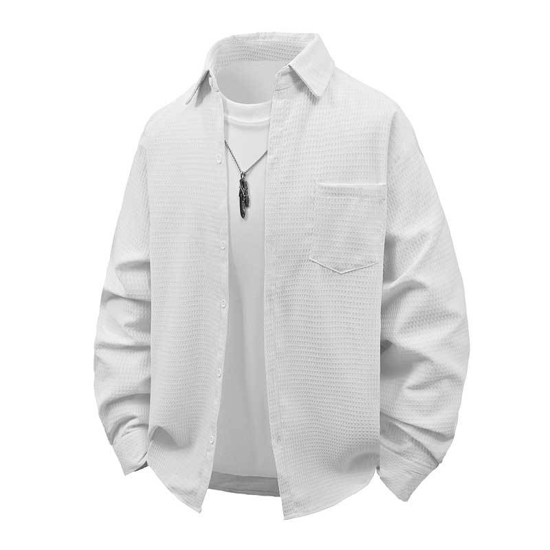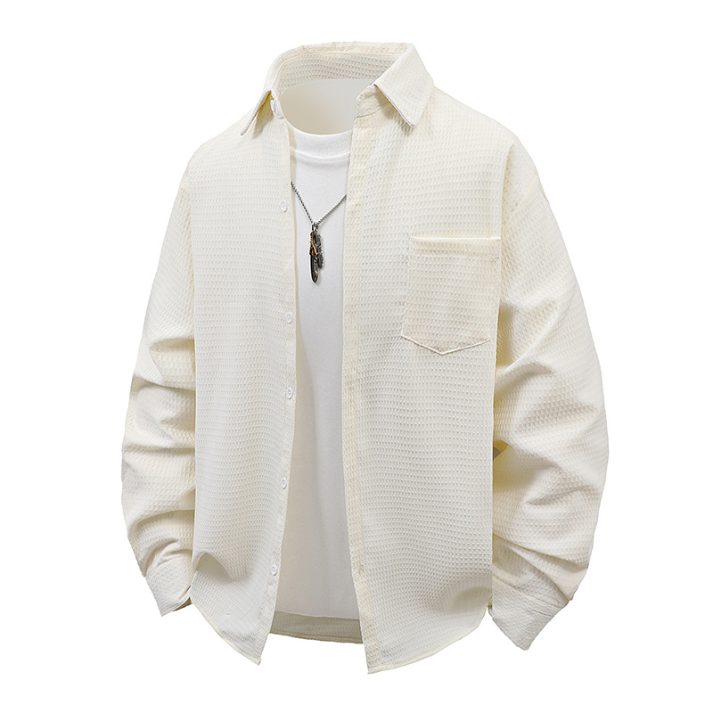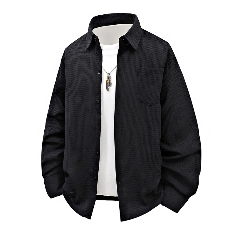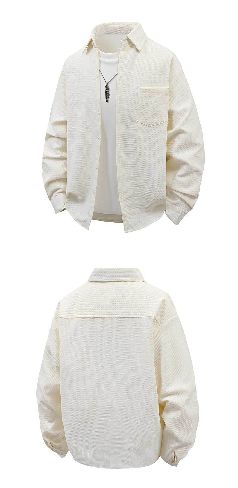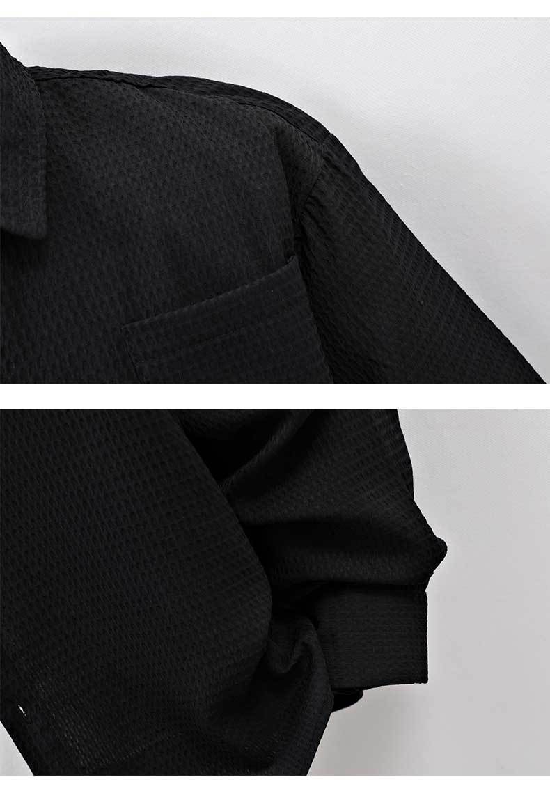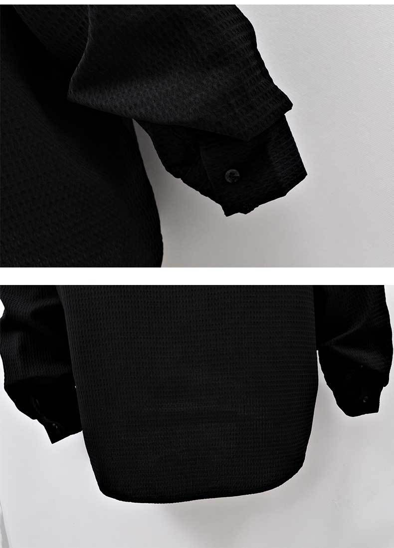 무료 배송 새로운 Wuchen Douyin 같은 스타일 봄과 여름 질감 긴팔 셔츠 일본 다용도 솔리드 컬러 니트 단순 데이터