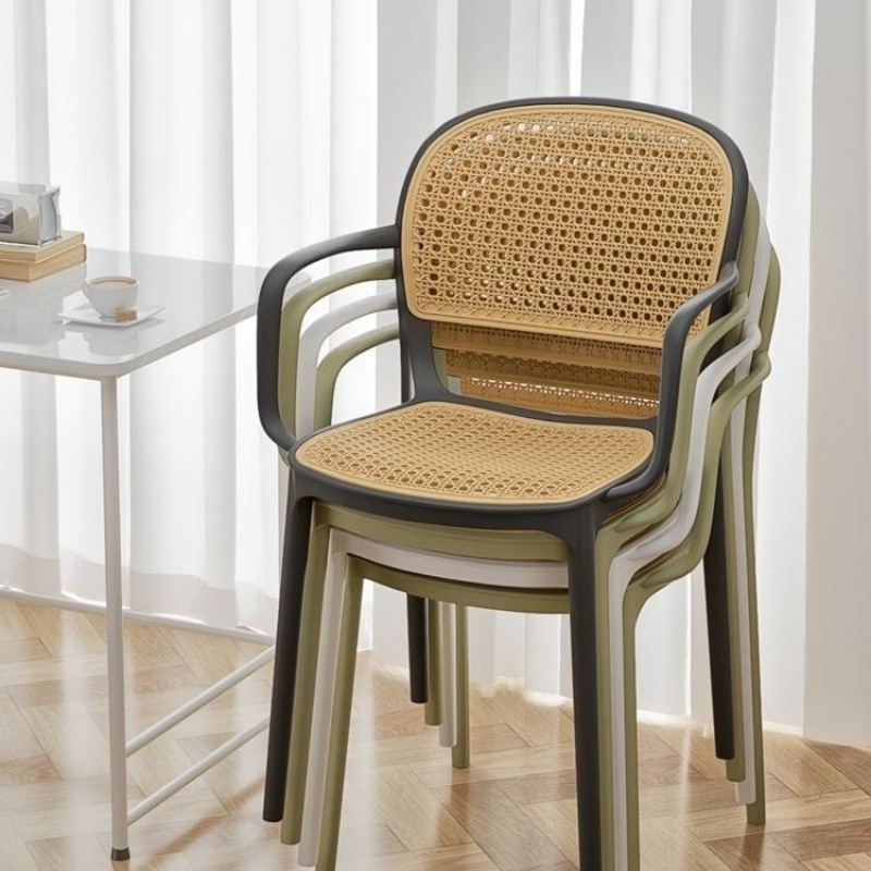 플라스틱 의자 등나무 북유럽 가정용 스태킹 다이닝 의자 야외 레저 인터넷 연예인 등받이 의자 팔걸이 테이블 의자 중공 의자