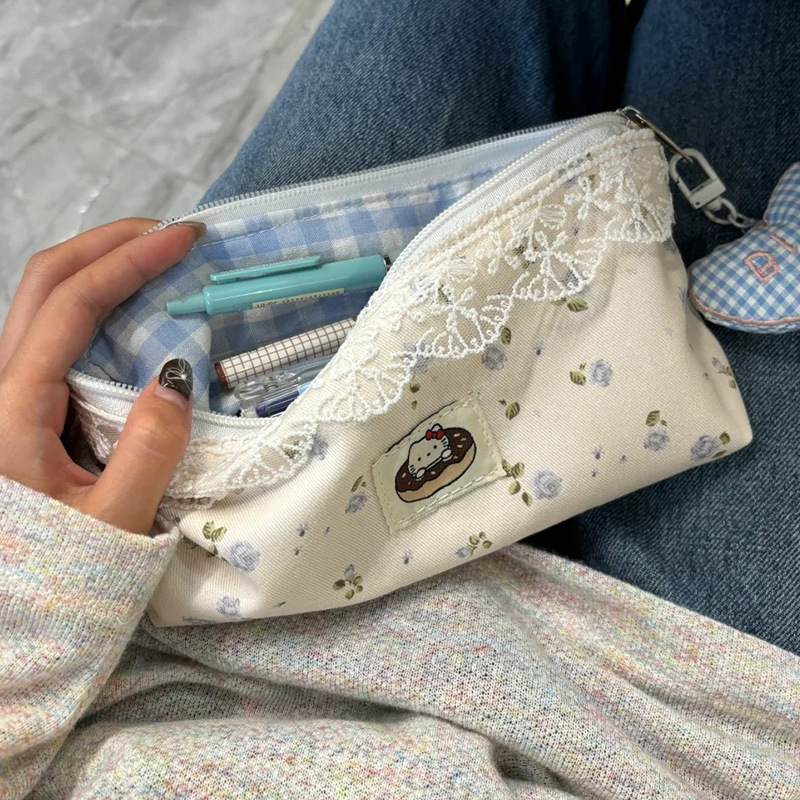 레이스 프린트 kt 연필 가방 ins 디자인 고급 문구 가방 여학생 대용량 연필 가방 보관