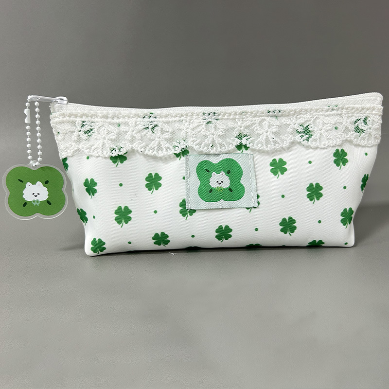 • 네잎 클로버 레이스 꽃무늬 필통 + 네잎 클로버 고양이 펜던트