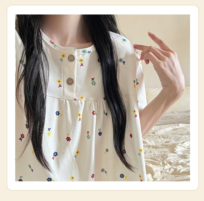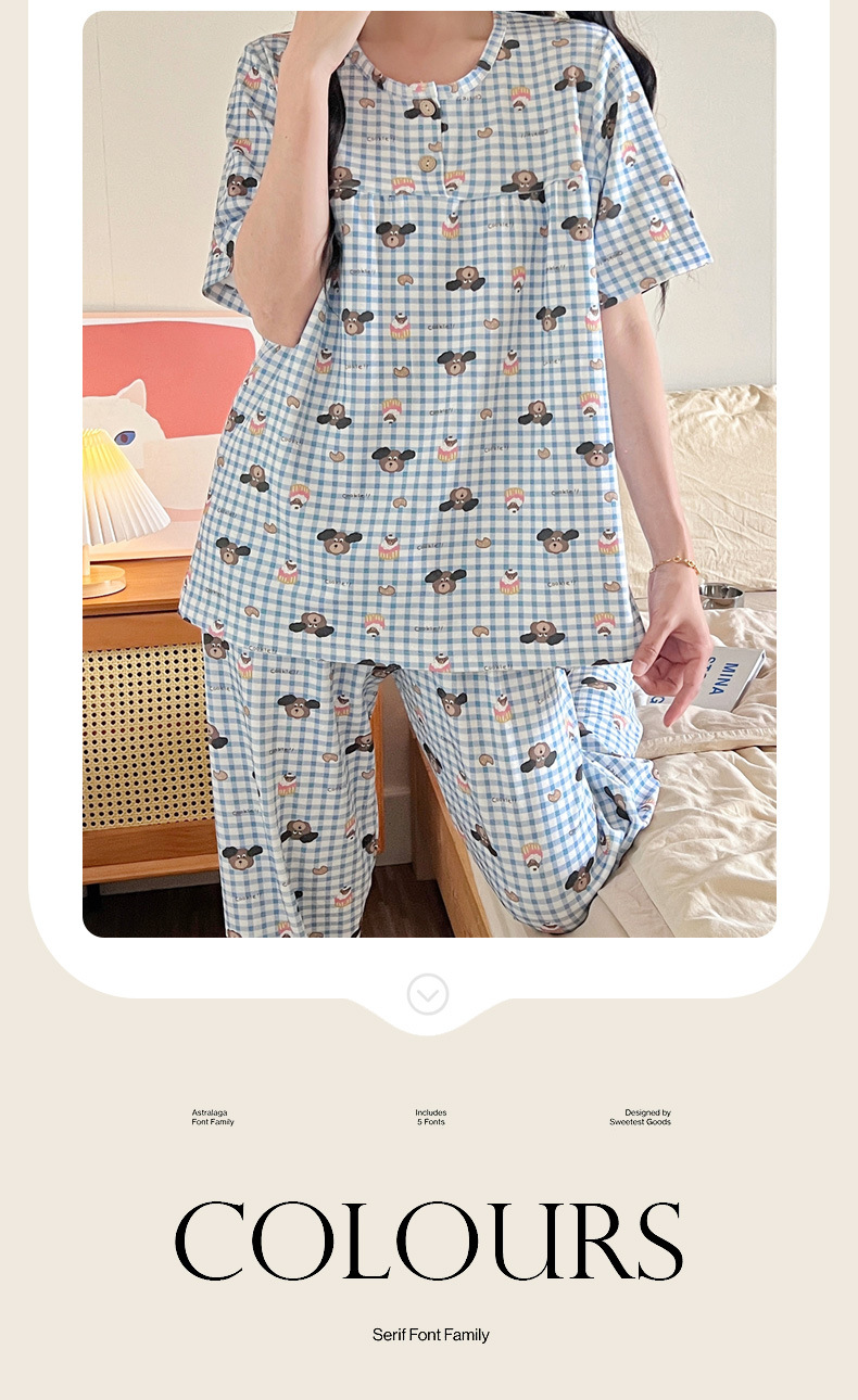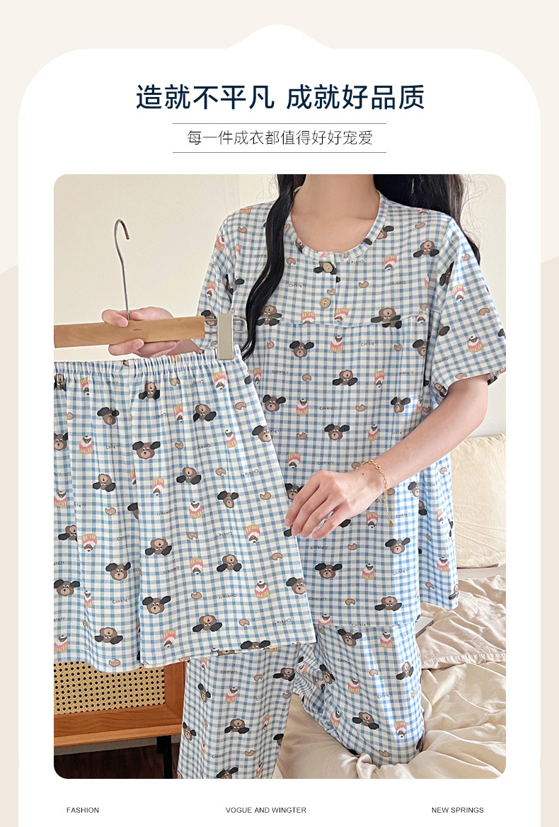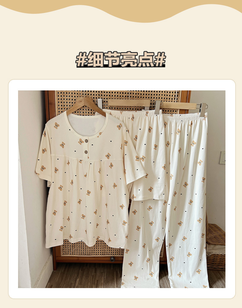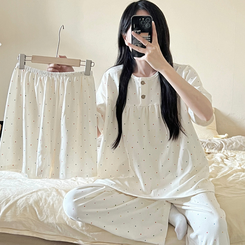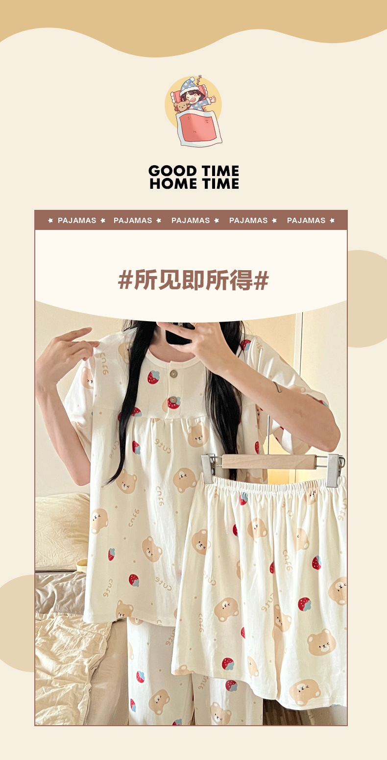 여성용 잠옷 여름 새 모조 면화 반팔 반바지와 바지 3 피스 세트 만화 달콤한 홈웨어는 정장 외부에 착용 가능스토어 가기