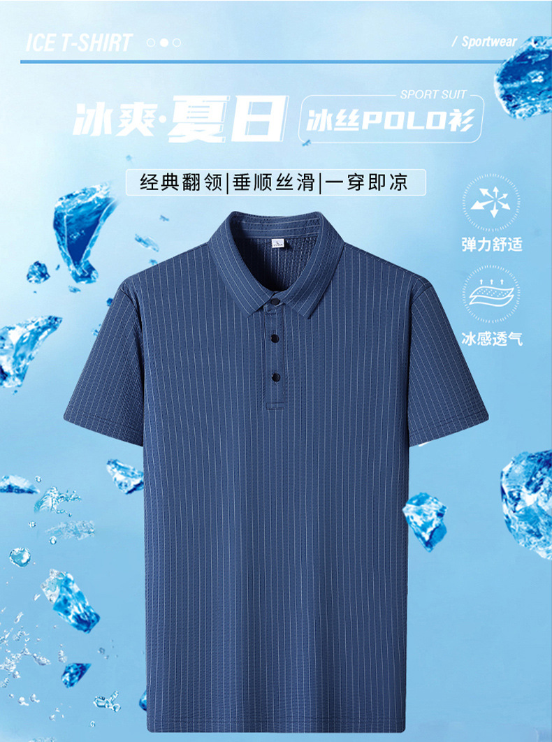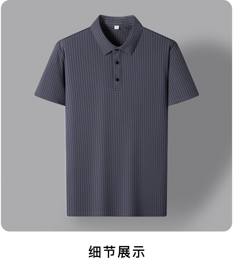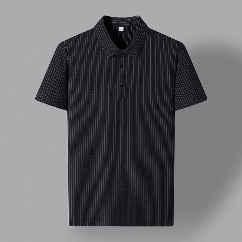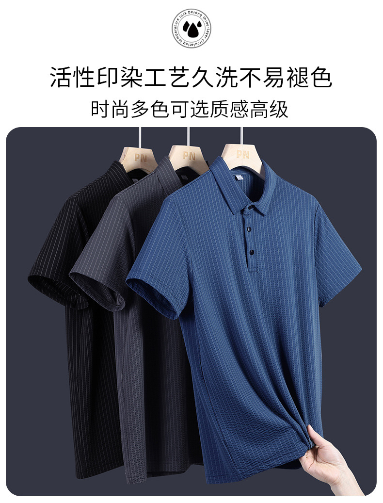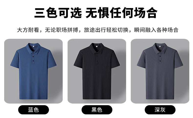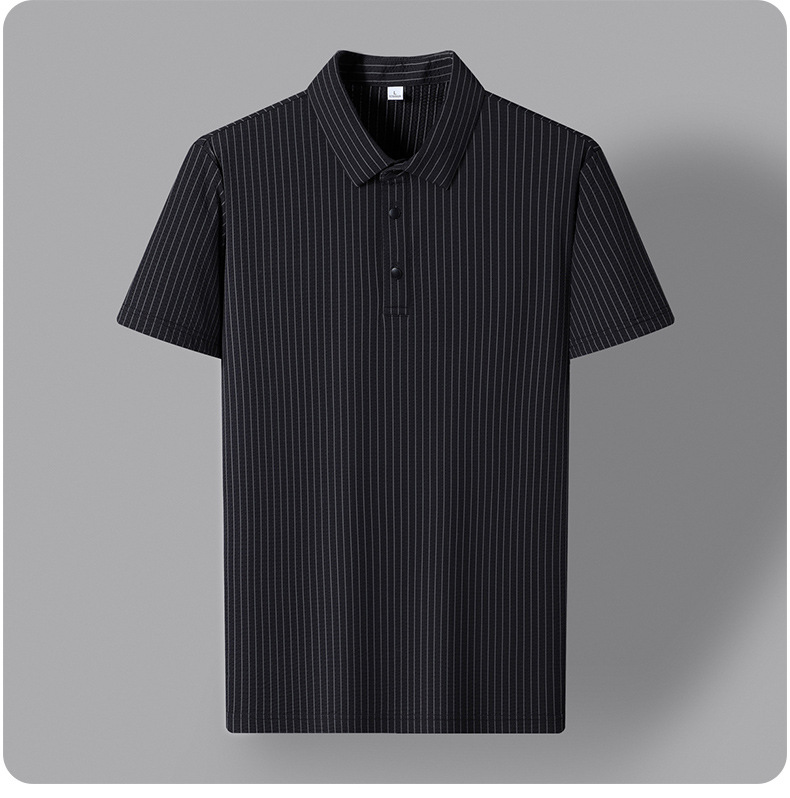 무료 배송 새로운 여름 솔리드 컬러 아이스 실크 세로 줄무늬 폴로 셔츠 남성용 다목적 루즈 스포츠 캐주얼 라펠 반팔 T