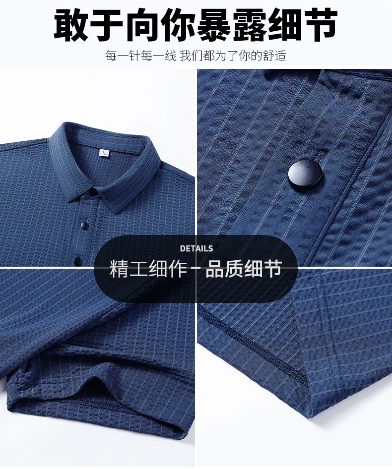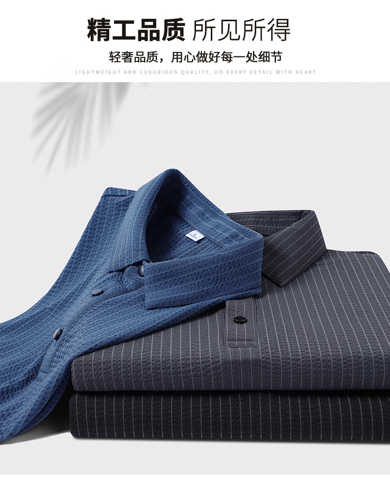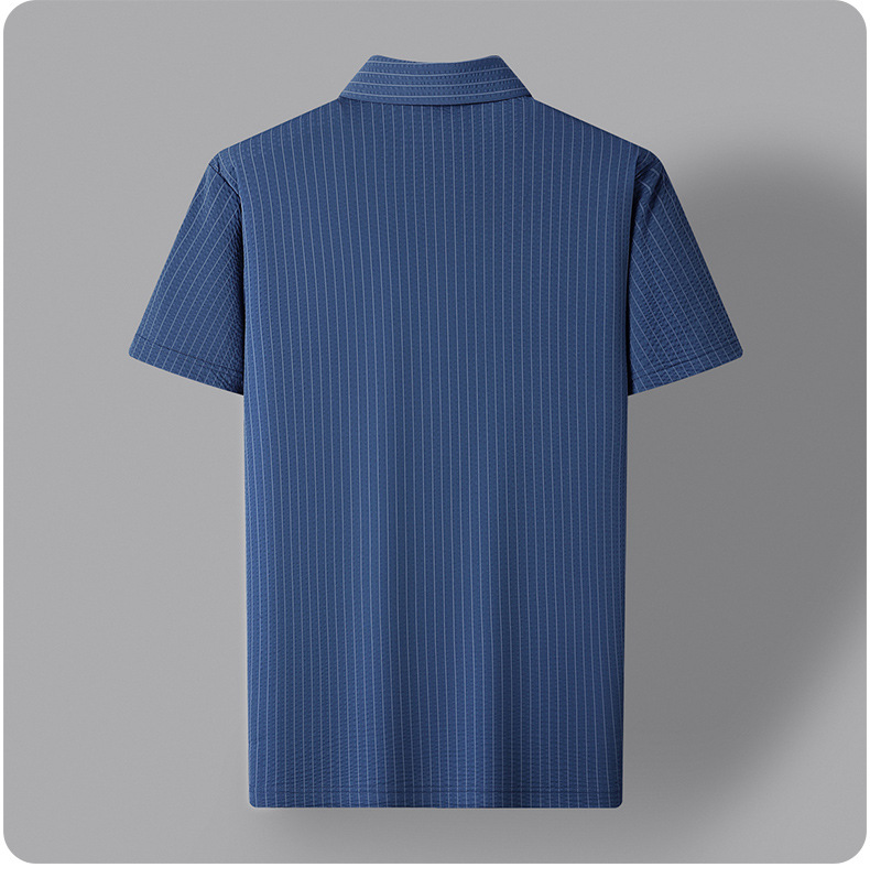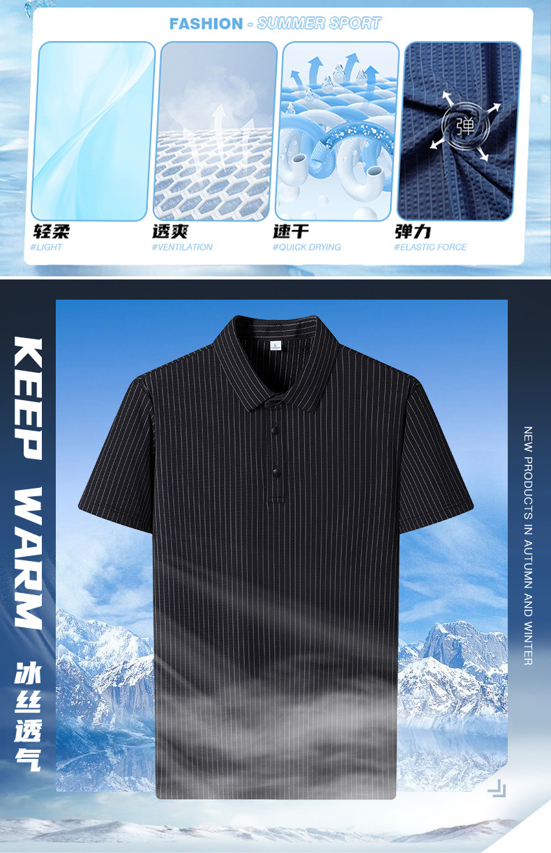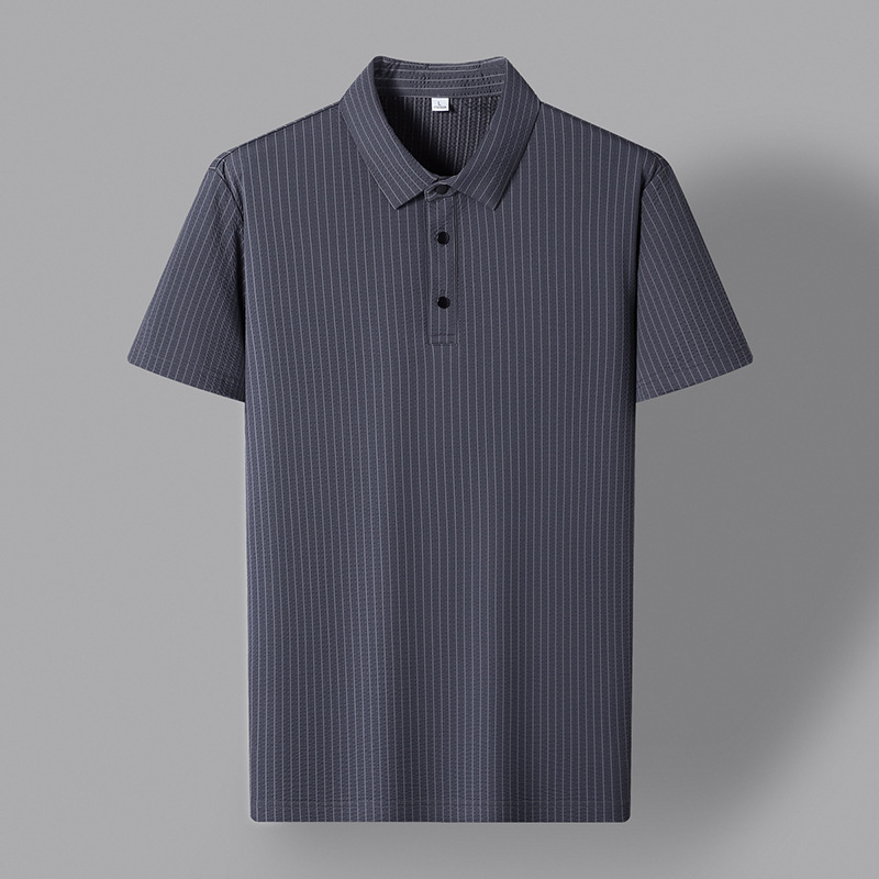 무료 배송 새로운 여름 솔리드 컬러 아이스 실크 세로 줄무늬 폴로 셔츠 남성용 다목적 루즈 스포츠 캐주얼 라펠 반팔 T