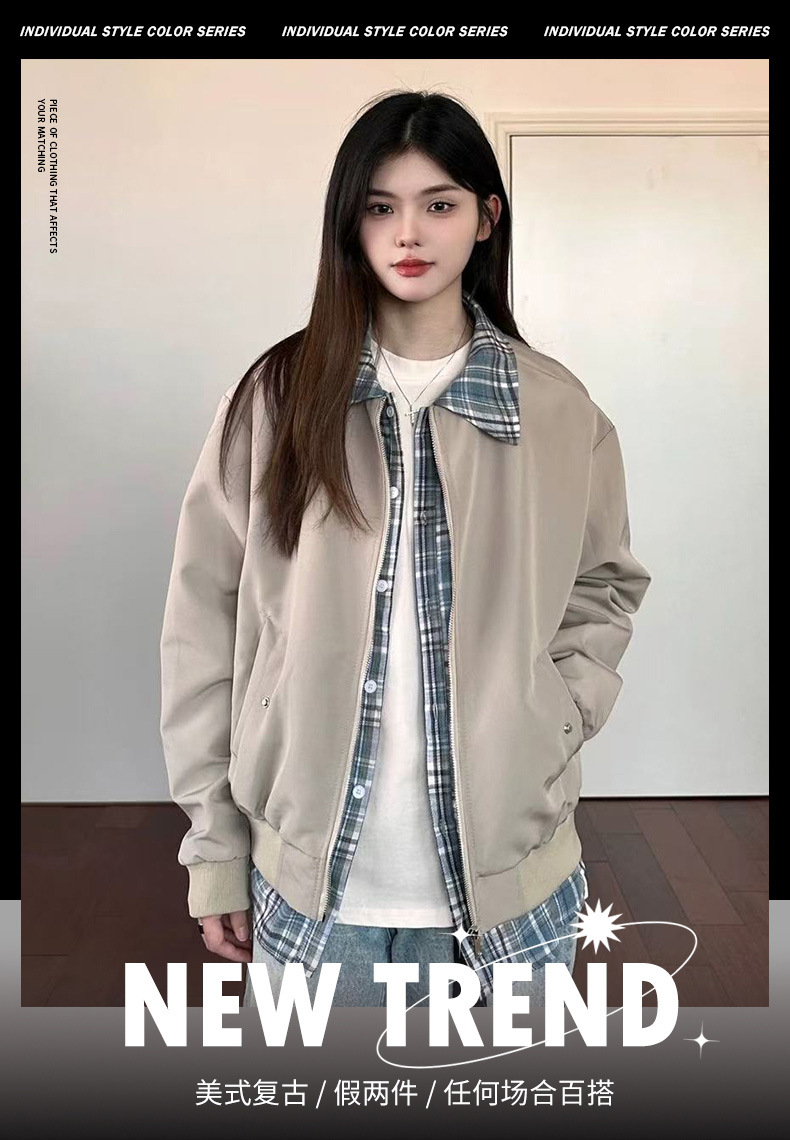 무료 배송 봄, 가을, 겨울 새로운 가짜 투피스 스플 라이스 체크 무늬 코트 커플 남성과 여성을위한 미국 루즈 타이 염색 캐주얼 재킷스토어 가기