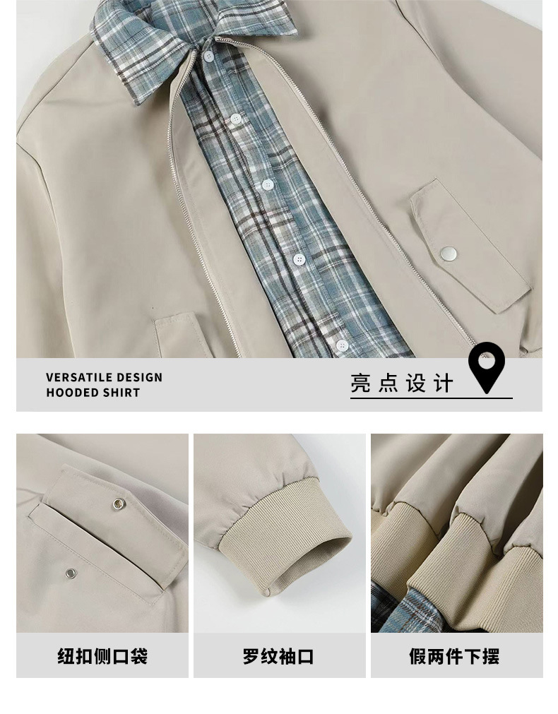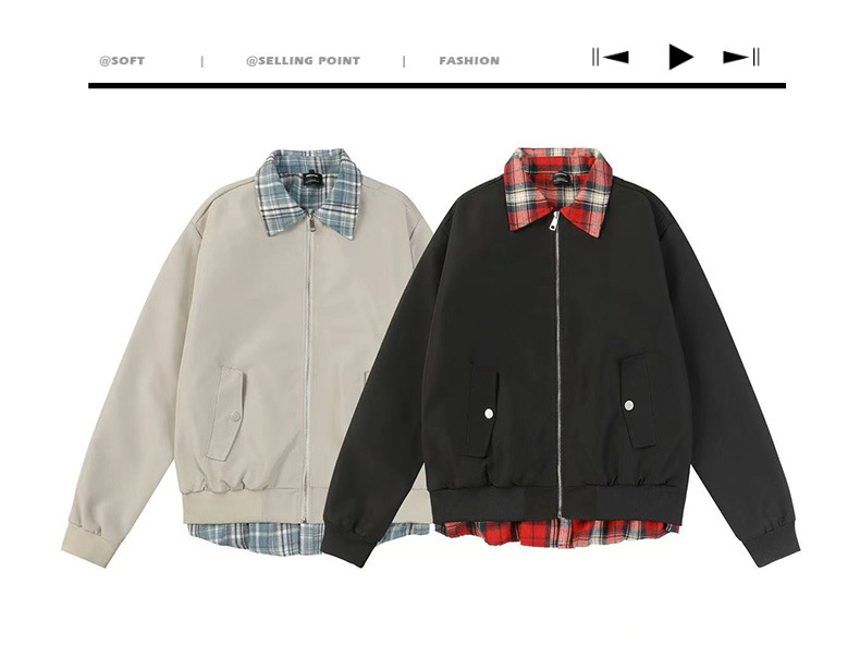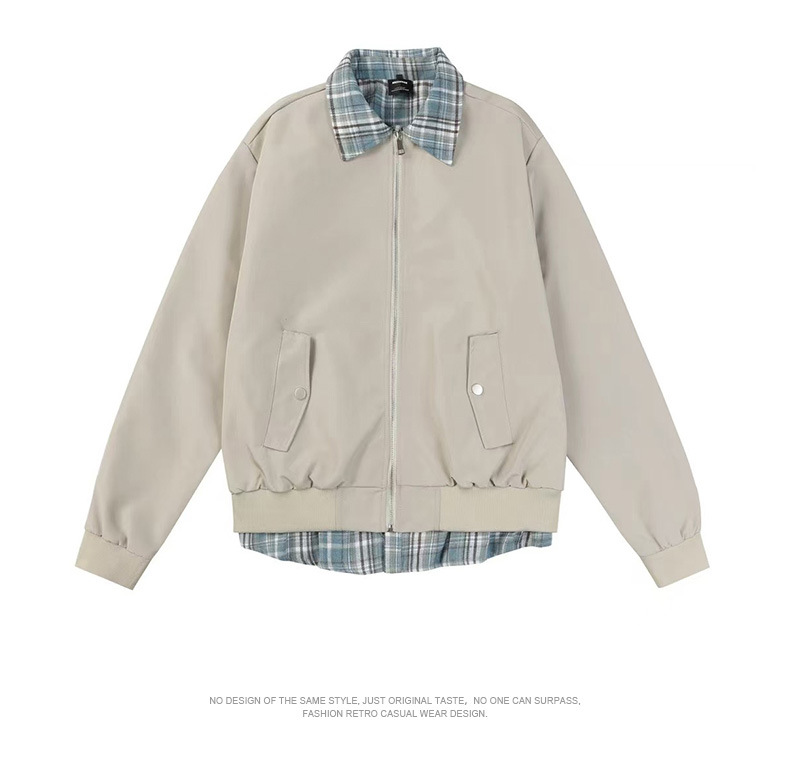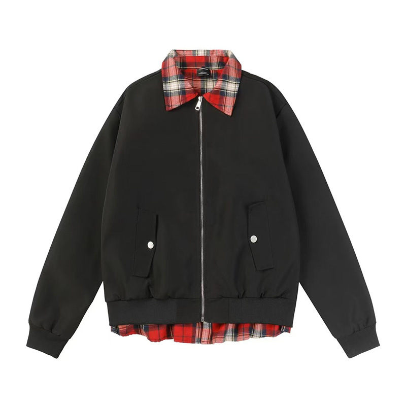 무료 배송 봄, 가을, 겨울 새로운 가짜 투피스 스플 라이스 체크 무늬 코트 커플 남성과 여성을위한 미국 루즈 타이 염색 캐주얼 재킷