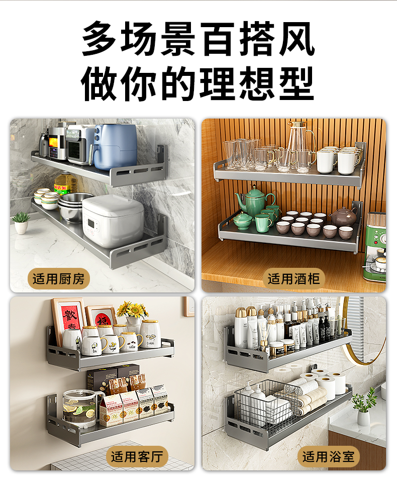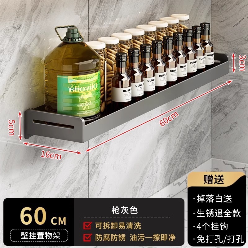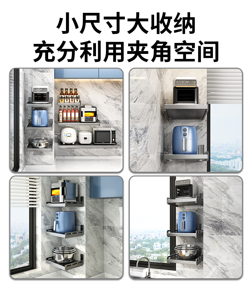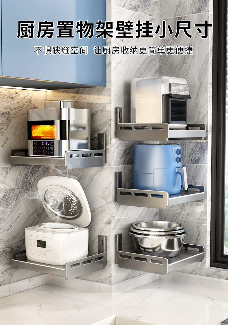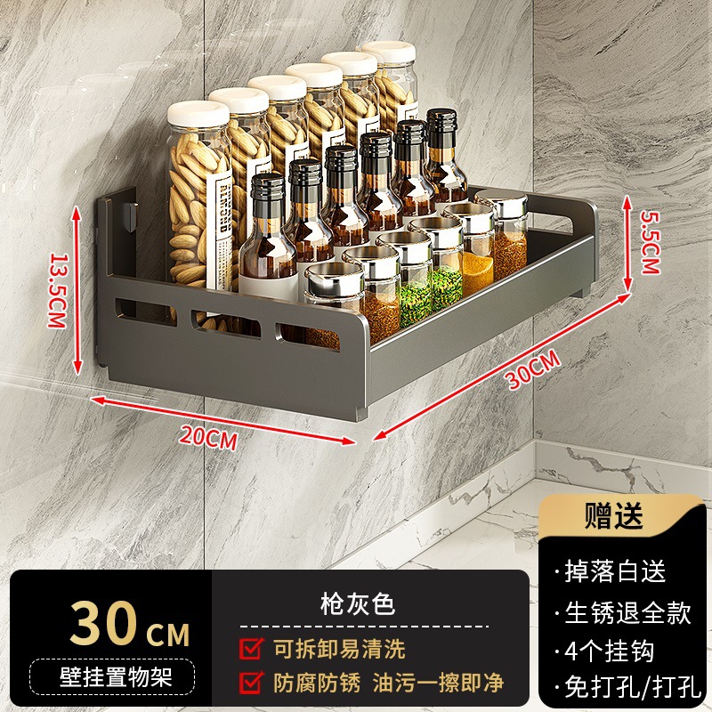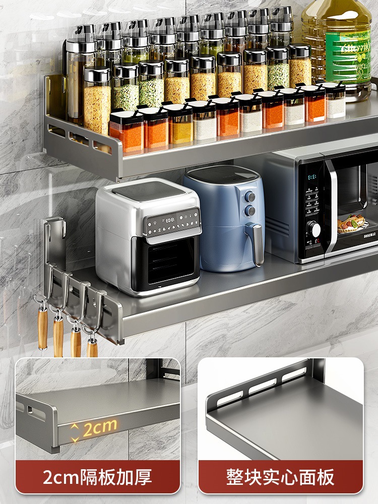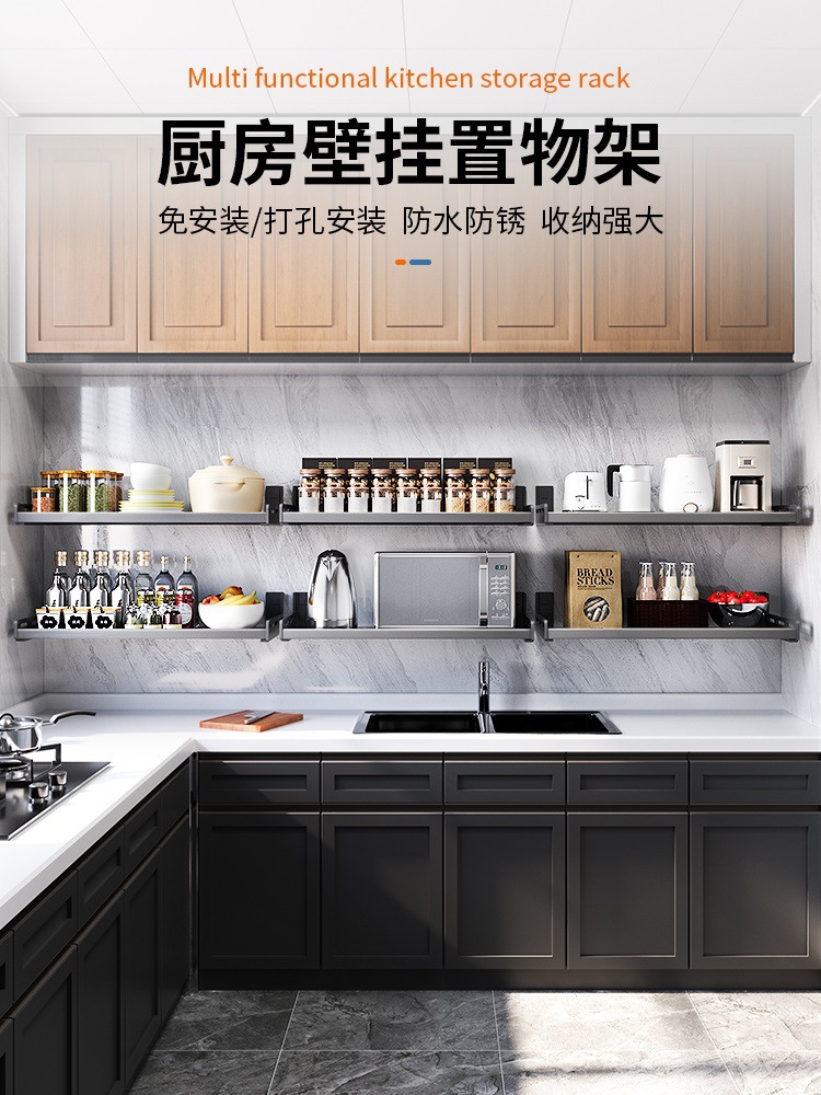 주방 수납 선반, 벽걸이형, 다기능, 벽에 구멍을 뚫을 필요 없음, 전자레인지, 밥솥, 조미료 수납 선반