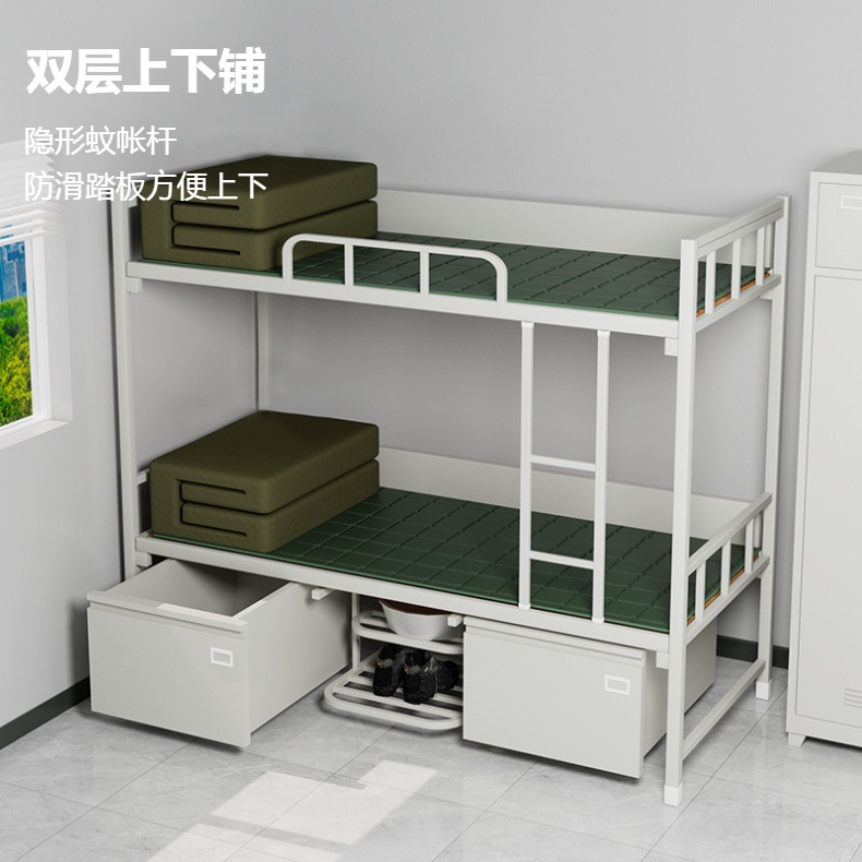 직원용 기성 침대 2종, 기숙사, 수납장, 신발장이 있는 깔끔한 2층 침대, 기성 싱글 침대