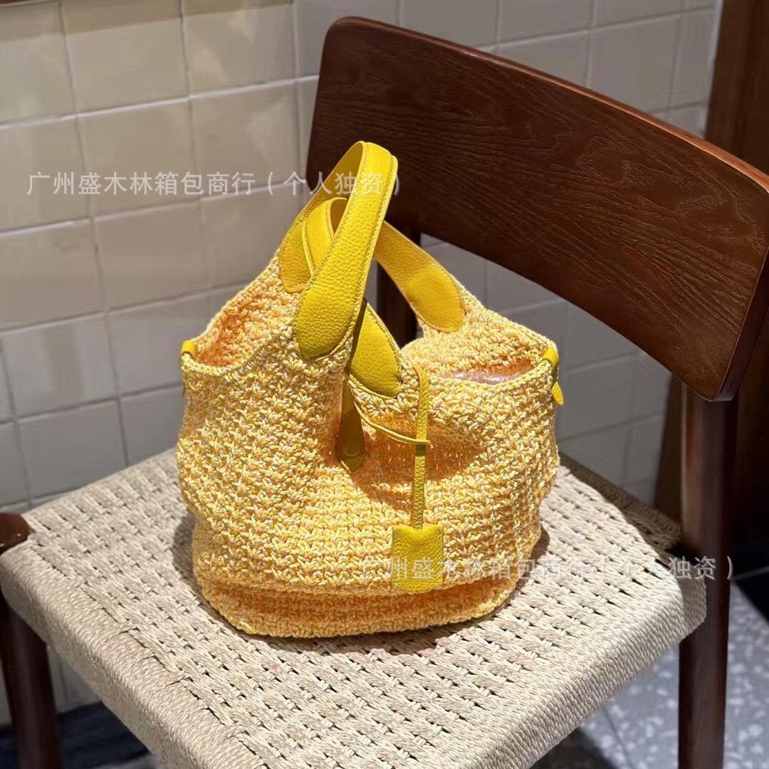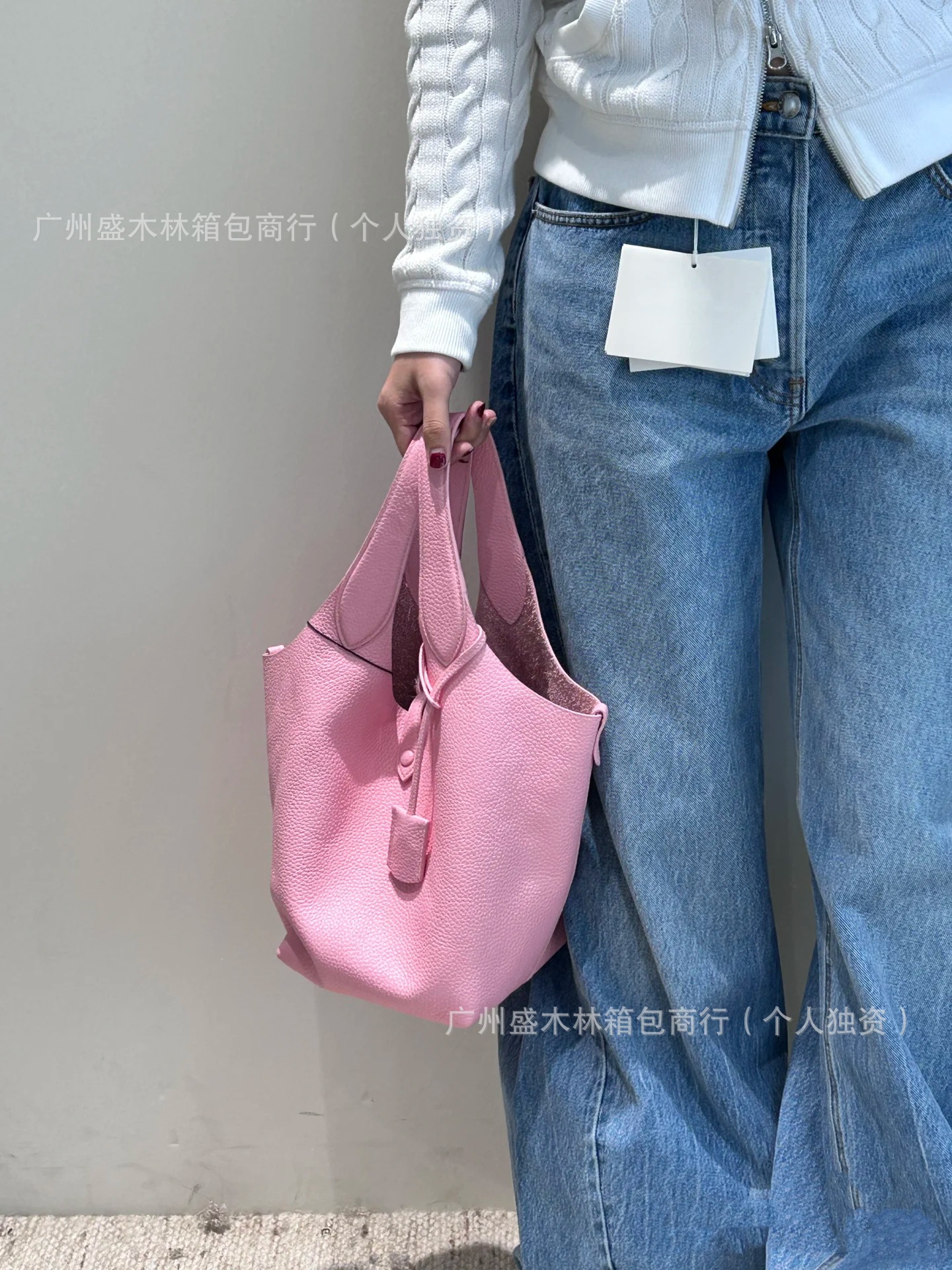 크로스보더 2025 러프바구니 올드머니 스타일 버킷백 1층 소가죽 휴대용 숄더 크로스바디 여성용 가방 [버전]
