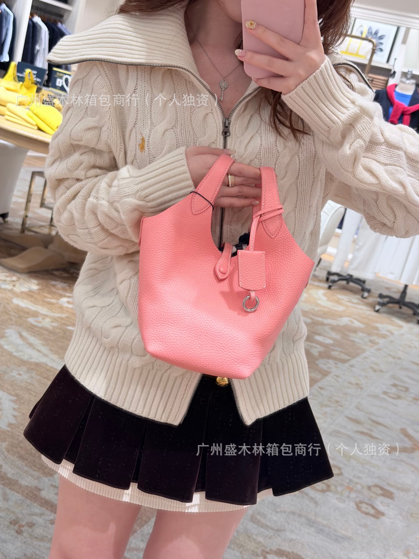 크로스보더 2025 러프바구니 올드머니 스타일 버킷백 1층 소가죽 휴대용 숄더 크로스바디 여성용 가방 [버전]스토어 가기