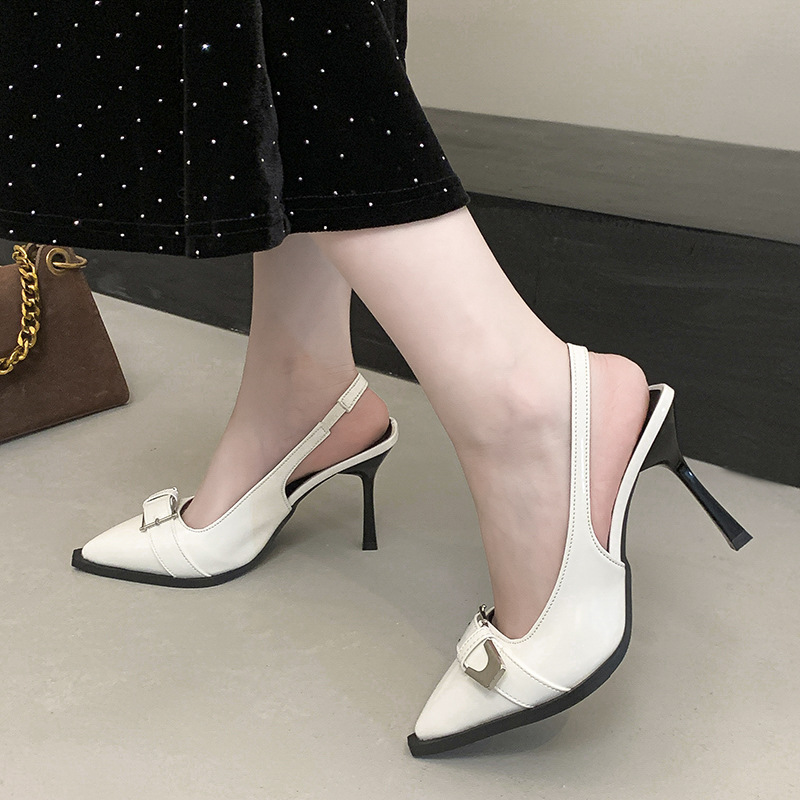 2025년 여름 신상 한국식 스틸레토힐, 앞코가 빈 샌들, 뒷끈, 뾰족코 스틸레토힐 샌들