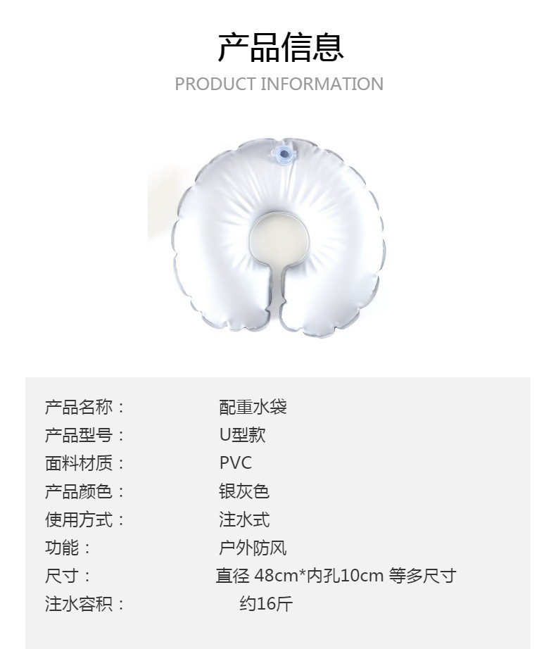 • U자형/직경 50cm, 내부 구멍 10cm(물 주입량 약 8kg )