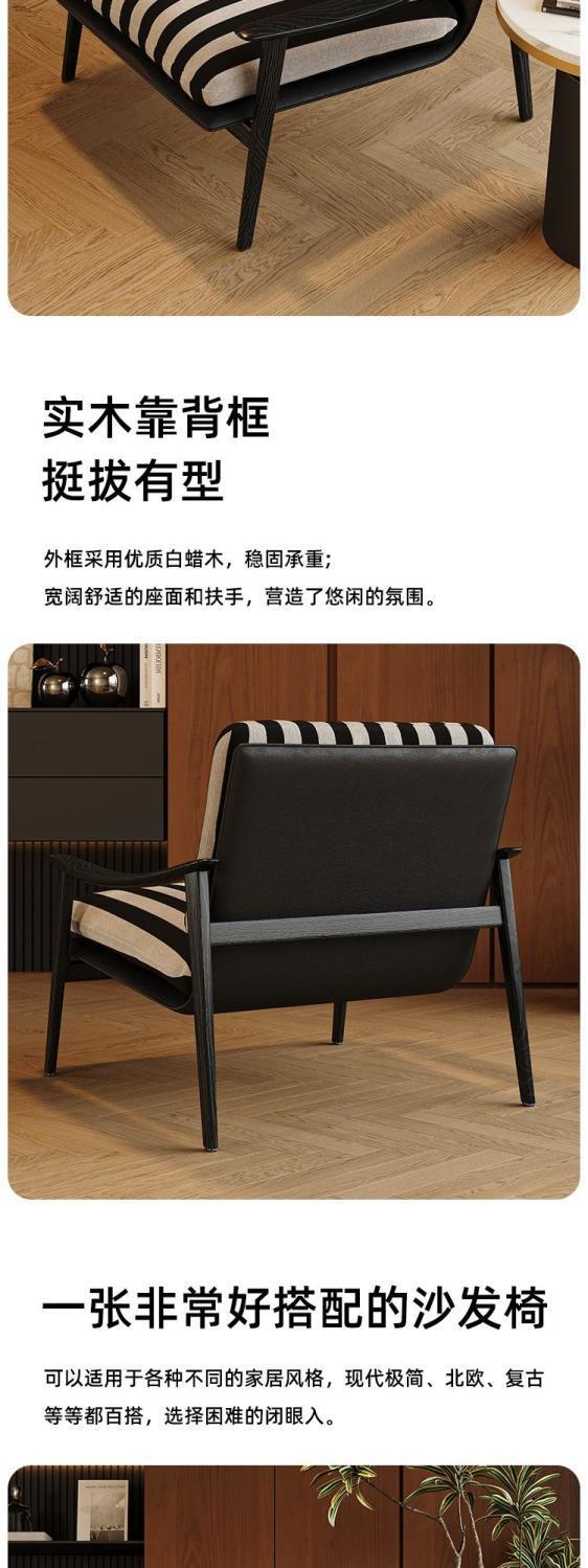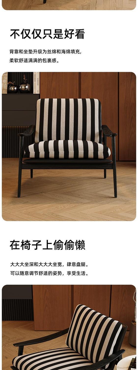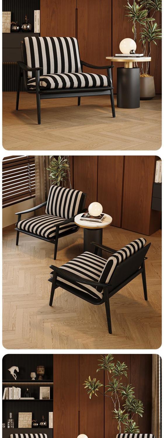 중세 스타일 줄무늬 싱글 소파 의자 단단한 나무 현대 복고풍 프랑스 거실 B&B 발코니 디자이너 레저 의자