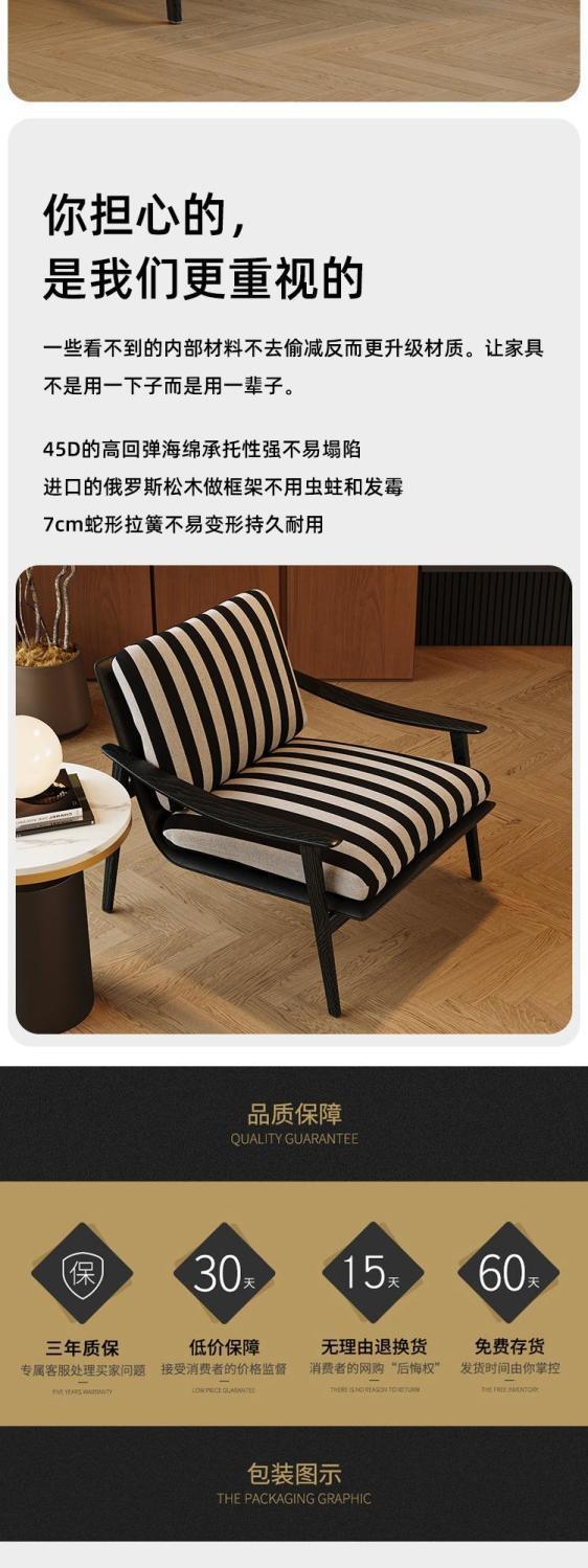 중세 스타일 줄무늬 싱글 소파 의자 단단한 나무 현대 복고풍 프랑스 거실 B&B 발코니 디자이너 레저 의자스토어 가기