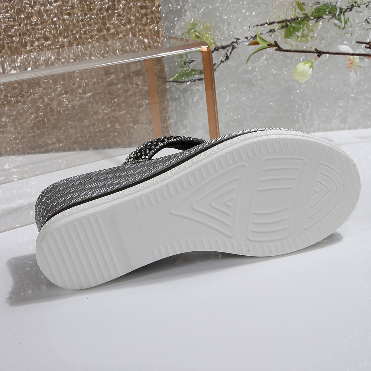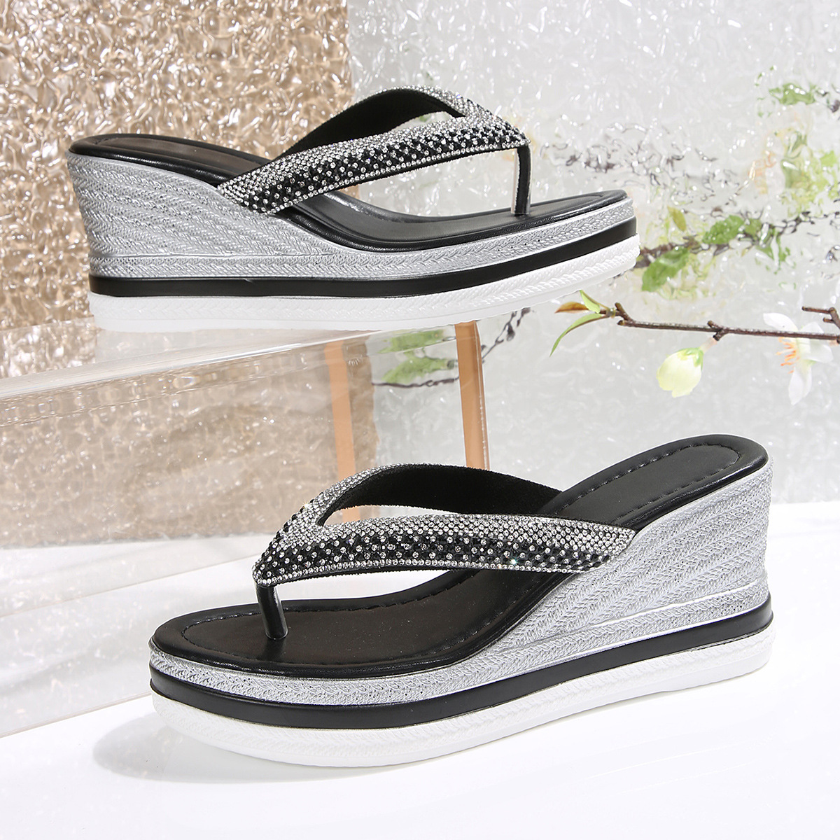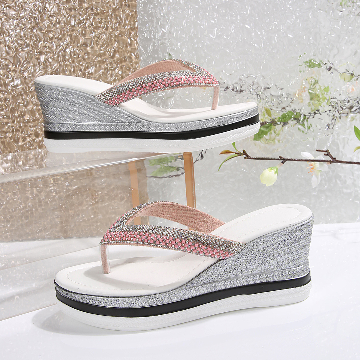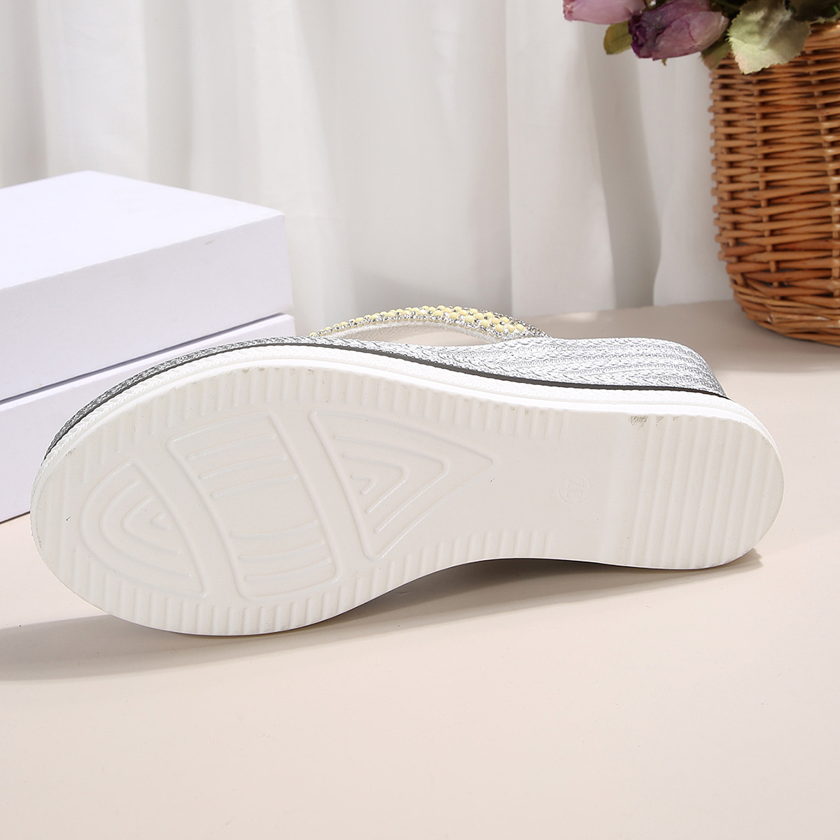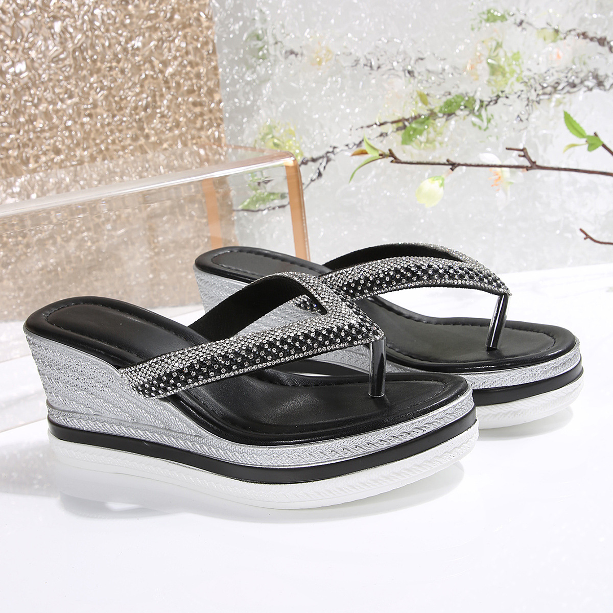 국경 간 2025 대외 무역 새로운 단색 헤링본 유럽과 미국 스타일의 대형 여성 라운드 발가락 두꺼운 밑창 웨지 샌들