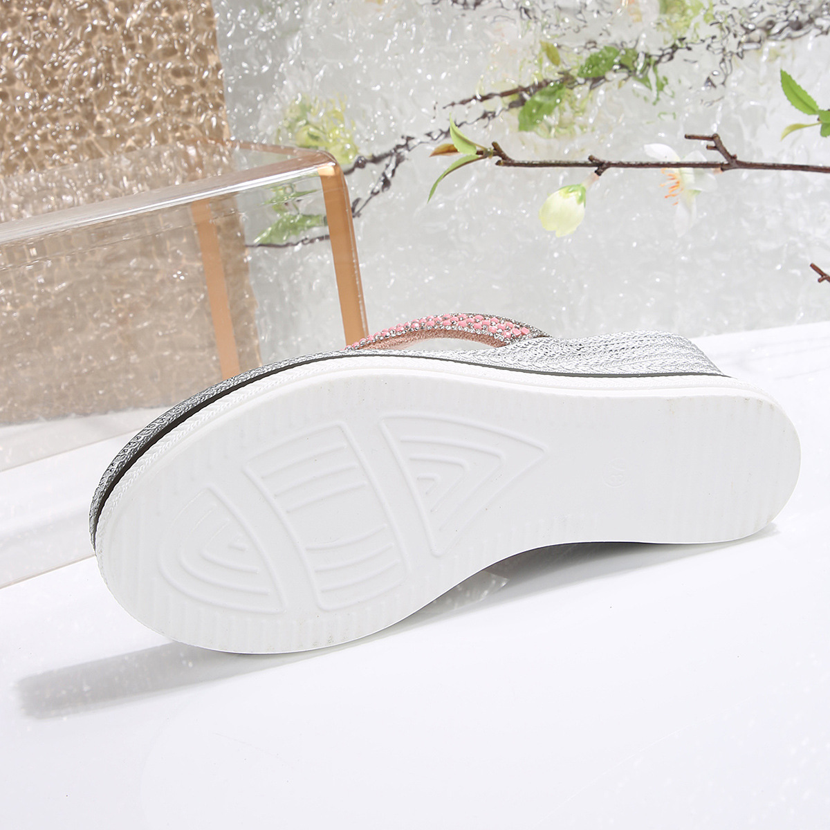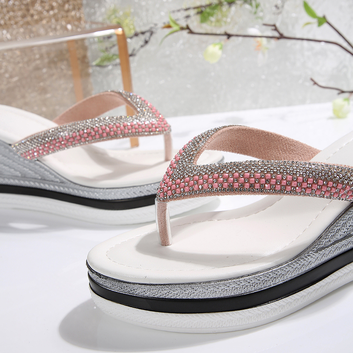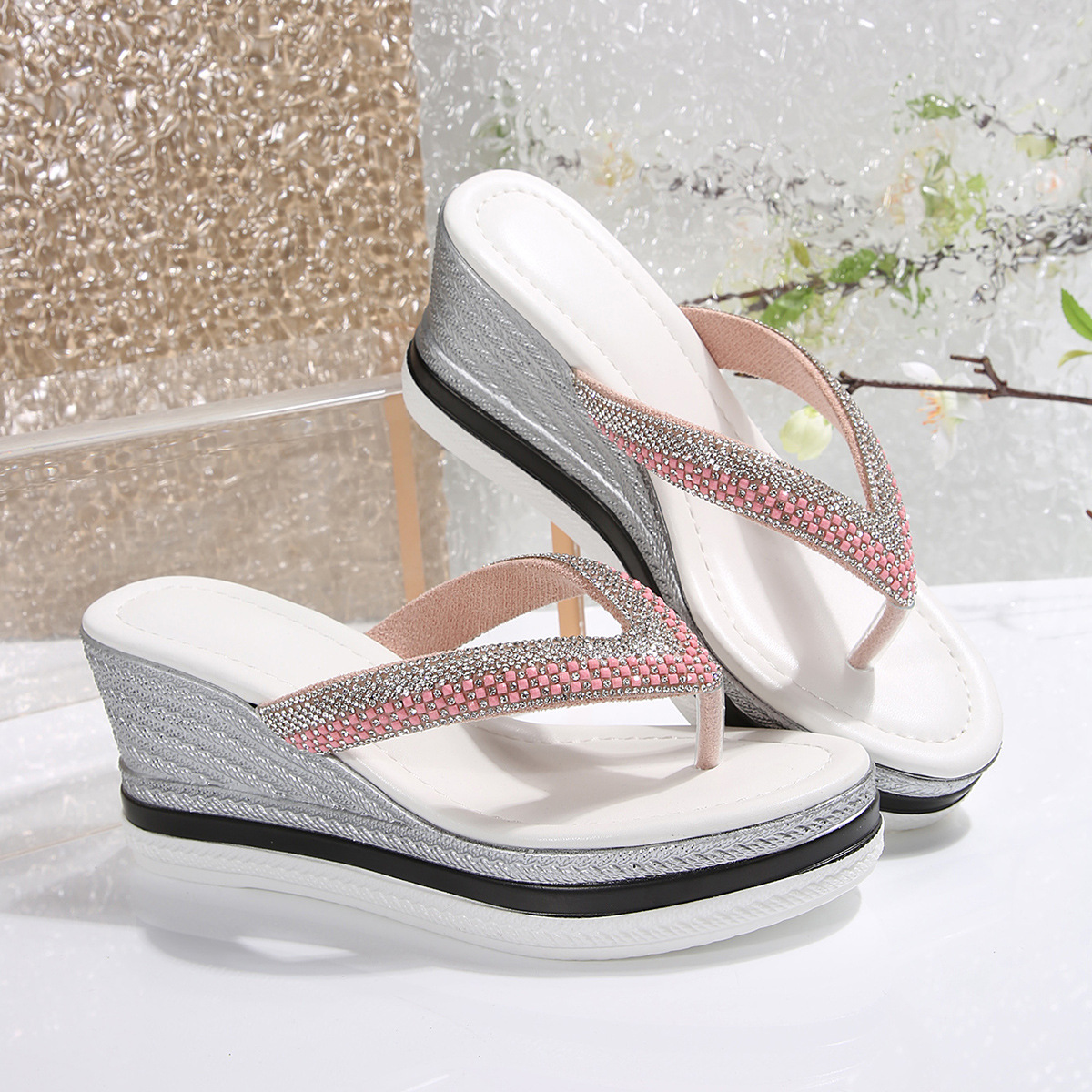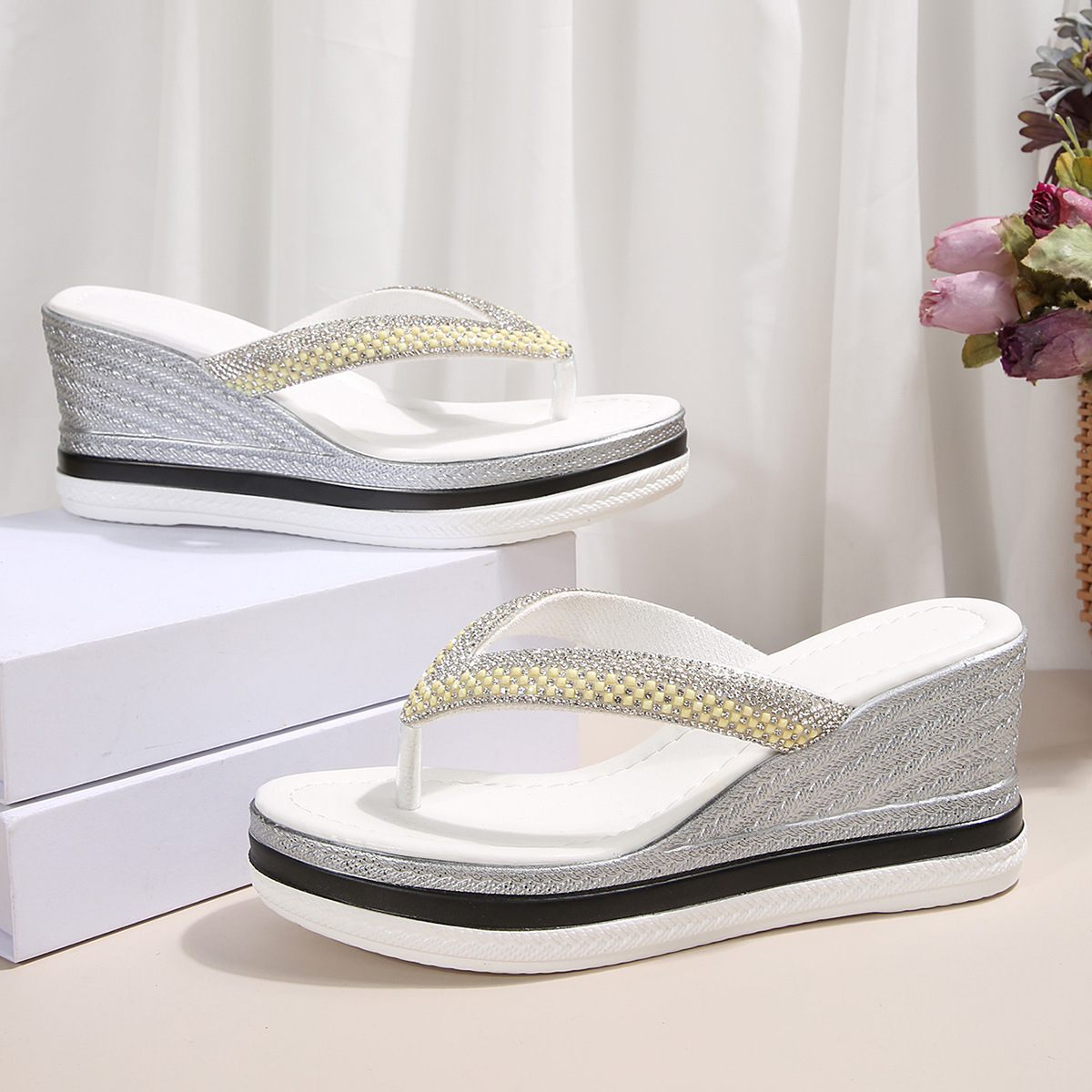 국경 간 2025 대외 무역 새로운 단색 헤링본 유럽과 미국 스타일의 대형 여성 라운드 발가락 두꺼운 밑창 웨지 샌들