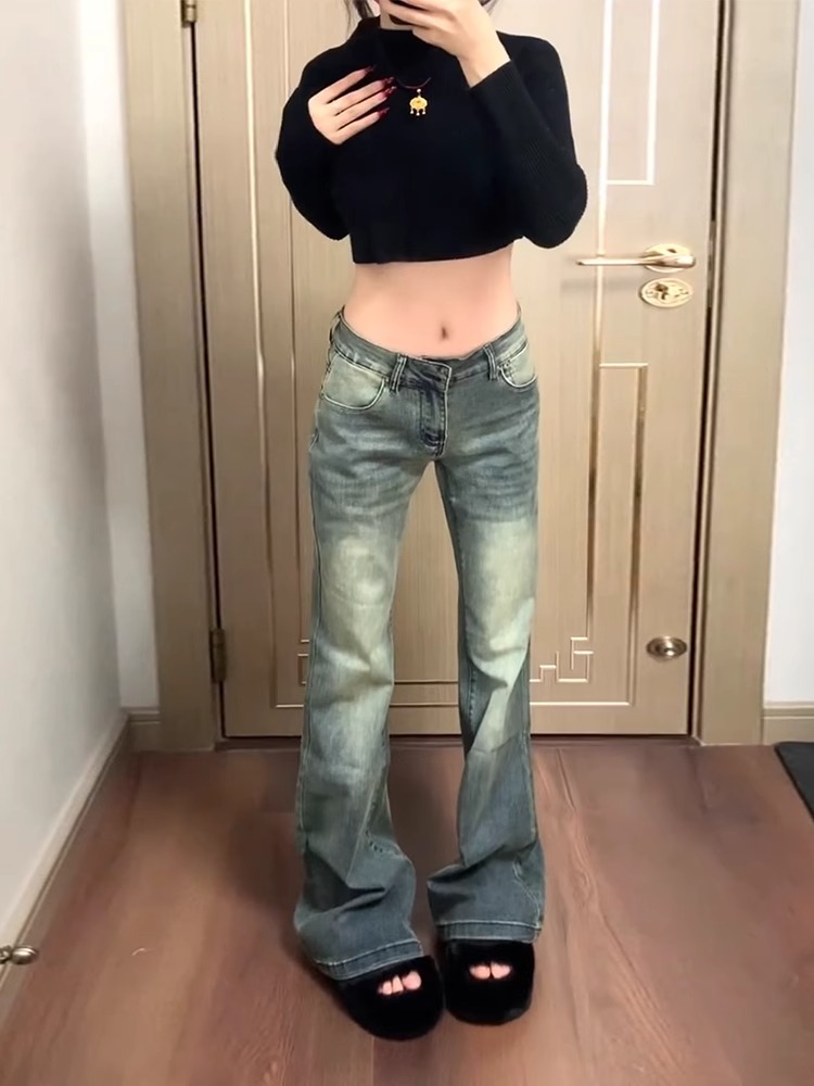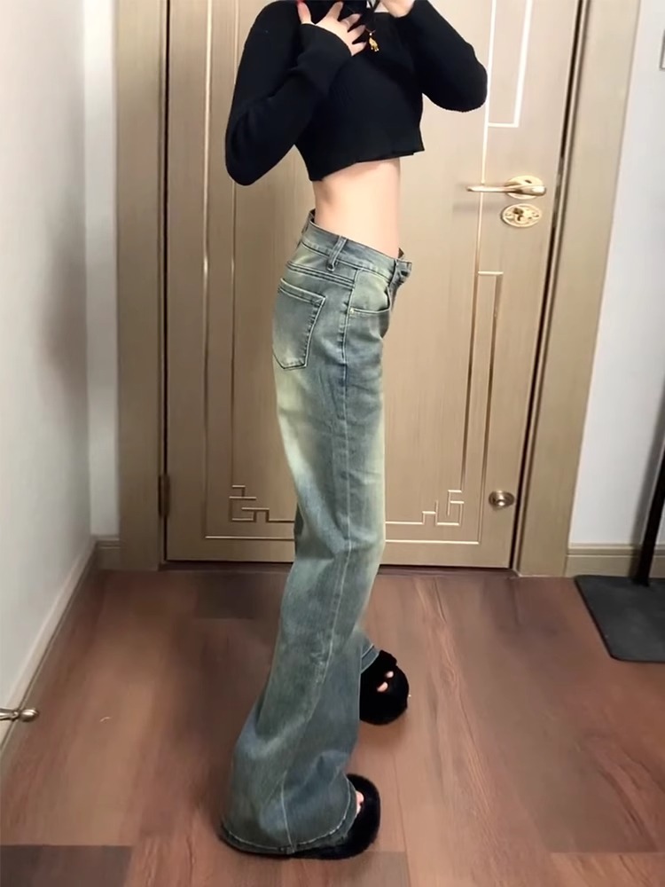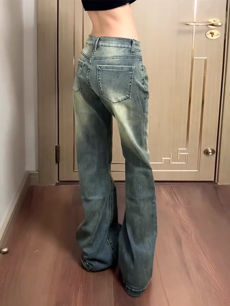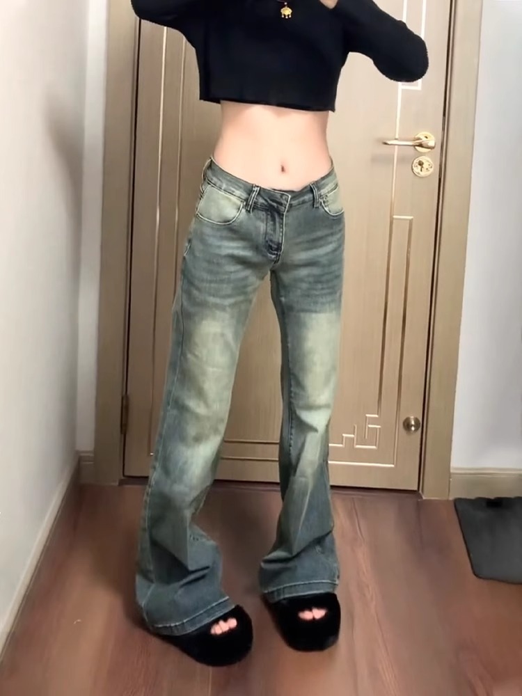 봄 여름 여성용 아메리칸 레트로 핫걸 로우 웨이스트 부츠컷 청바지 플러스 사이즈 하이 웨이스트 슬리밍 스트레치 플레어 팬츠스토어 가기