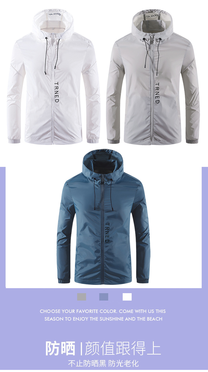 무료 배송 얇은 후드 자외선 차단 의류 남성 여름 자외선 차단 의류 지퍼 카디건 긴팔 피부 의류 느슨하고 다재다능한스토어 가기