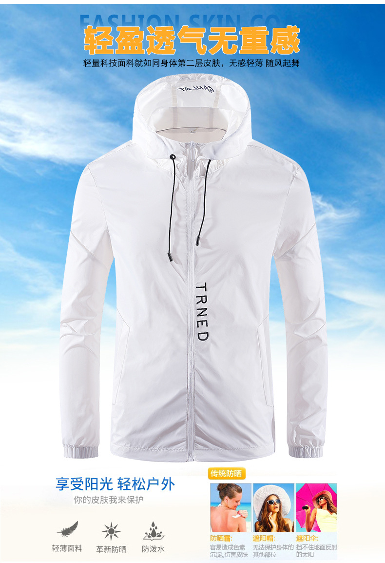 무료 배송 얇은 후드 자외선 차단 의류 남성 여름 자외선 차단 의류 지퍼 카디건 긴팔 피부 의류 느슨하고 다재다능한