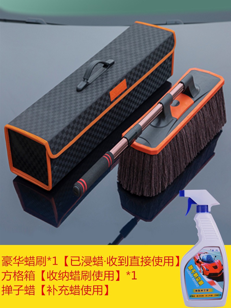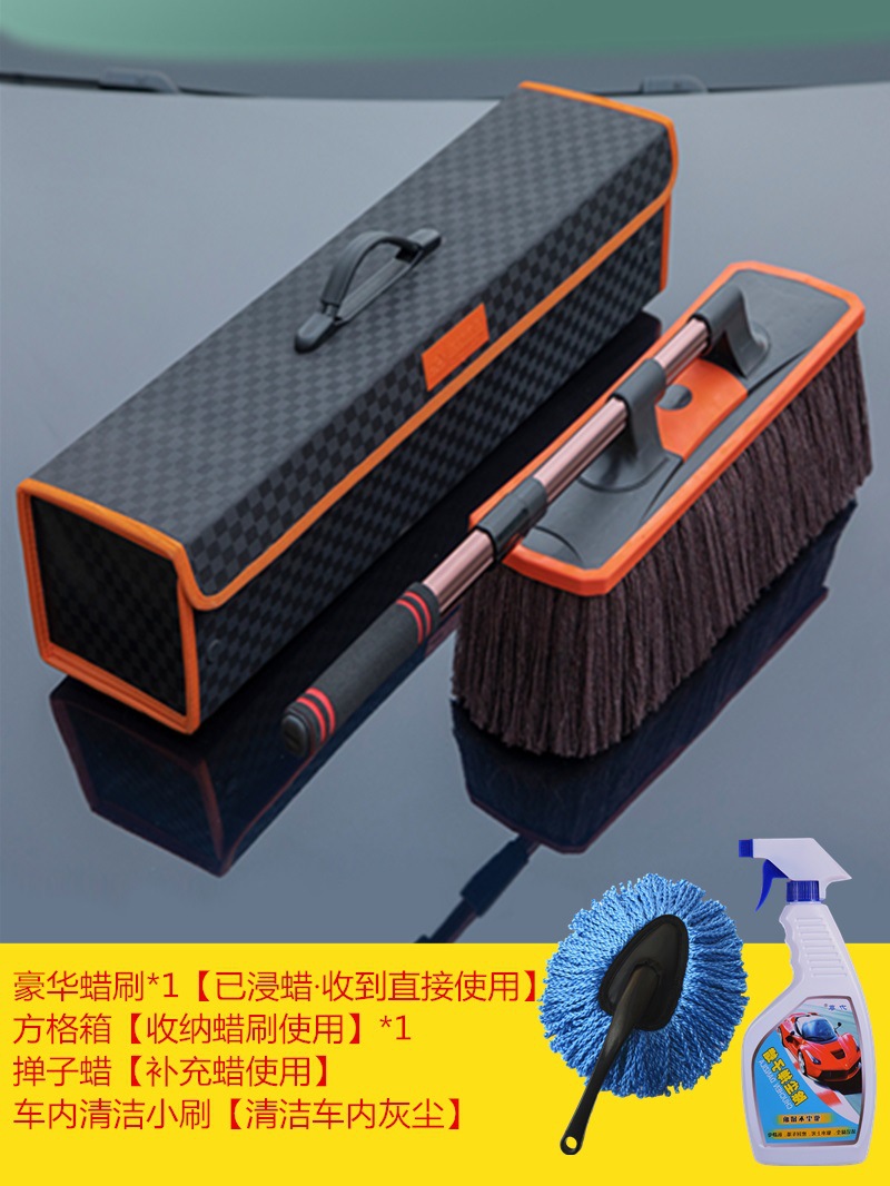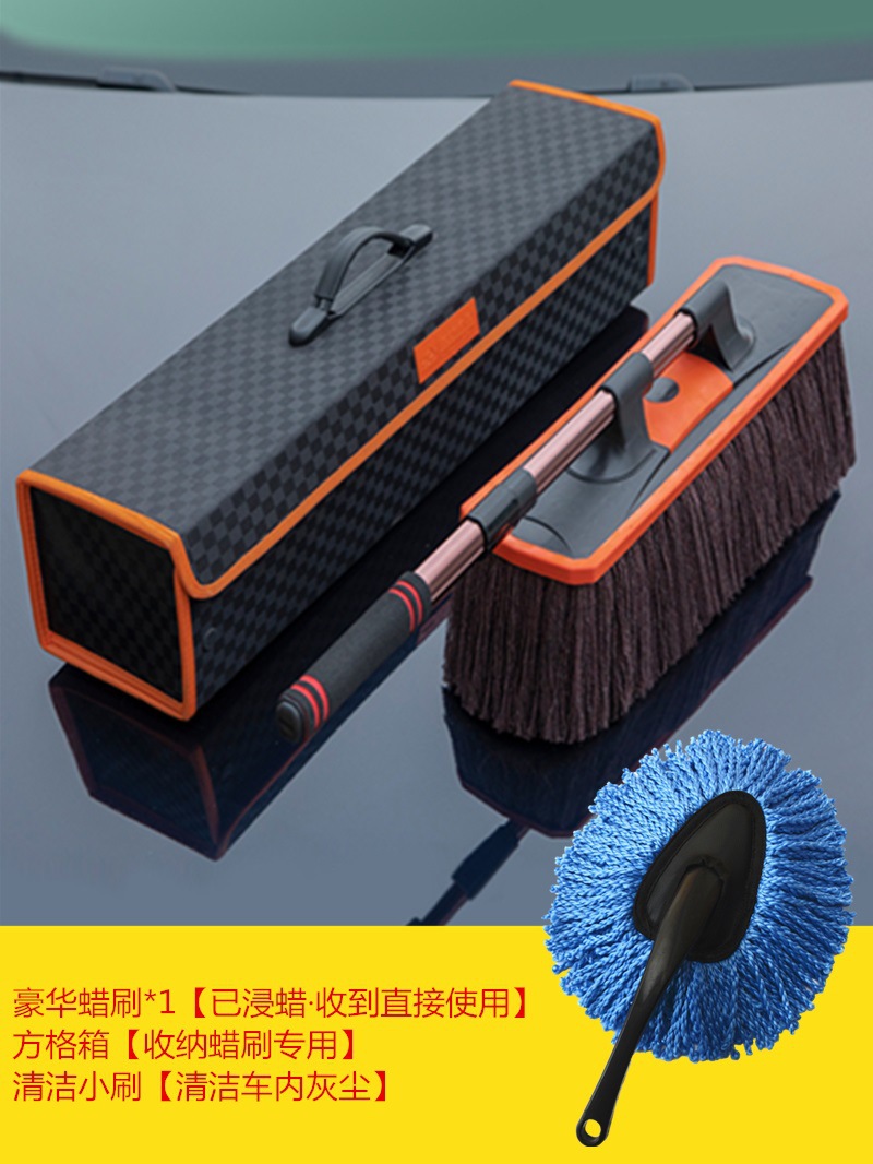 • 고급 먼지떨이 왁스 브러쉬 [브러쉬 헤드 20% 확대] + 미니 브러쉬 + 먼지떨이 왁스 + 격자 무늬 케이스✦♜