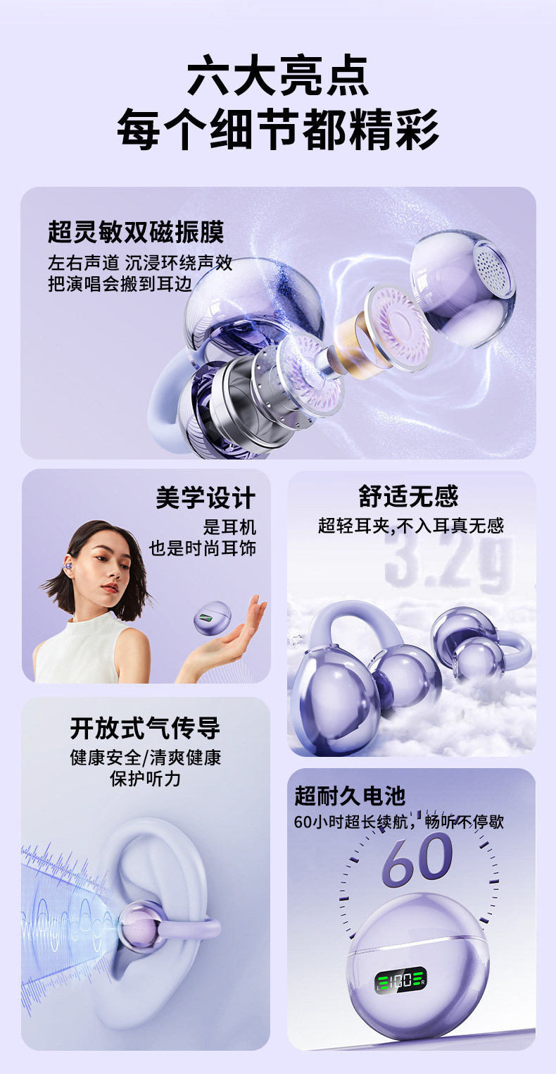오픈형 M79 블루투스 헤드셋 이어 클립형 OWS 공기 전도 오픈형 비인이어 스포츠 헤드셋(남성 및 여성용)스토어 가기