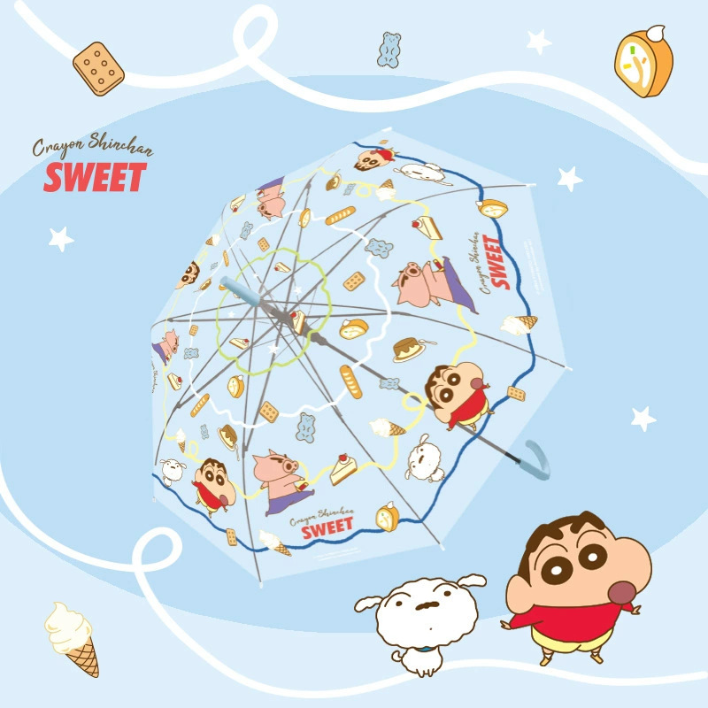 크레용 신짱 투명 우산 직선 긴 손잡이 완전 자동 우산 두꺼운 남성과 여성 어린이 학생 접는 우산 만화 우산스토어 가기