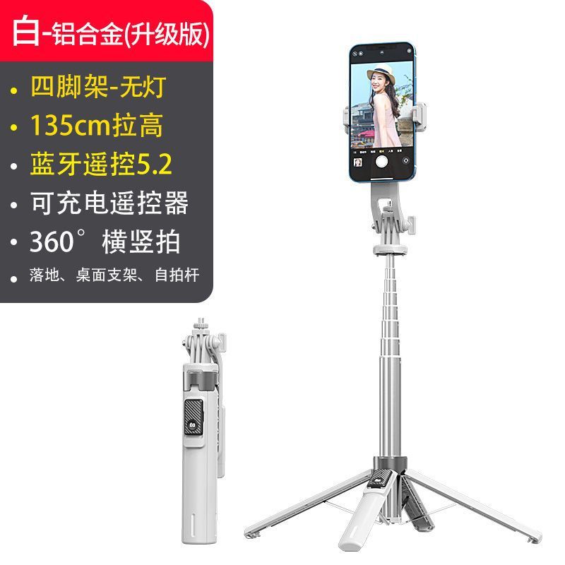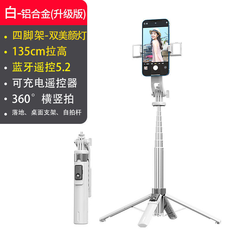 • [화이트] 리모콘 일체형 셀카 스탠드 - [업그레이드 1.35] 알루미늄 합금 듀얼 필라이트 + 틱톡 촬영