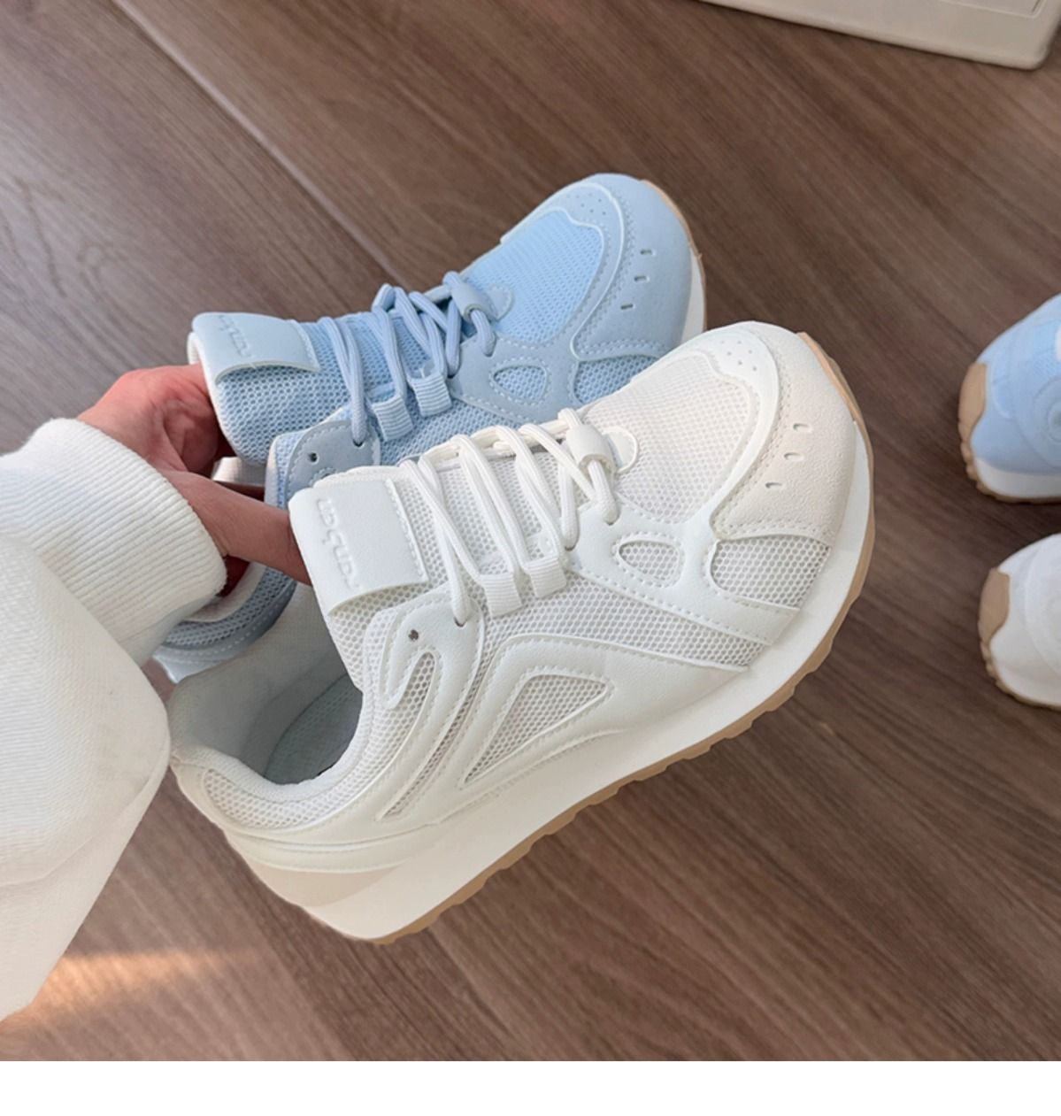 여성을위한 델 트레이닝 슈즈 2025 여름 새로운 두꺼운 밑창 다목적 캐주얼 통기성 높이 증가 스포츠 아빠 신발 스포츠 포레스트 검프 신발스토어 가기