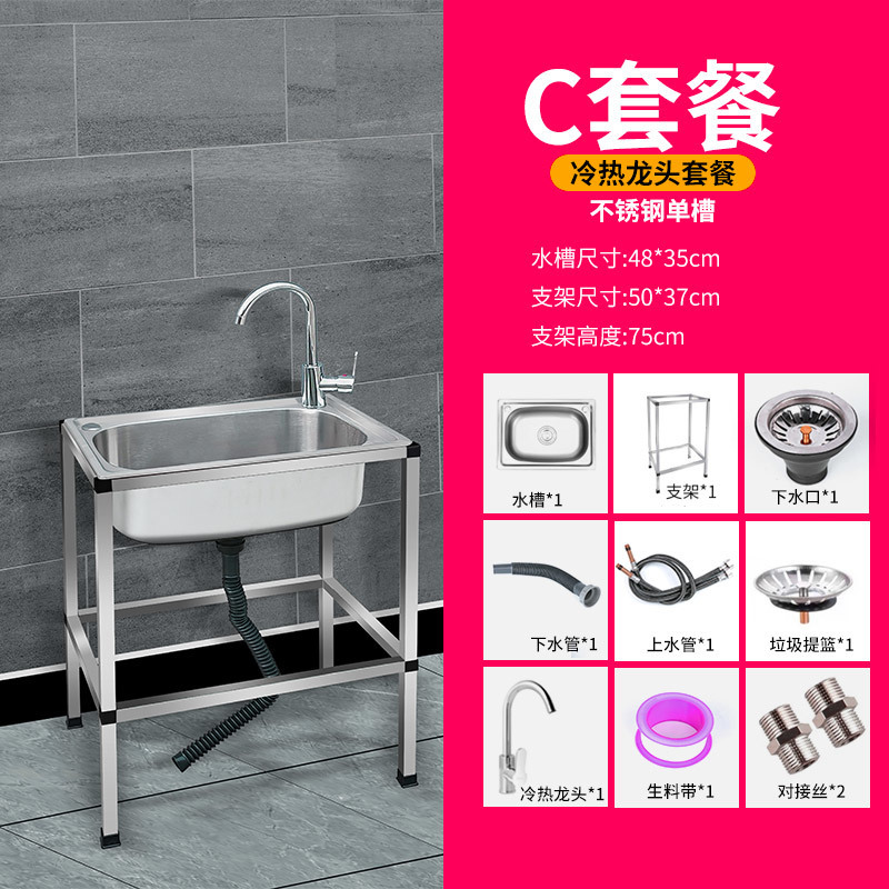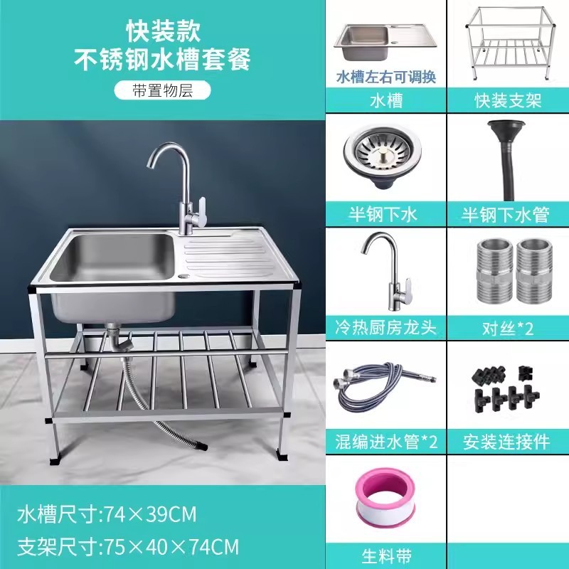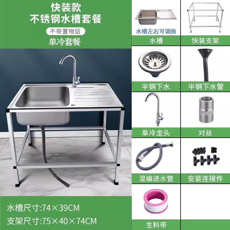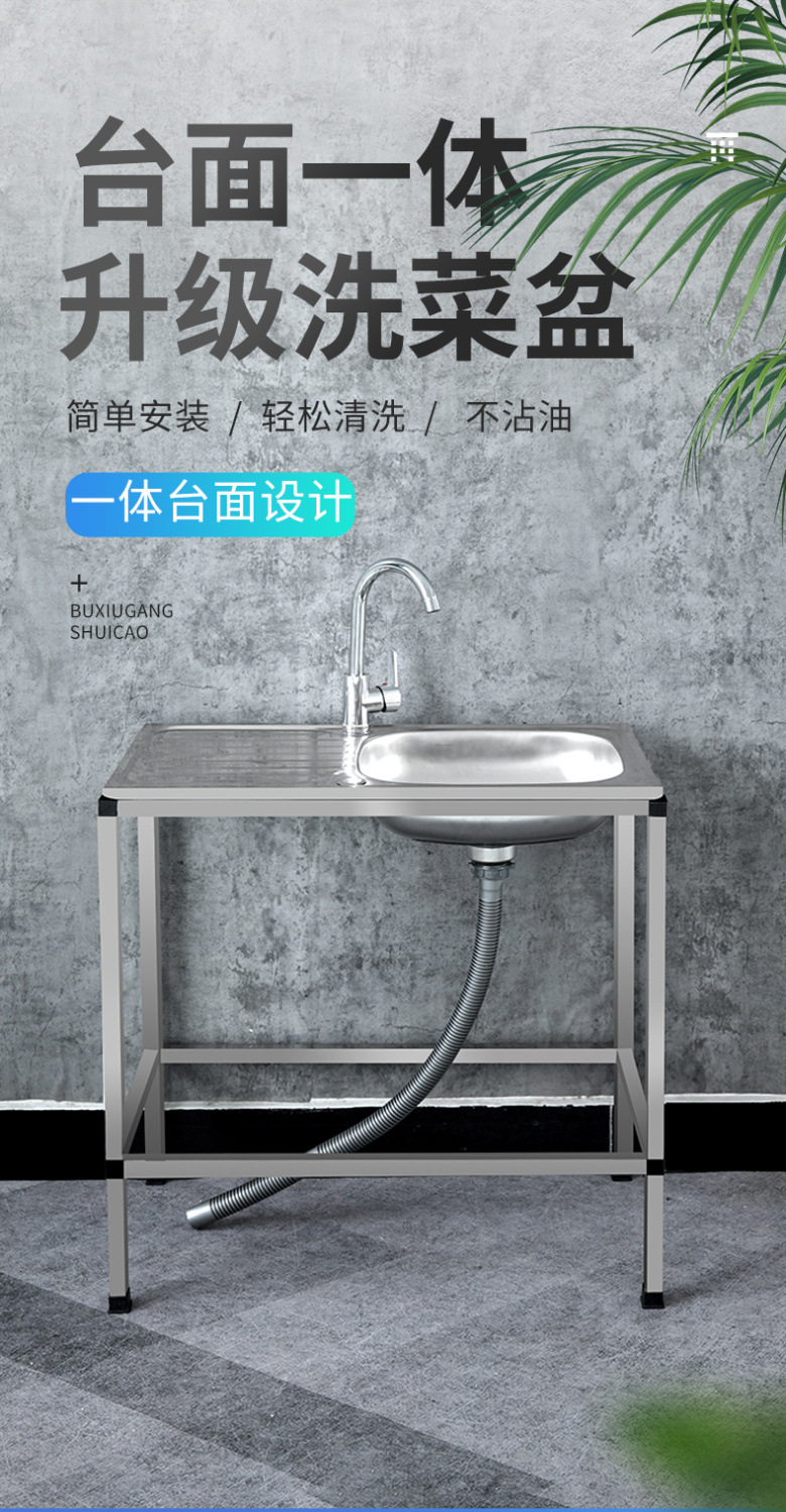 주방 스테인레스 스틸 심플 바닥 스탠드 싱글 싱크대 싱크대 일체형 조작 상판스토어 가기