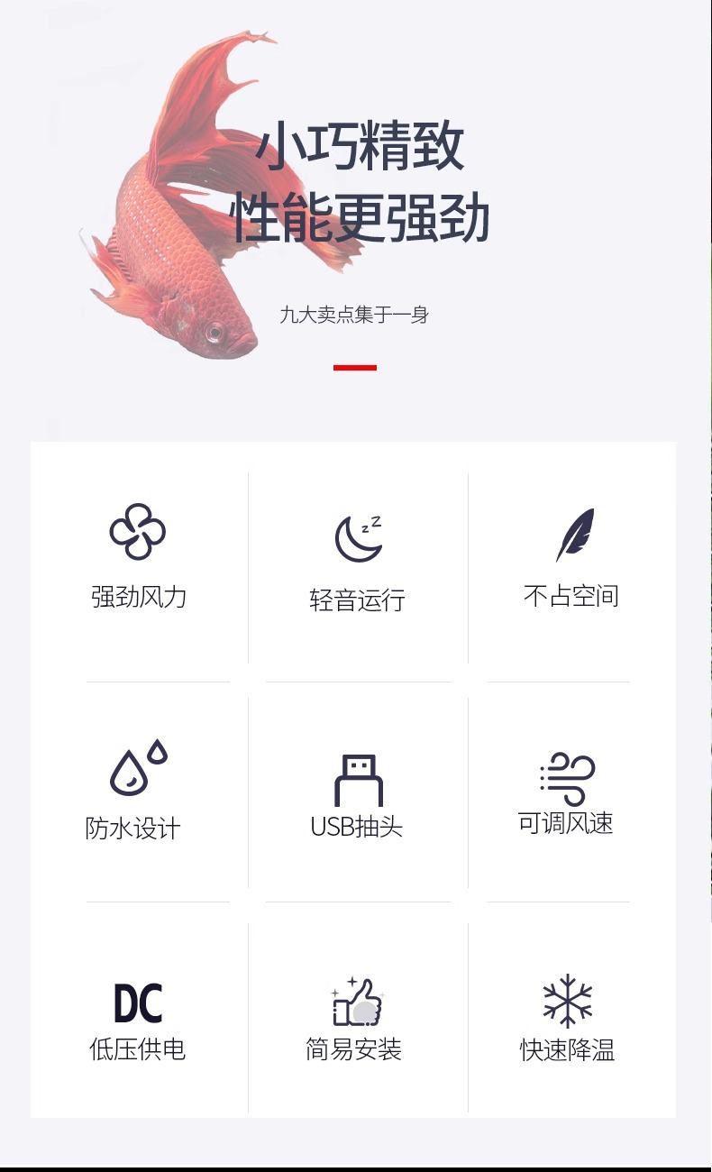 물고기 탱크, 거북이 탱크, 수생 식물 냉각 팬, 수족관 냉각기, 냉각 막대, 강력한 소형 무음 절전 냉각