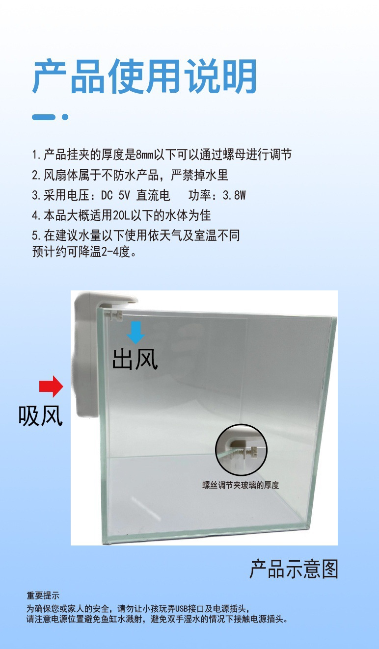 물고기 탱크, 거북이 탱크, 수생 식물 냉각 팬, 수족관 냉각기, 냉각 막대, 강력한 소형 무음 절전 냉각스토어 가기