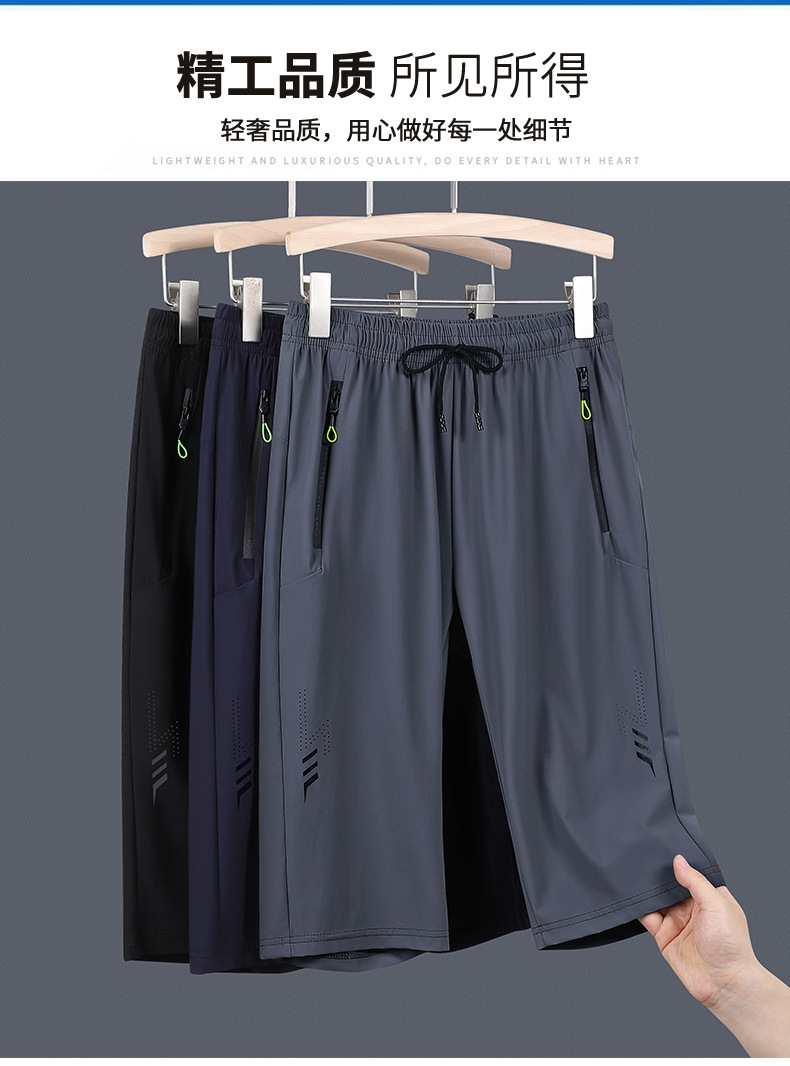 무료 배송 K9988 크롭 팬츠 플러스 사이즈 프린트 남성용 아이스 실크 반바지 크로스 보더 아이스 실크 크롭 팬츠