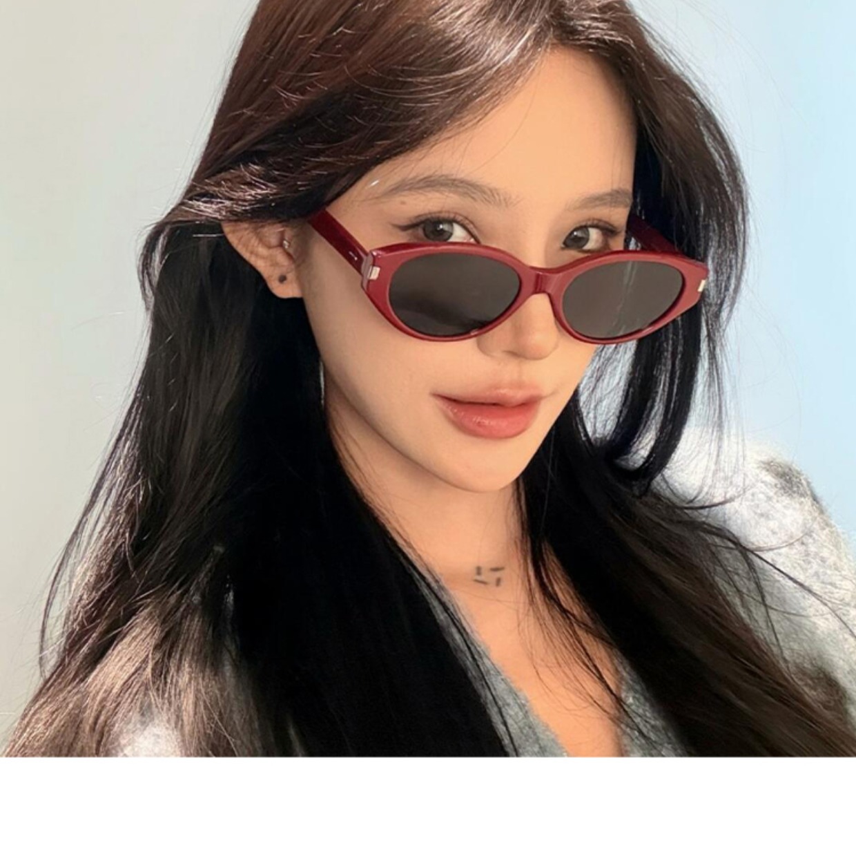 여성을위한 하이 엔드 고양이 눈 선글라스 2025 여름 새로운 복고풍 빨간색 좁은 프레임 패션 작은 얼굴 태양 보호 선글라스스토어 가기