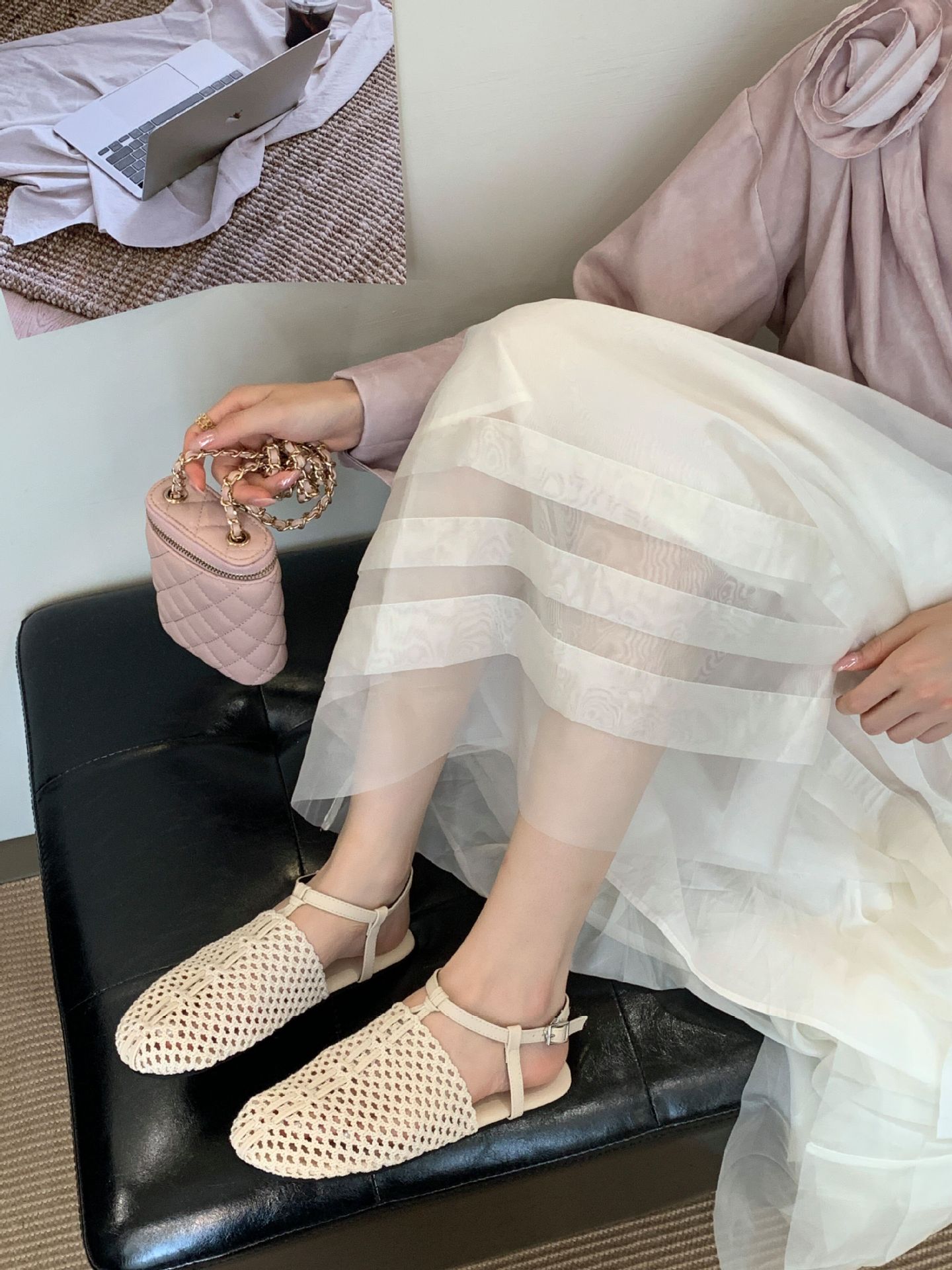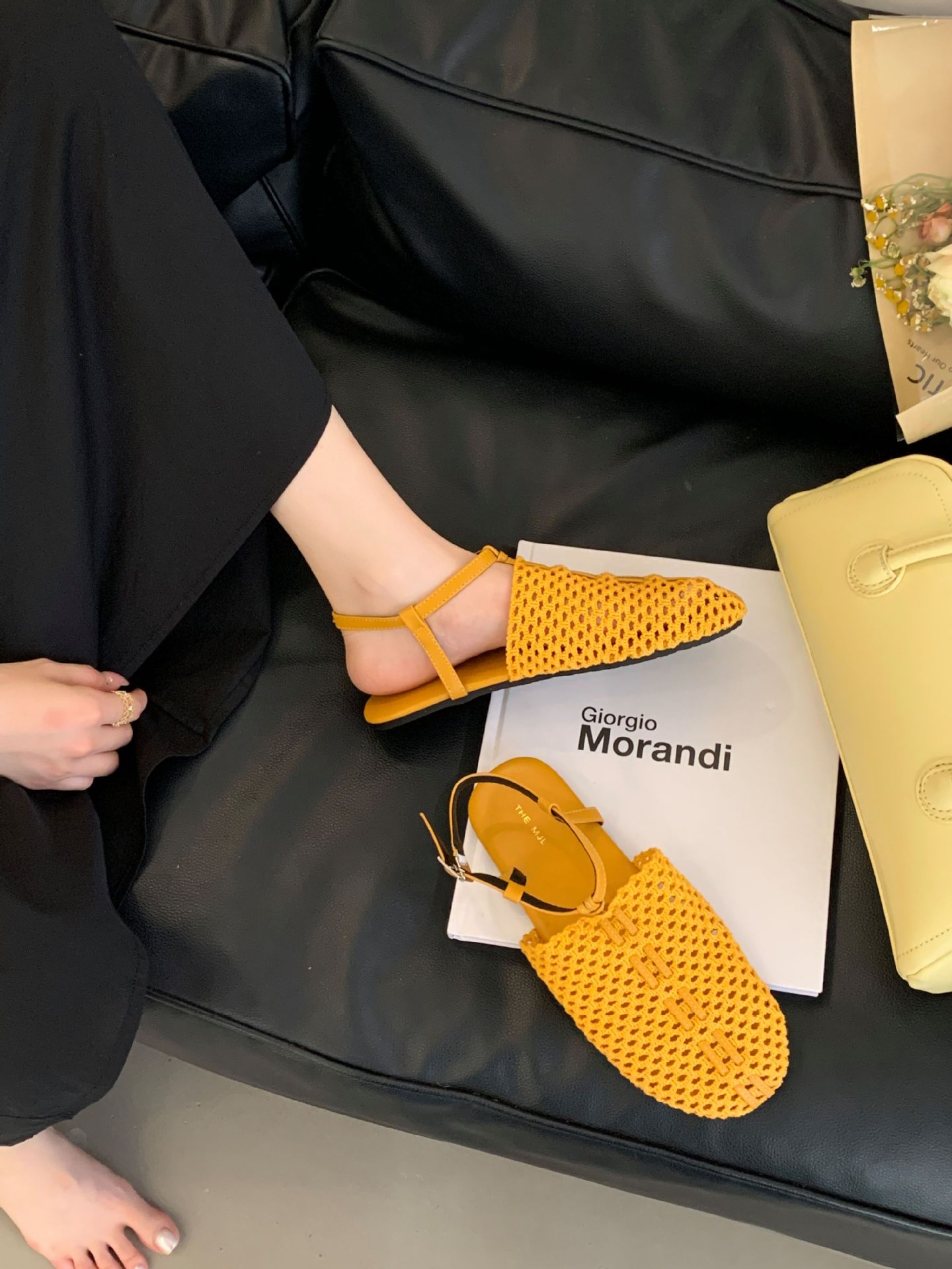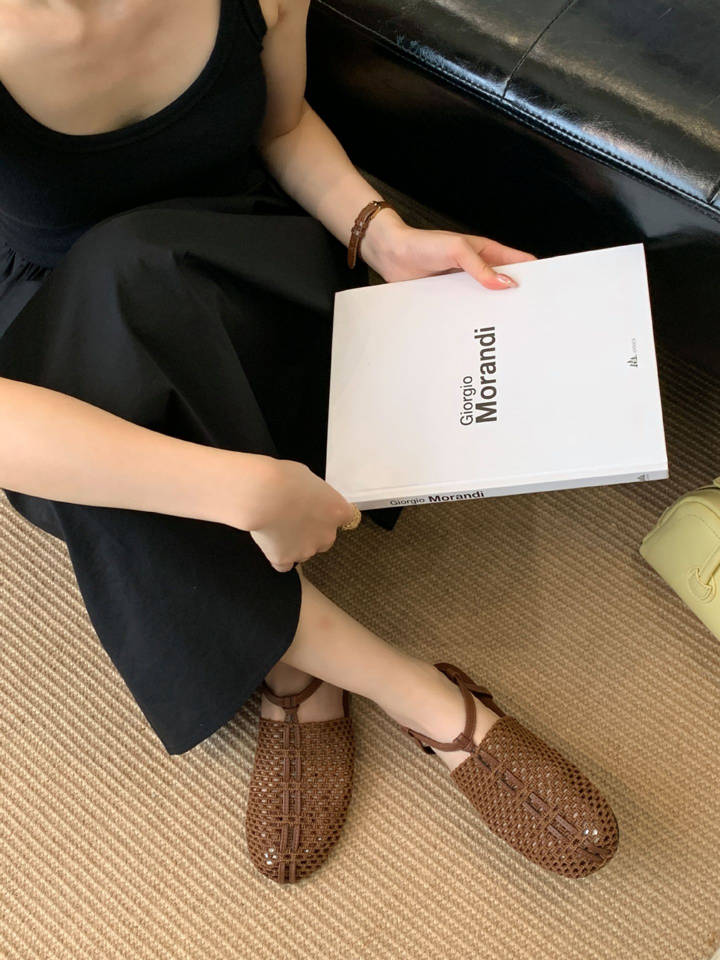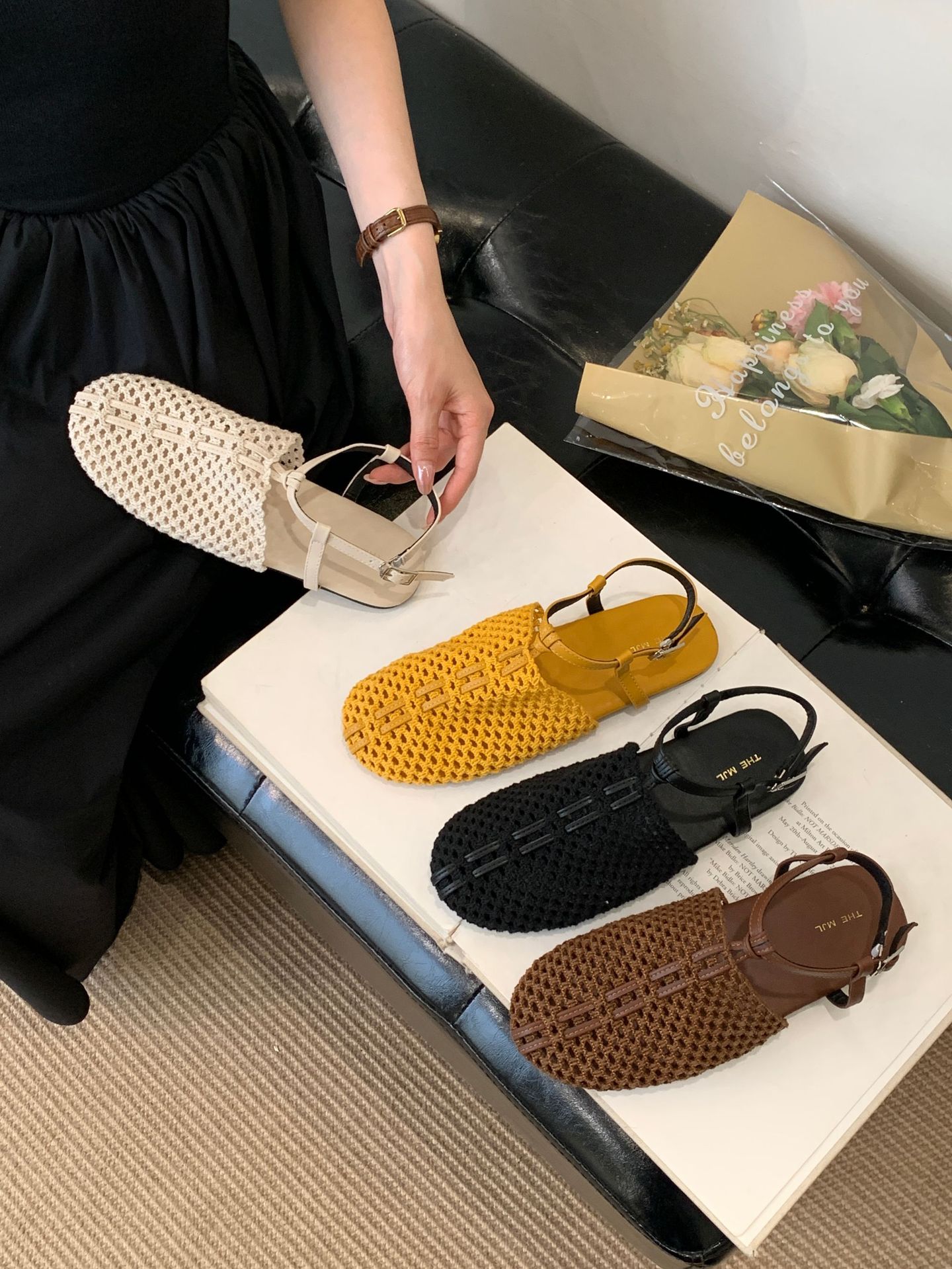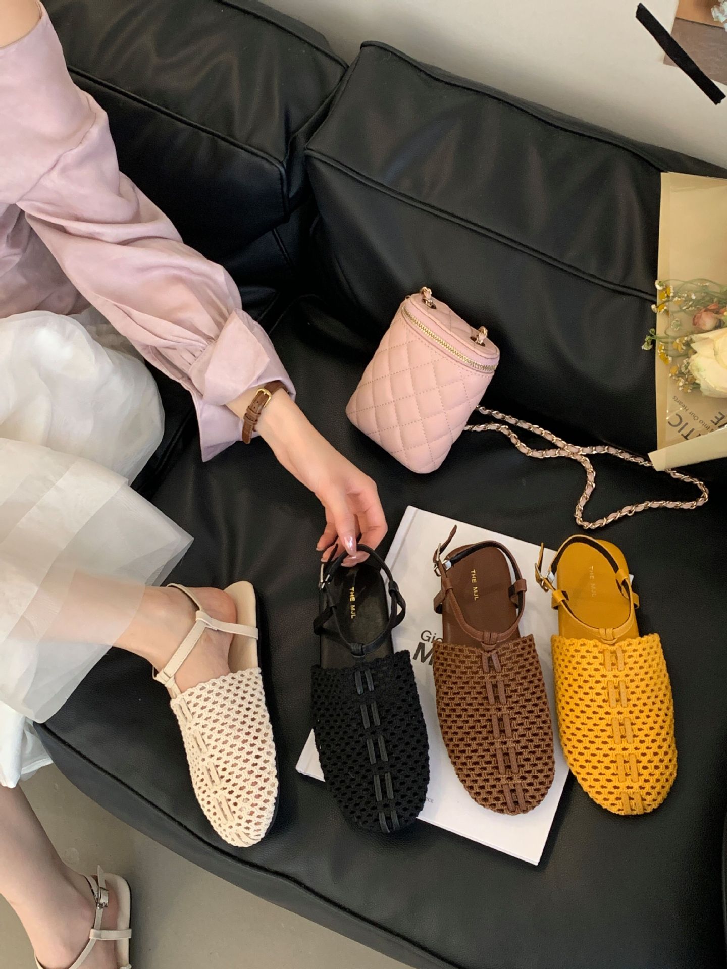 2025 여름 바오터우 플랫 프렌치 여성 아우터 중공 직조 플랫 샌들 통기성과 다재다능한 기질 샌들스토어 가기