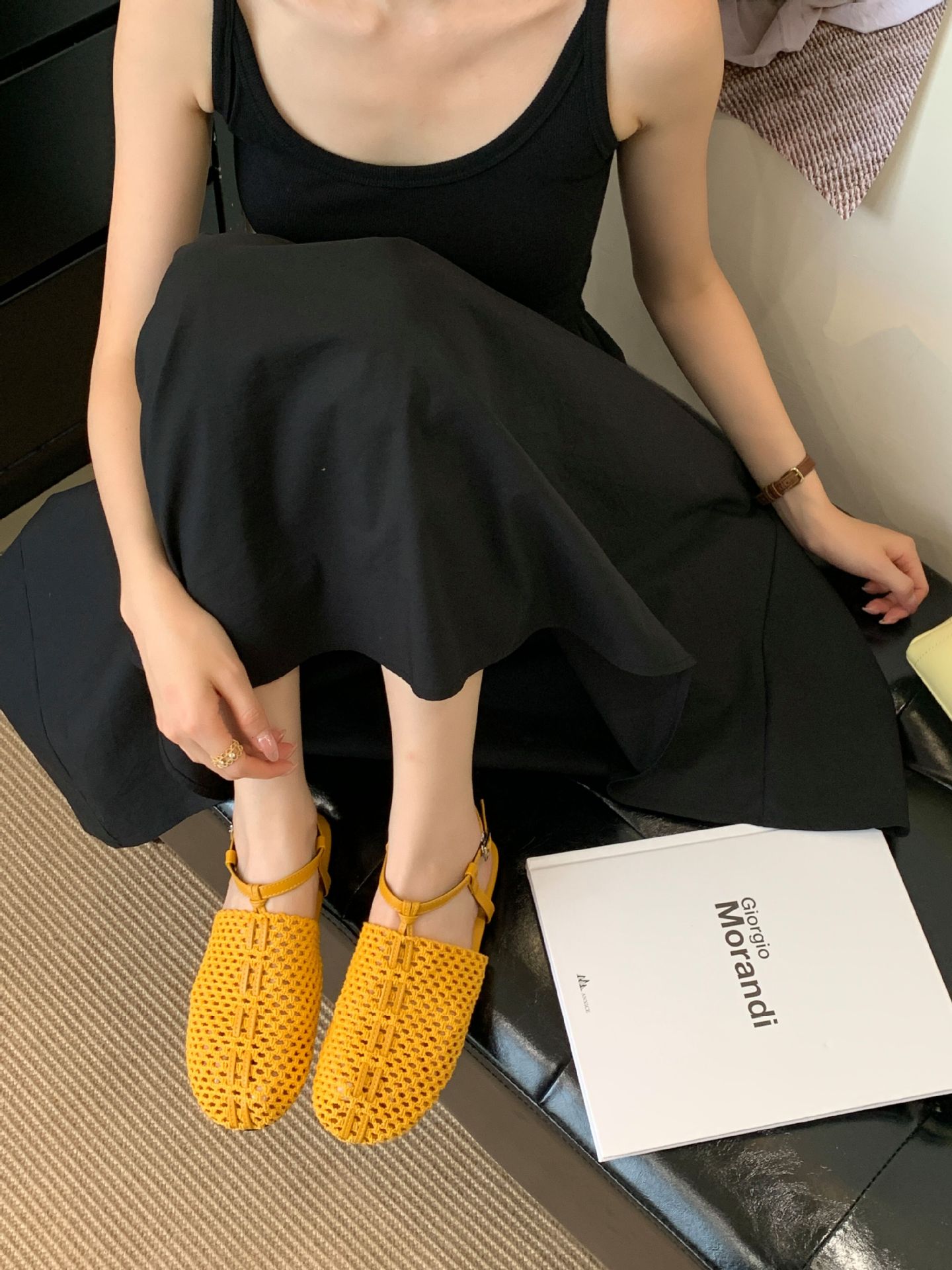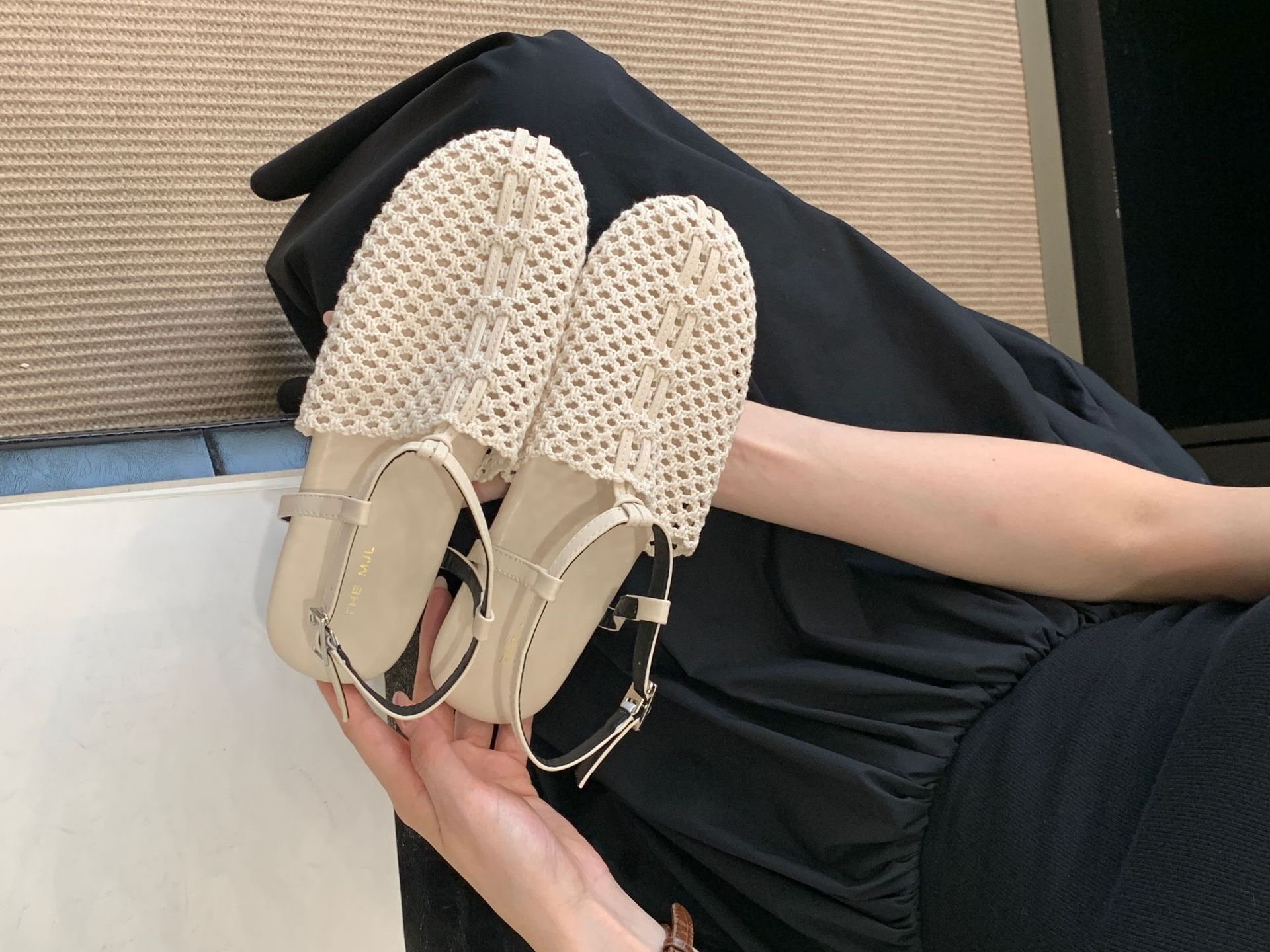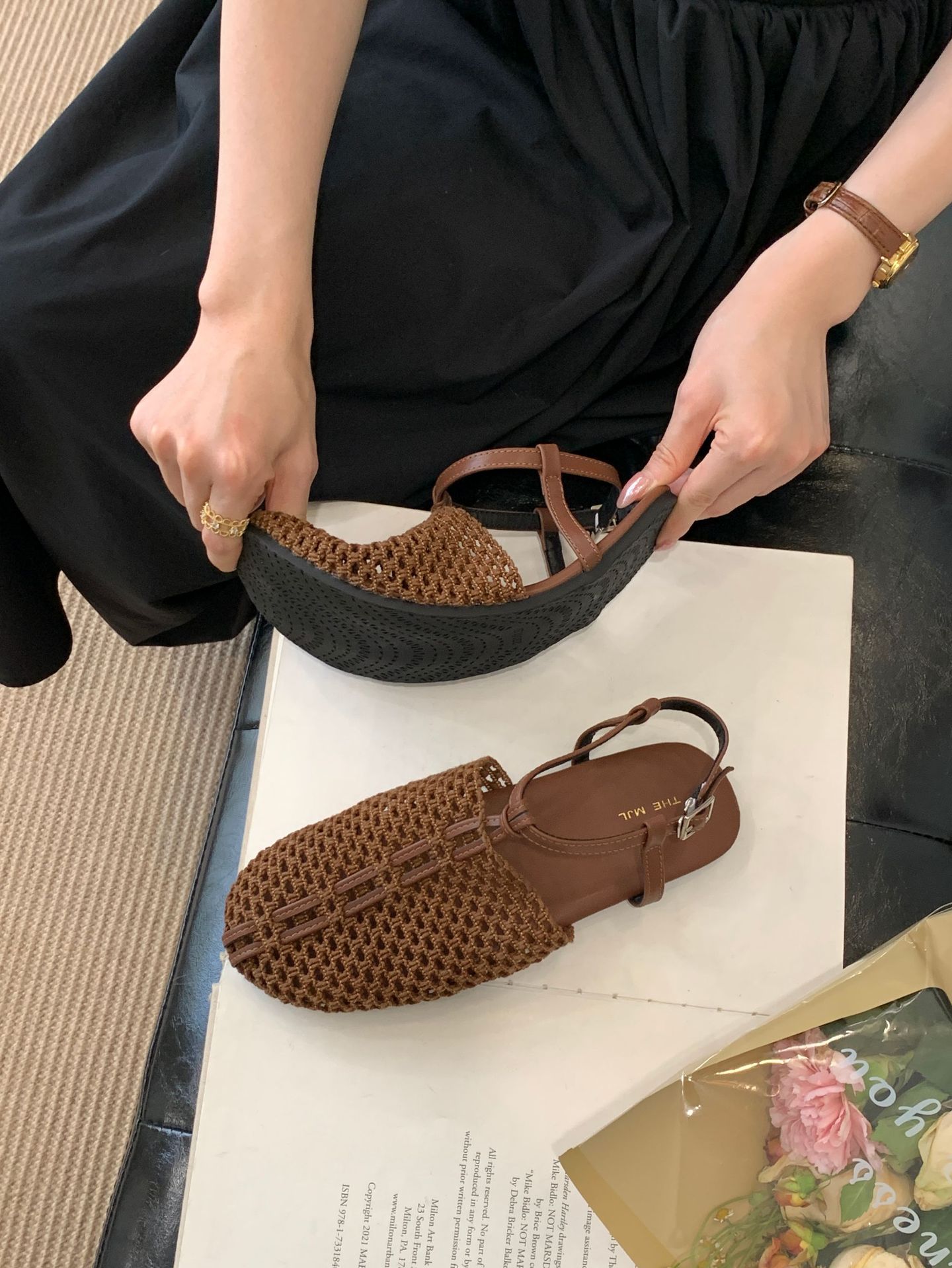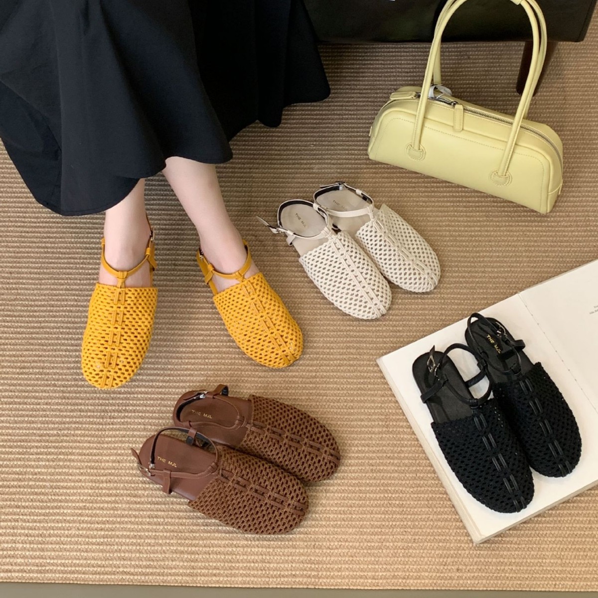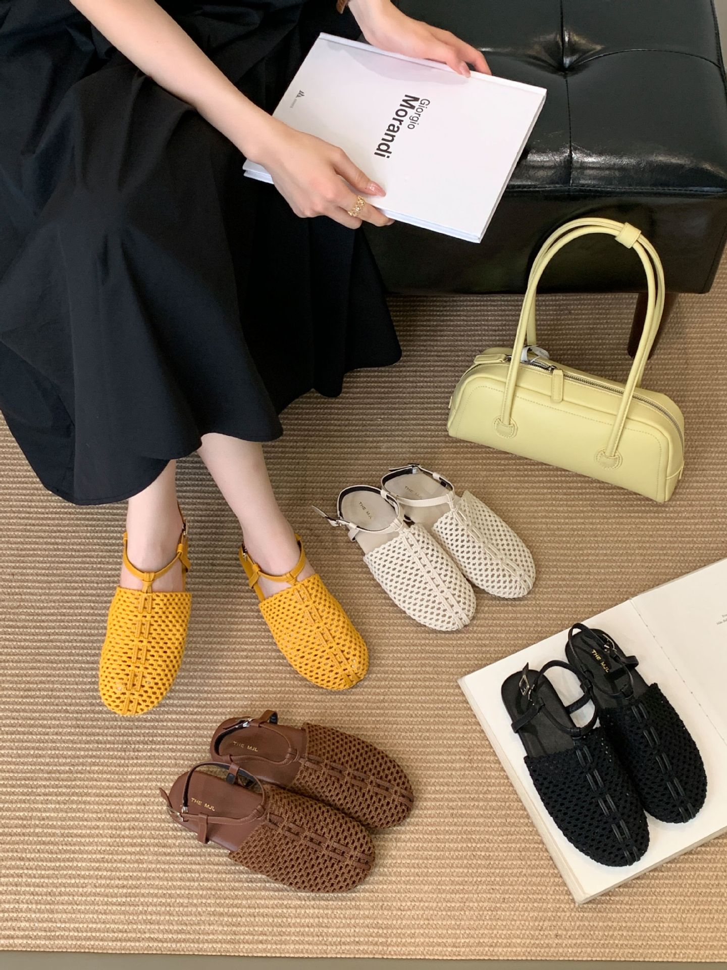 2025 여름 바오터우 플랫 프렌치 여성 아우터 중공 직조 플랫 샌들 통기성과 다재다능한 기질 샌들스토어 가기