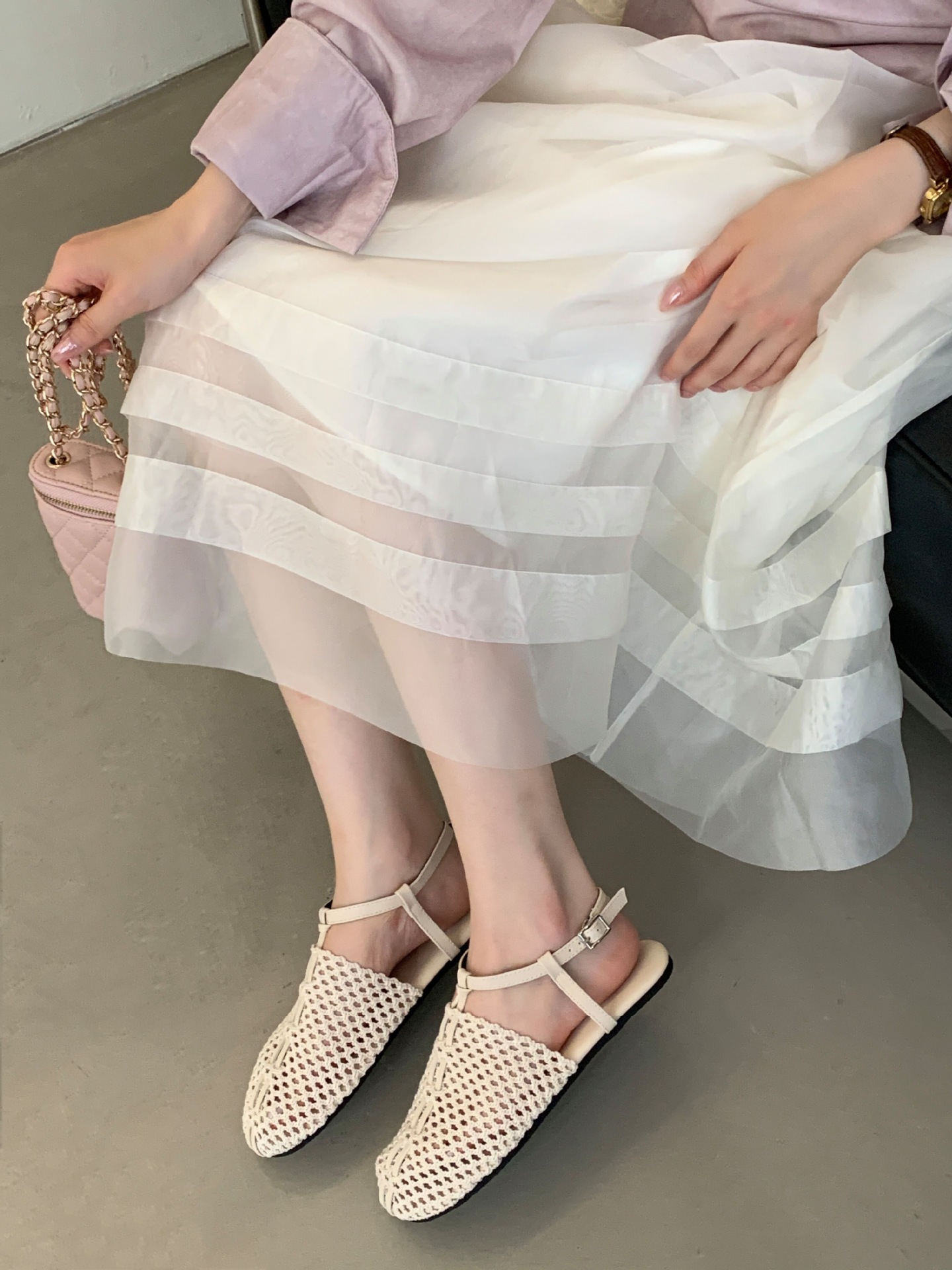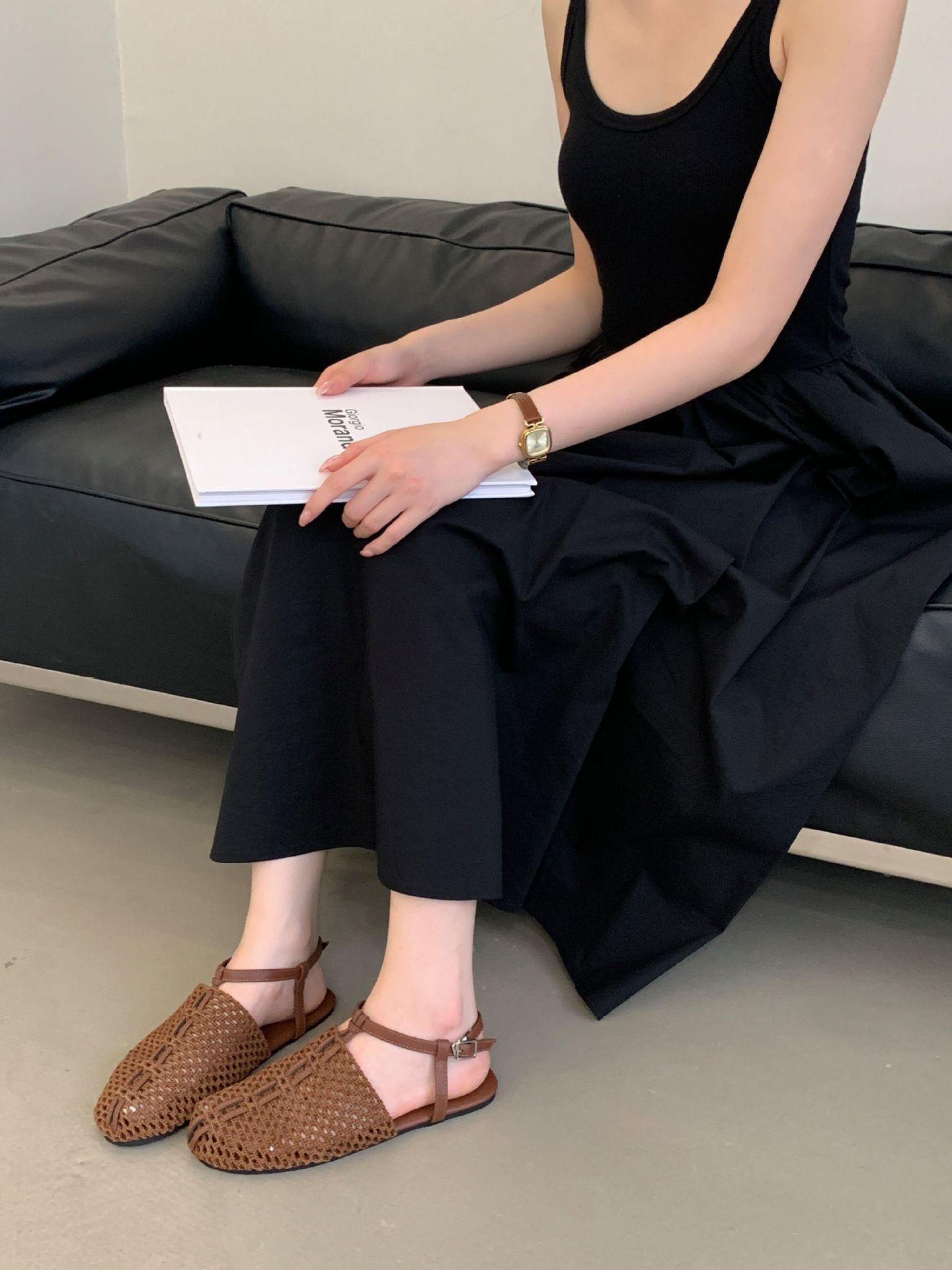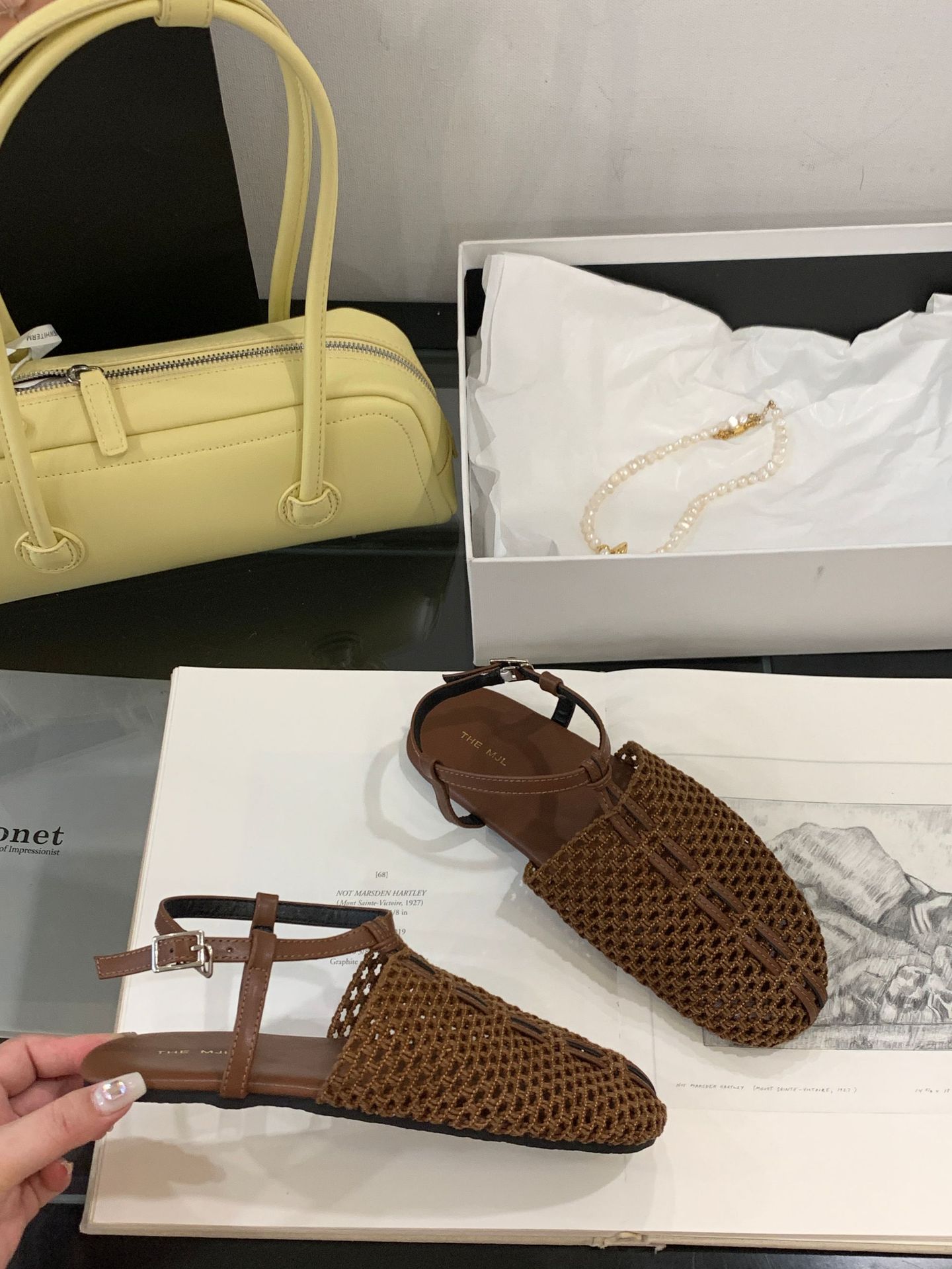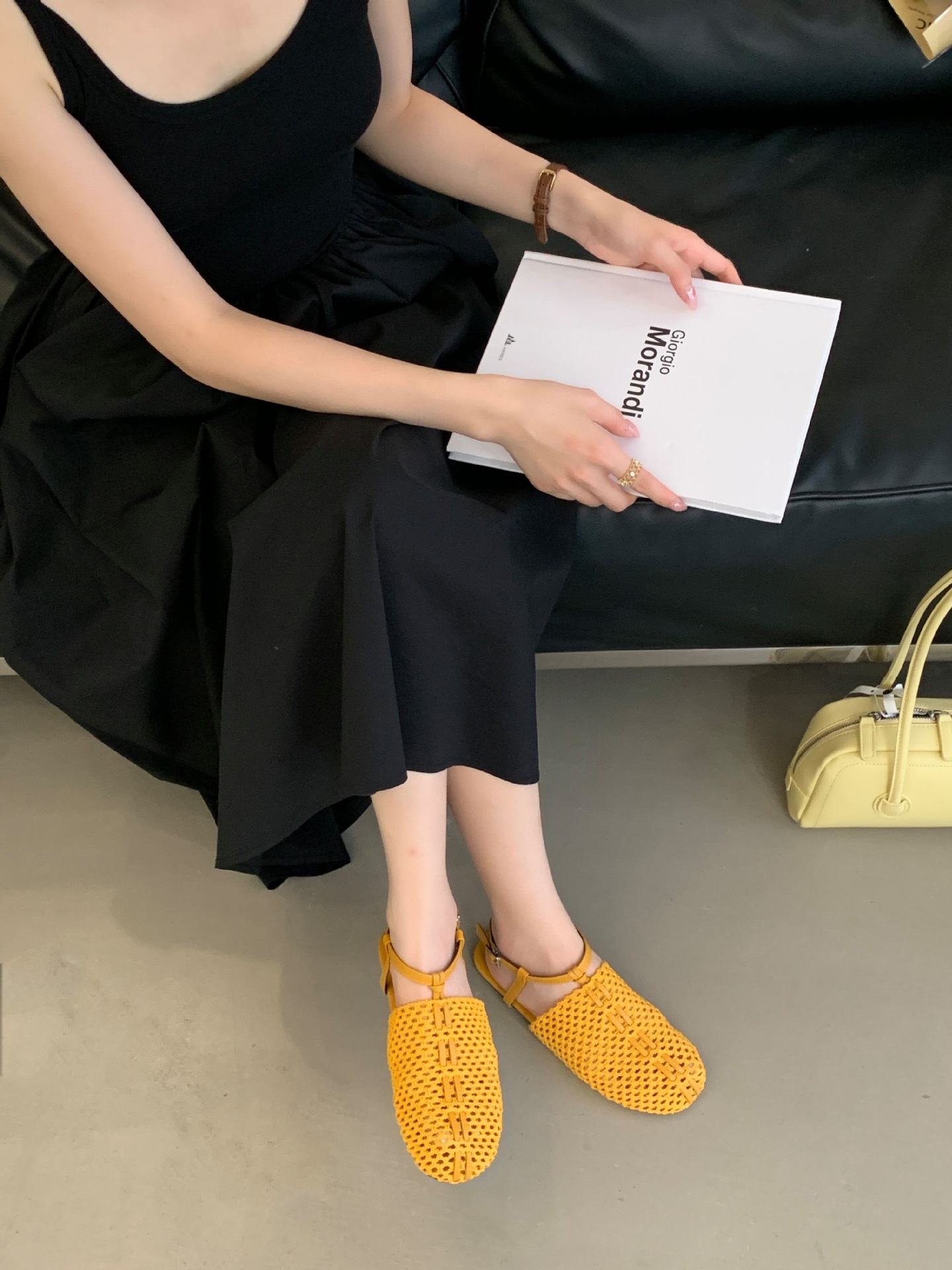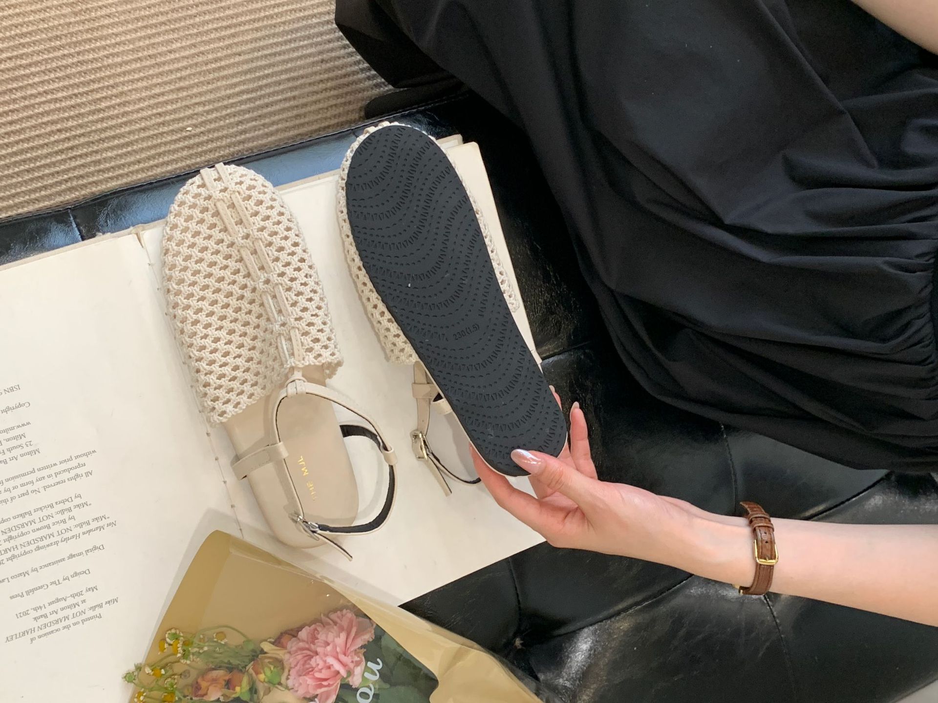 2025 여름 바오터우 플랫 프렌치 여성 아우터 중공 직조 플랫 샌들 통기성과 다재다능한 기질 샌들스토어 가기