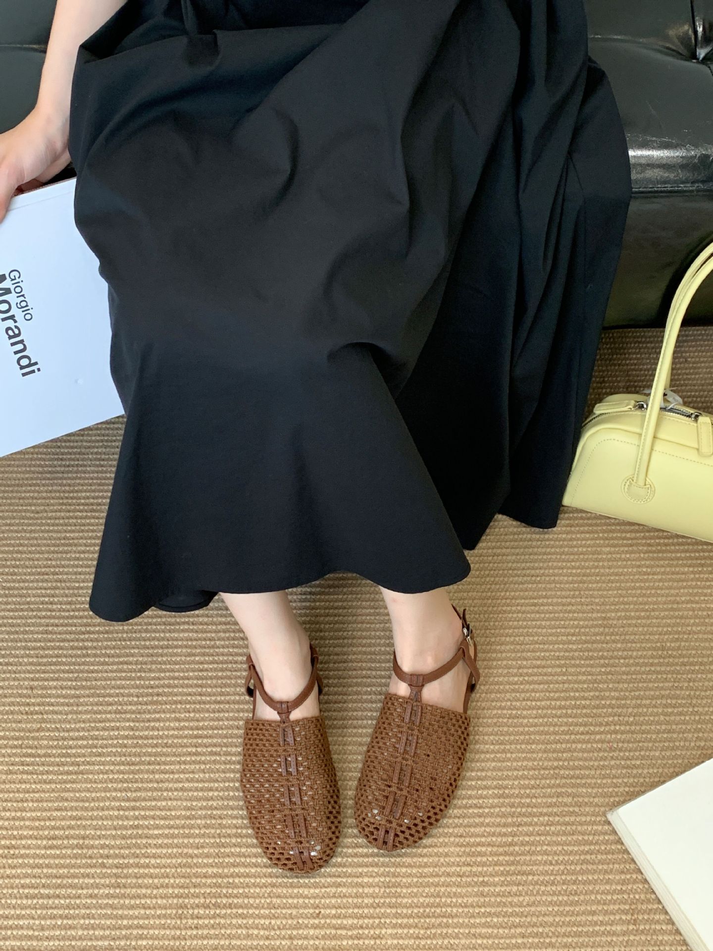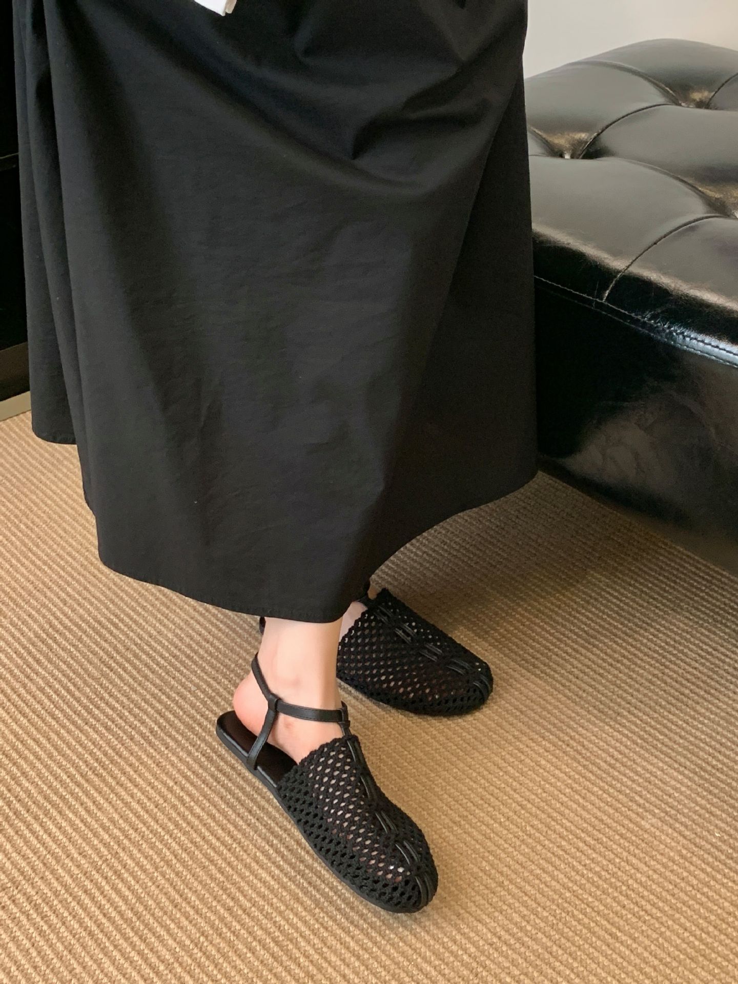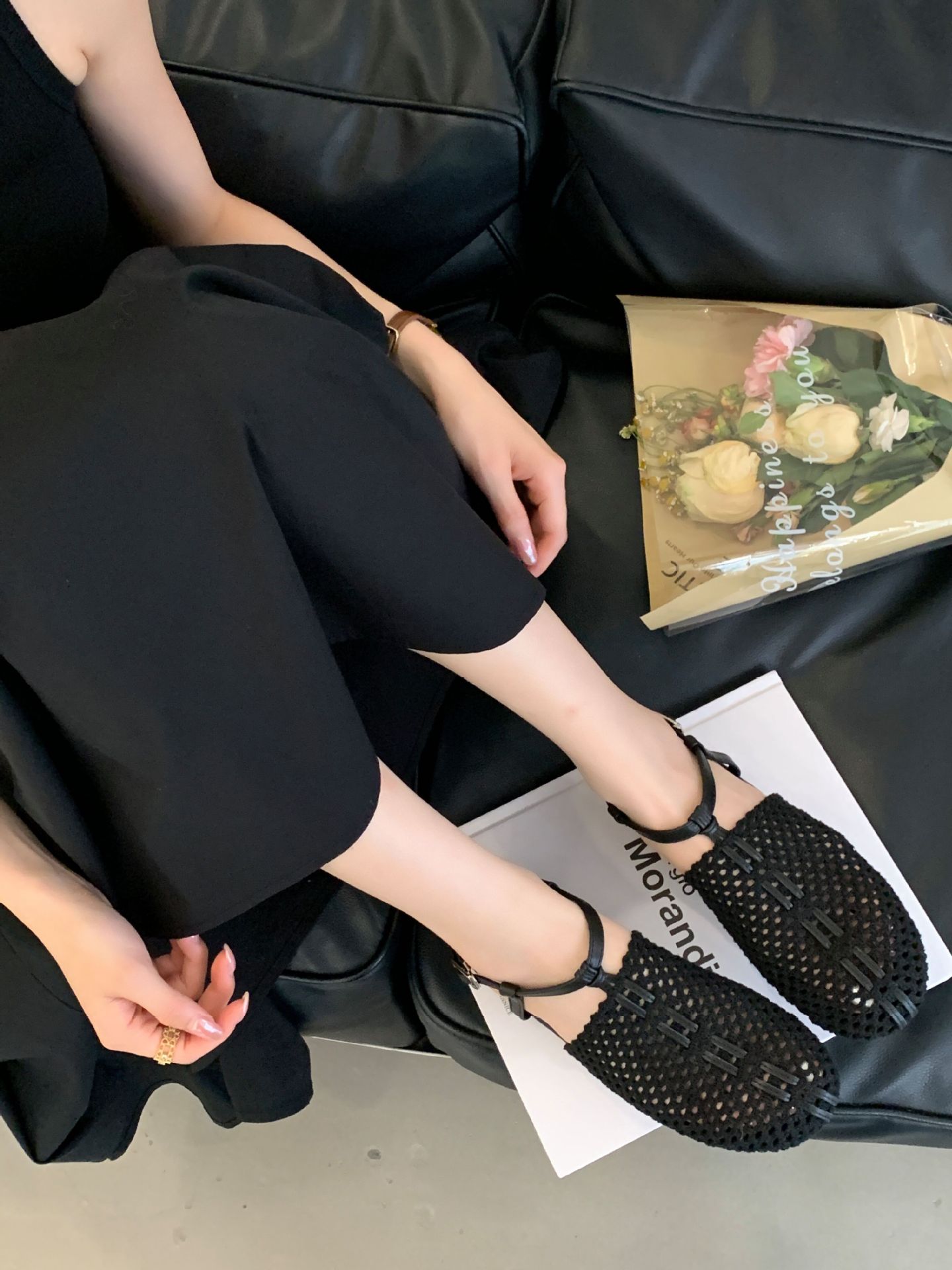 2025 여름 바오터우 플랫 프렌치 여성 아우터 중공 직조 플랫 샌들 통기성과 다재다능한 기질 샌들