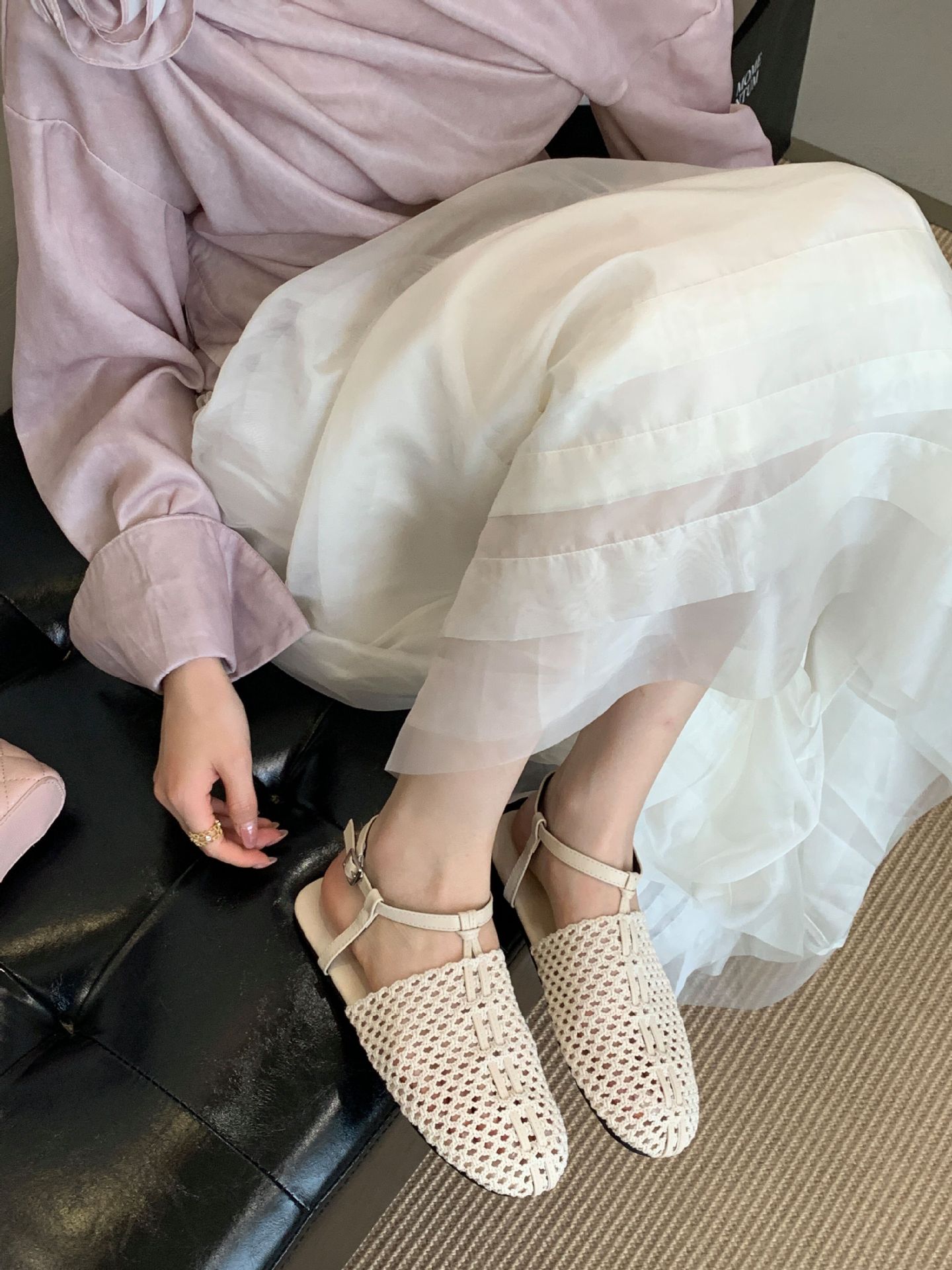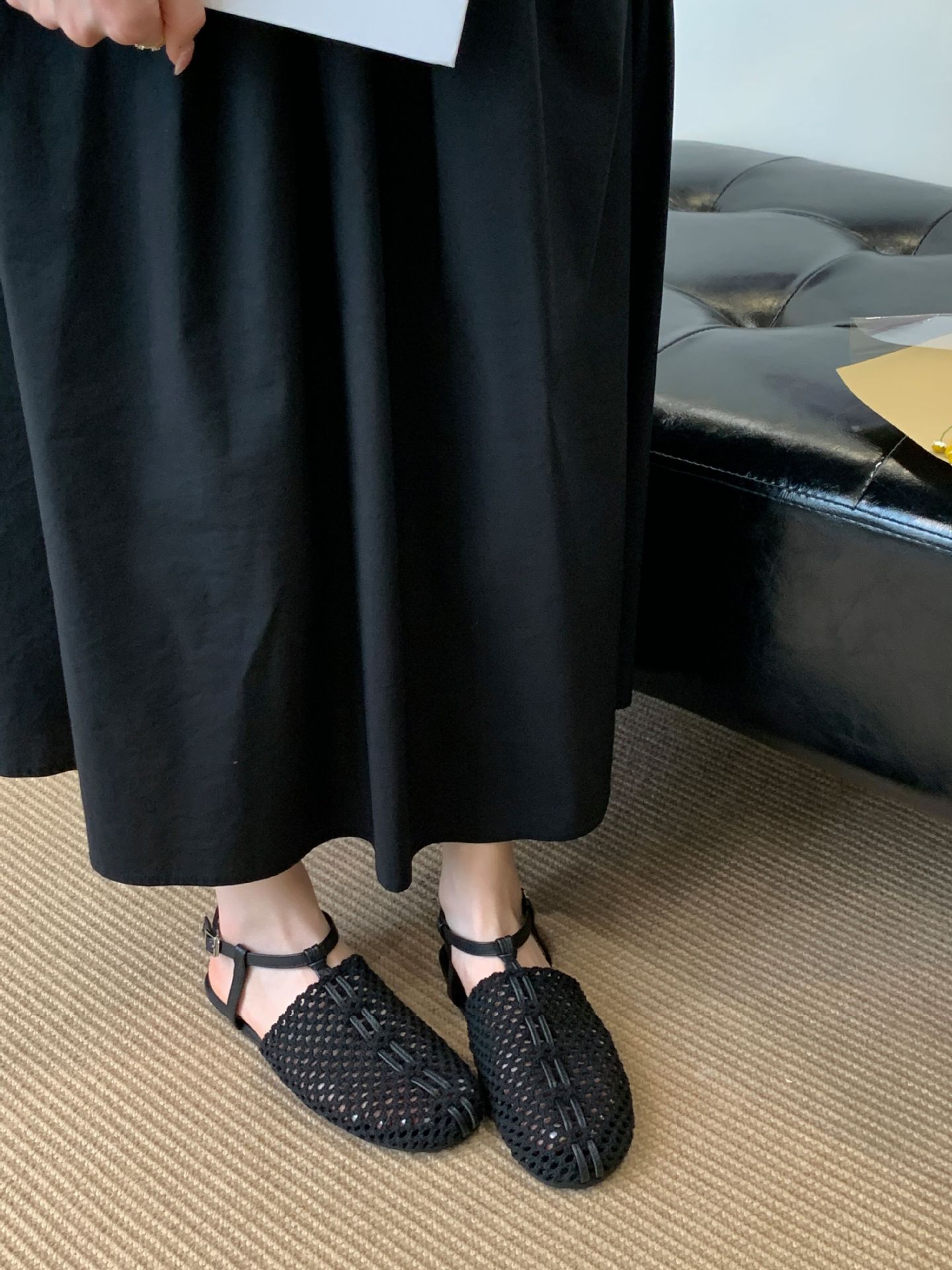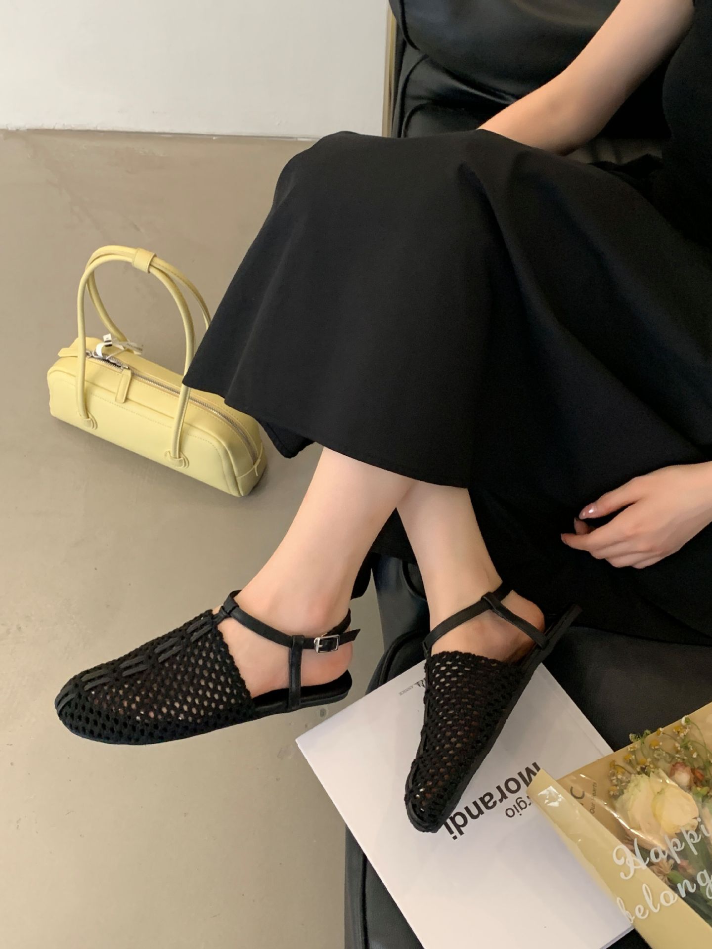 2025 여름 바오터우 플랫 프렌치 여성 아우터 중공 직조 플랫 샌들 통기성과 다재다능한 기질 샌들