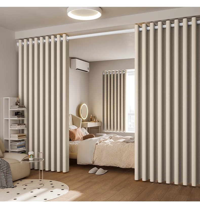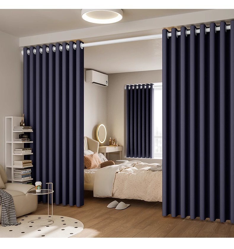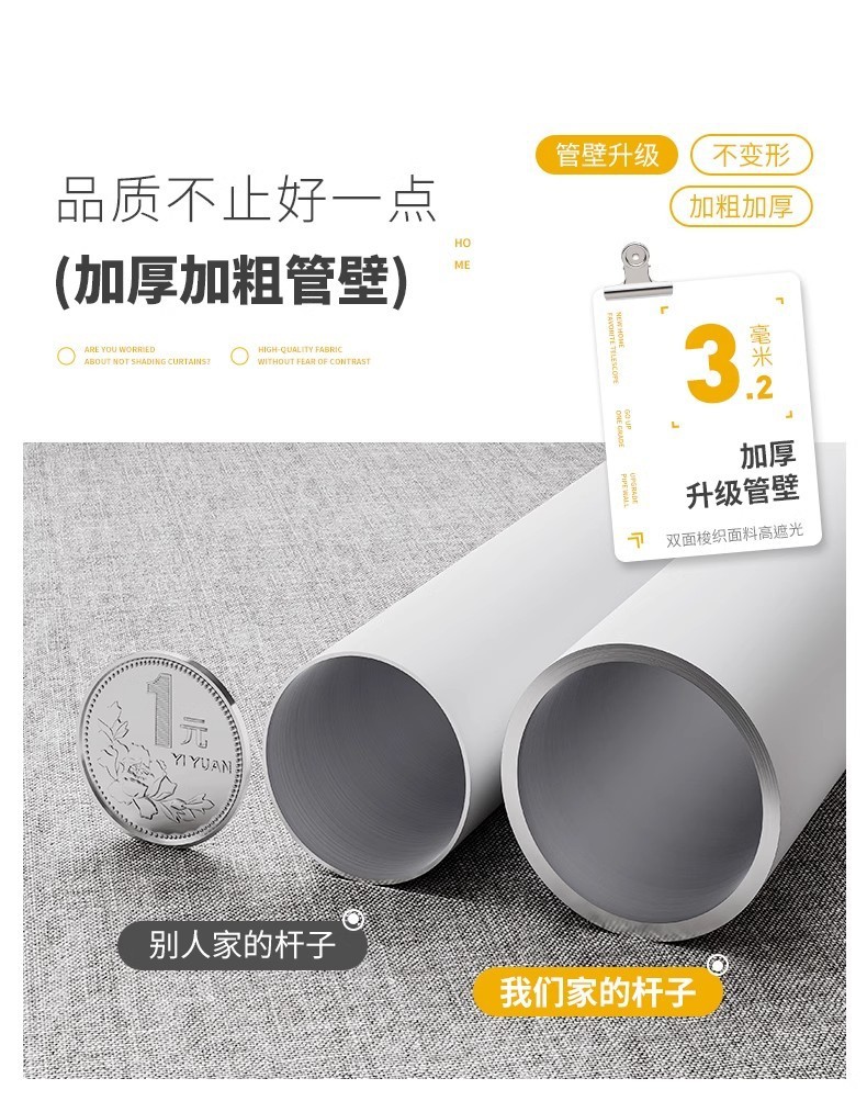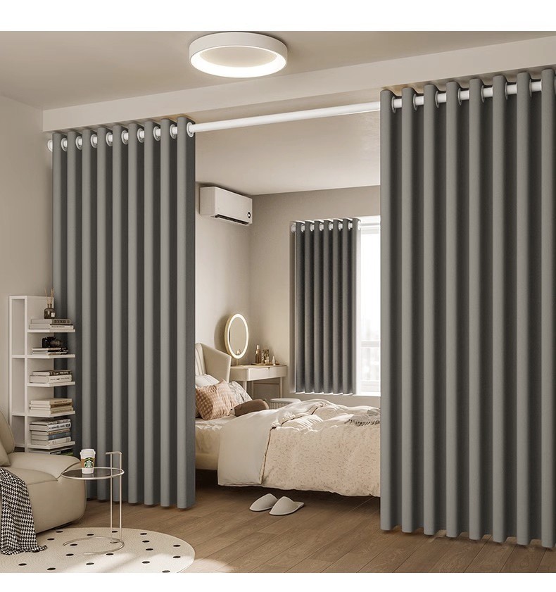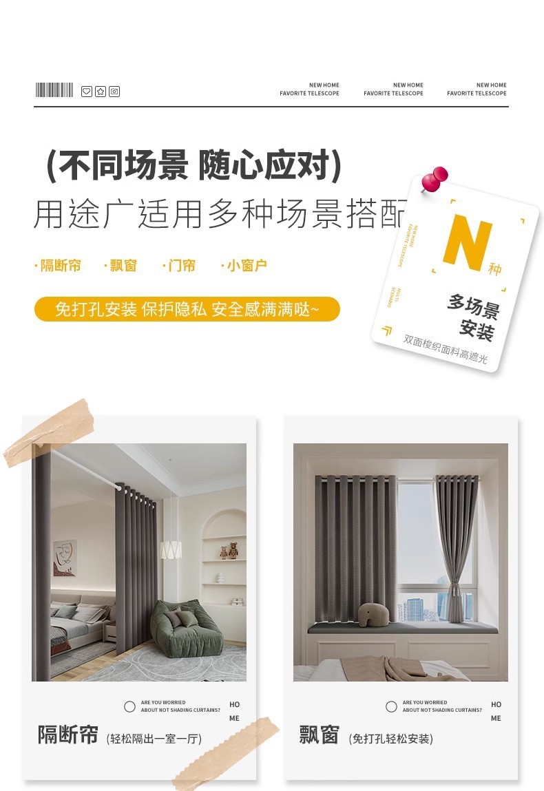 침실, 거실, 발코니용 펀치 없는 커튼, 단열 및 자외선 차단, 완전 차광, 임대 주택 칸막이 커튼, 접이식 막대 포함