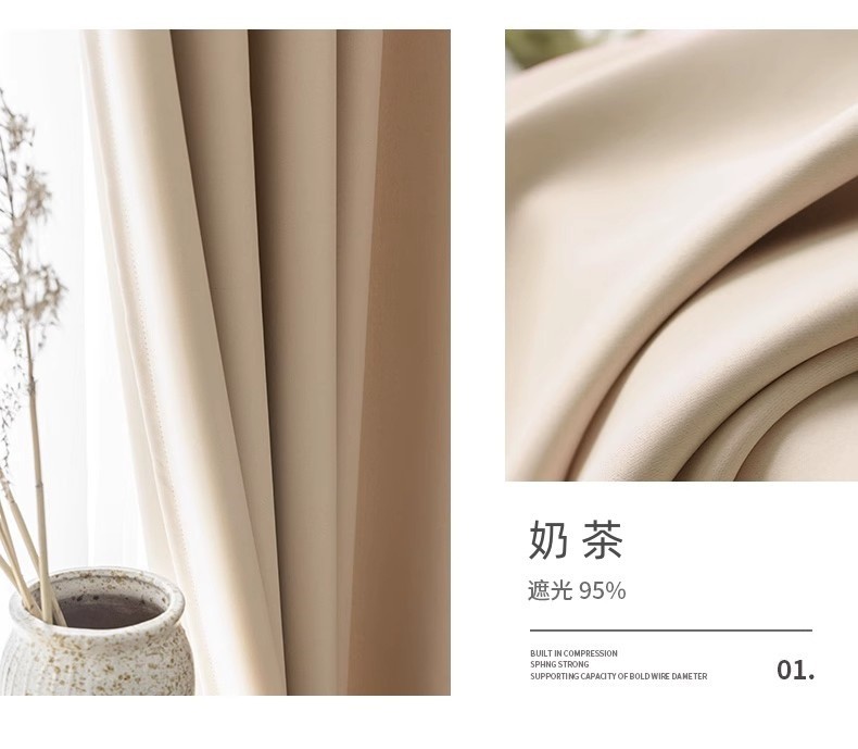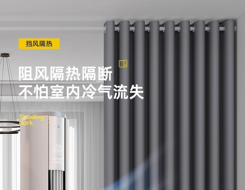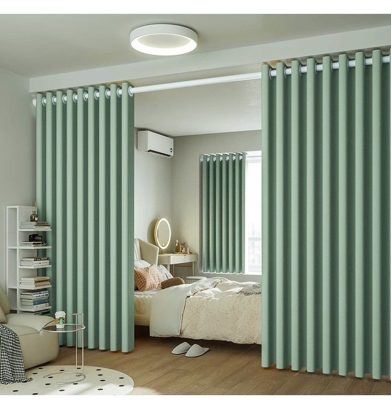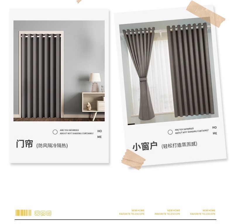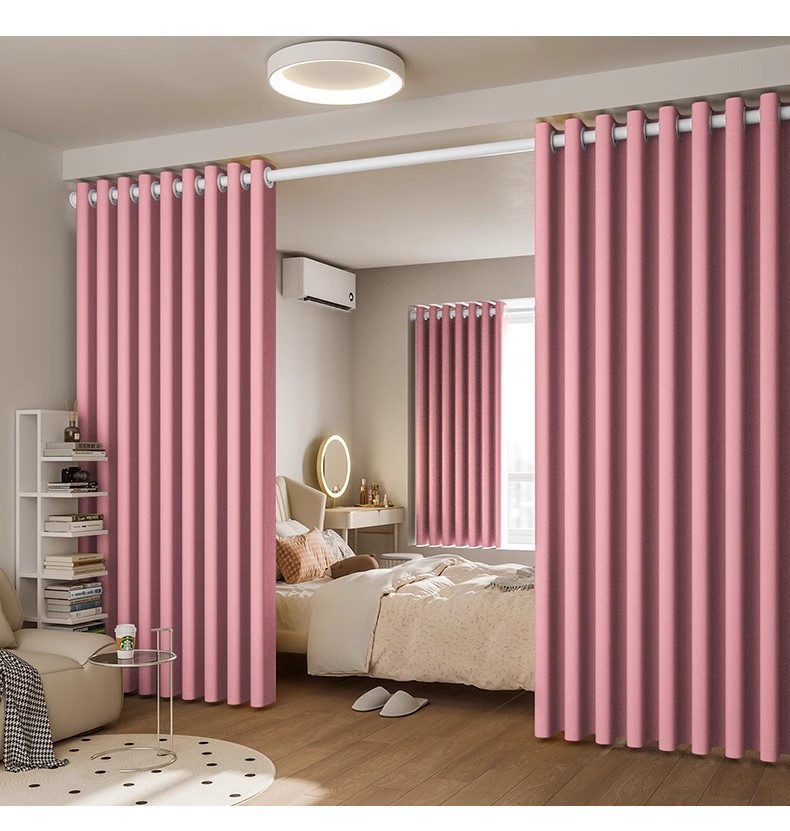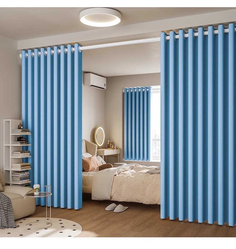 침실, 거실, 발코니용 펀치 없는 커튼, 단열 및 자외선 차단, 완전 차광, 임대 주택 칸막이 커튼, 접이식 막대 포함