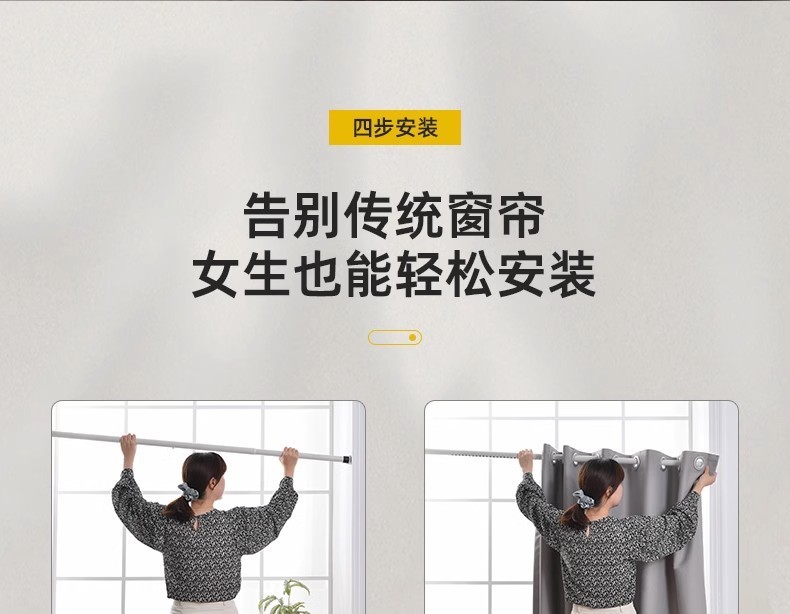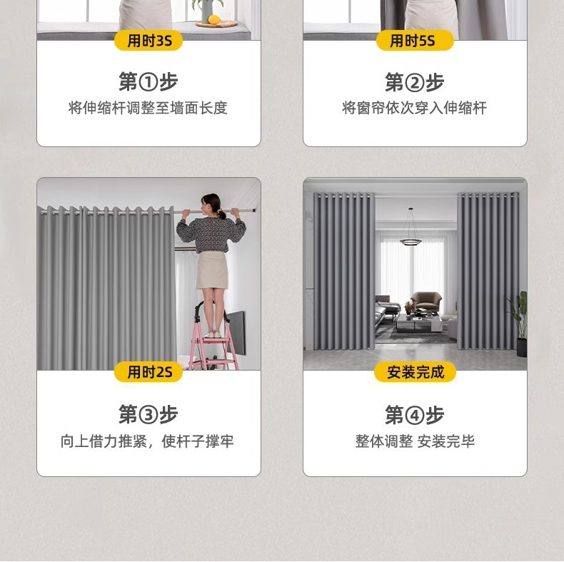침실, 거실, 발코니용 펀치 없는 커튼, 단열 및 자외선 차단, 완전 차광, 임대 주택 칸막이 커튼, 접이식 막대 포함스토어 가기