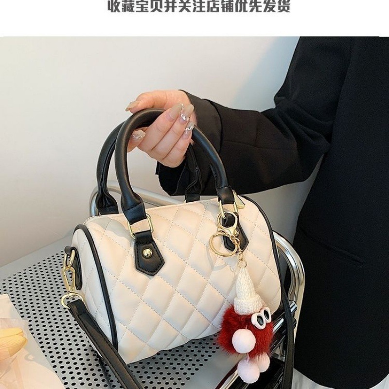 하이 엔드 휴대용 여성용 가방 여름 2024 새로운 패션 마름모 보스턴 베개 가방 통근 가방 크로스 바디 백스토어 가기